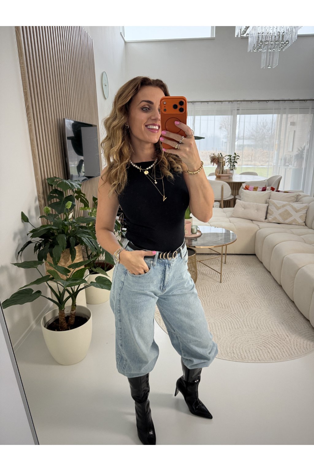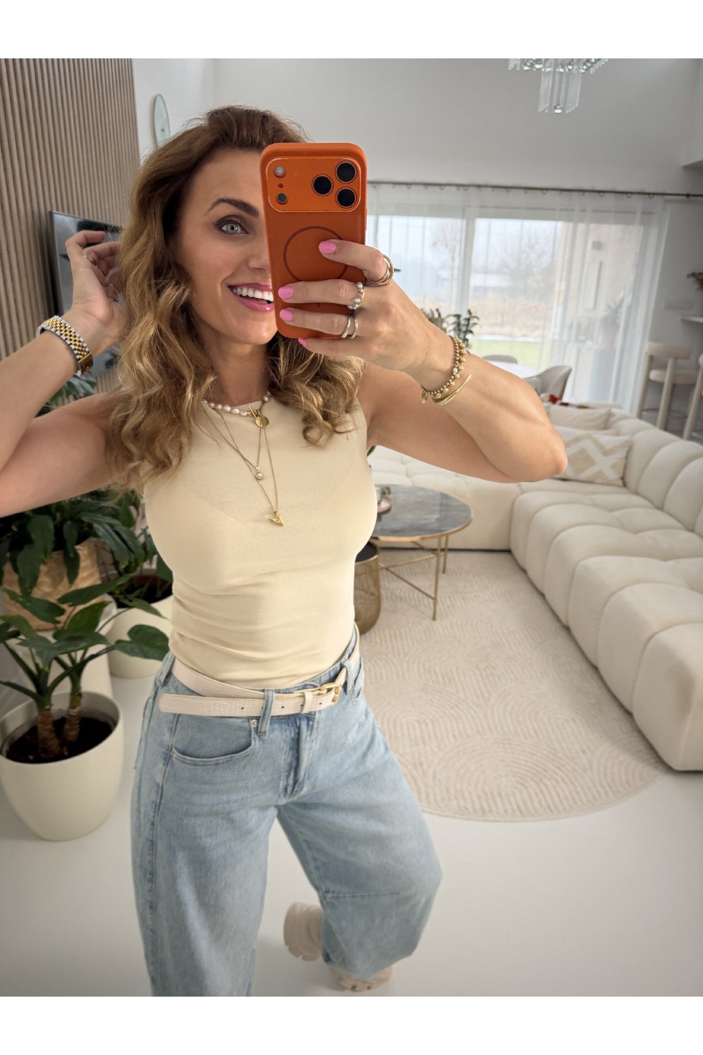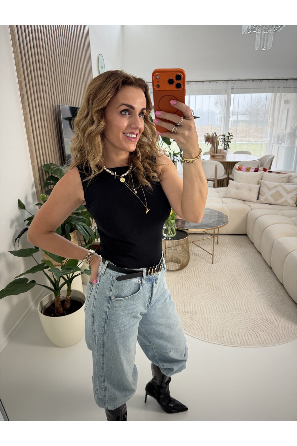 Skvěle se kombinuje s džínami s vysokým pasem, kraťasy, sukní nebo pod sako či košili. Ideální basic kousek do šatníku na každoden.