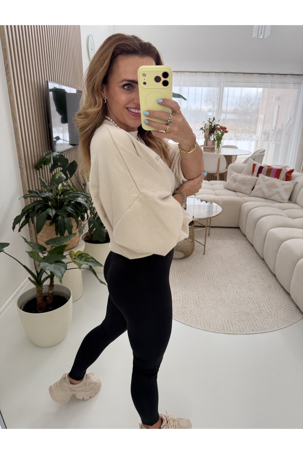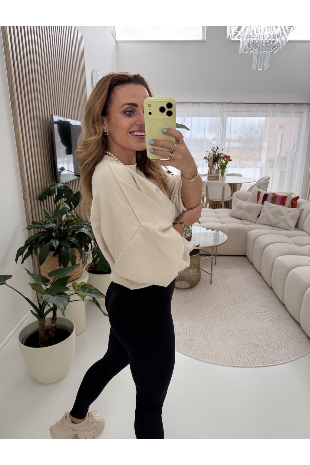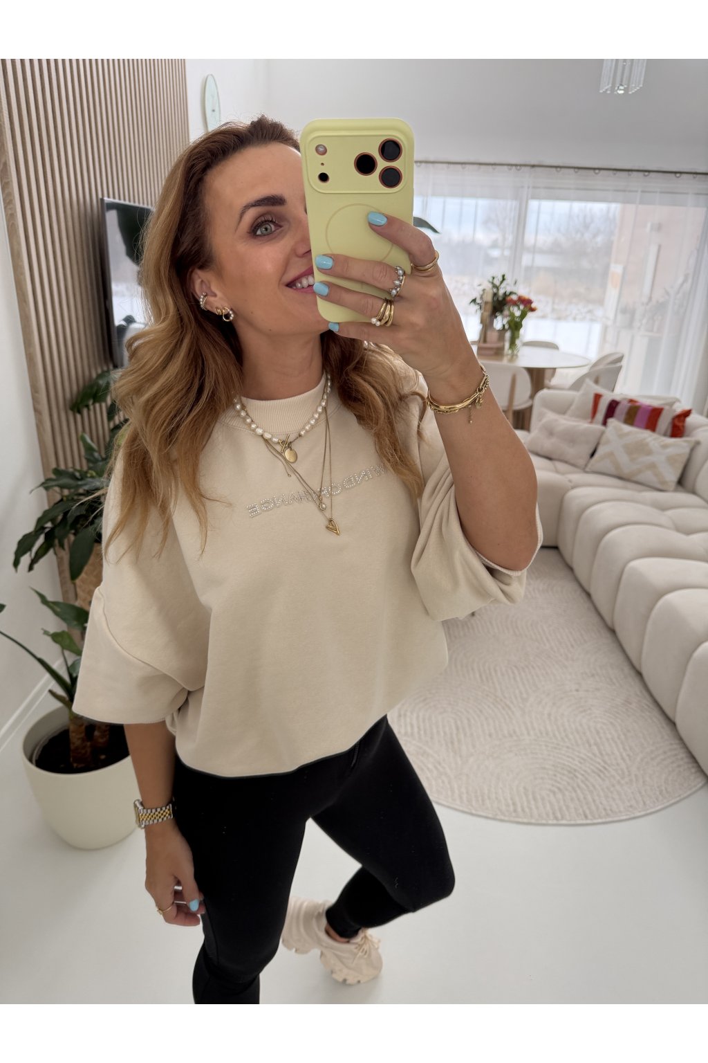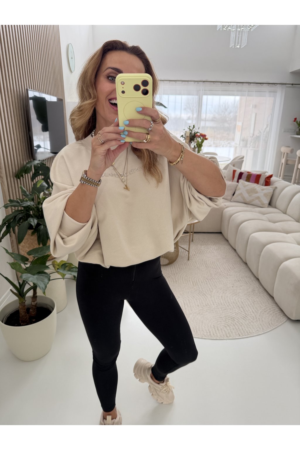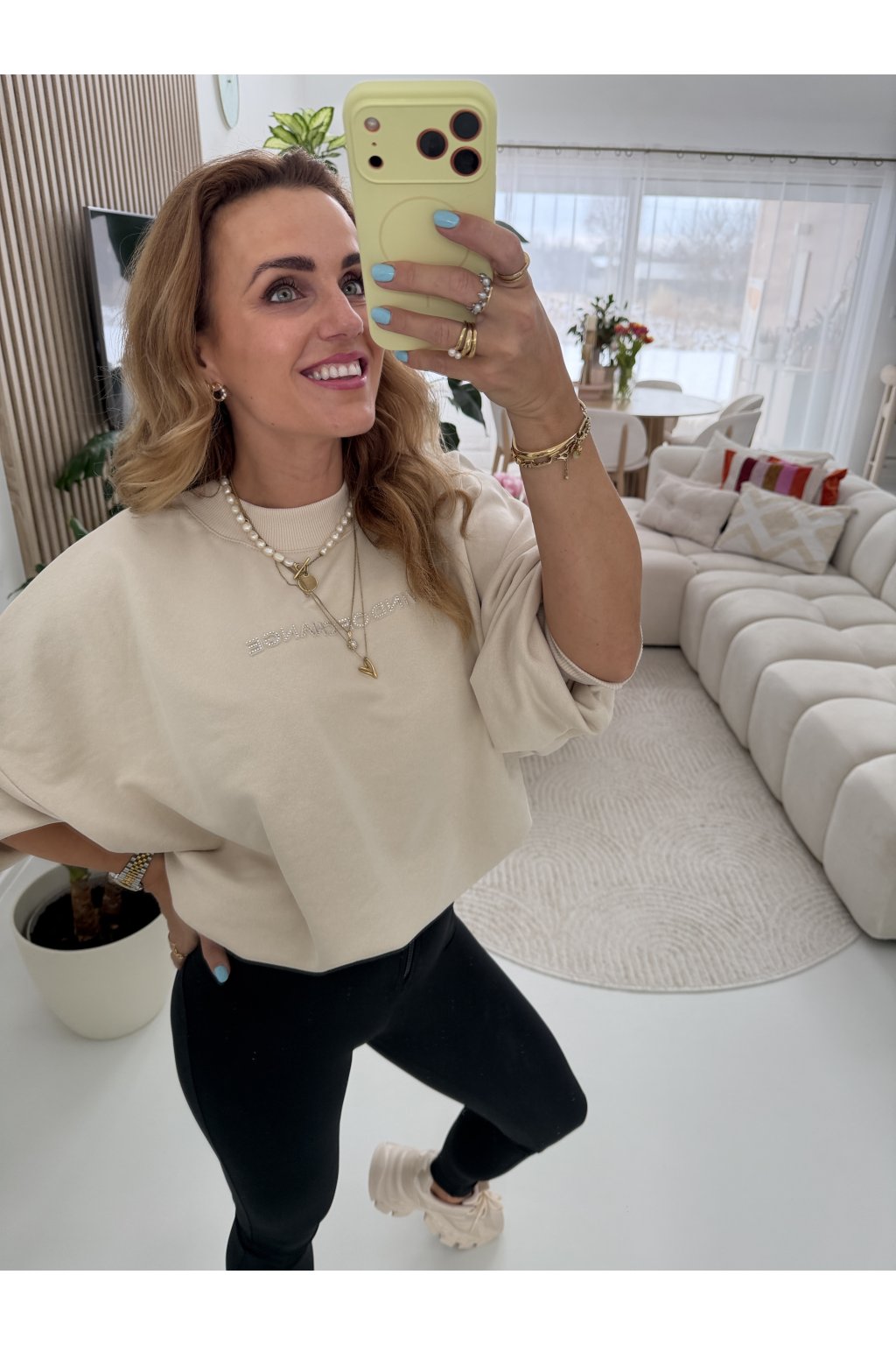 Béžová teplákovka WIND OF CHANGE. Tahle oversize mikina je kousek, který si zamilujete. Po bocích ji můžete utáhnout , nechat volnější pro ležérní look nebo stáhnout pro více ženskou siluetu.