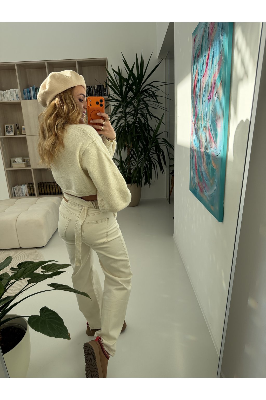 Rifle s překříženým pasem KATE. Jsou z prémiové džínoviny. Střih je širší a rovný. Džínovina je béžová, krásně doladíš s čokoládovou a vínovou.. Budou i v tmavší džínovině. Jedná se o velmi trendy střih. Na sobě mám pro představu velikost S. Výška 163cm a váha 60kg.