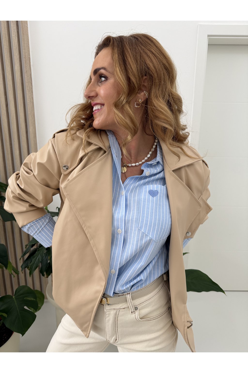 Elegantní kabátek SAHARA SOFT COAT v nádherném béžovém odstínu, který snadno sladíte s každým outfitem. Vyroben z měkké, příjemné kůže, která je pohodlná na nošení a krásně splývá. Moderní oversize střih dodává modelu ležérní šmrnc a zároveň působí velmi stylově. Skvělý kousek pro nadčasový a sofistikovaný look. Sedne od velikosti S až do velikosti L.