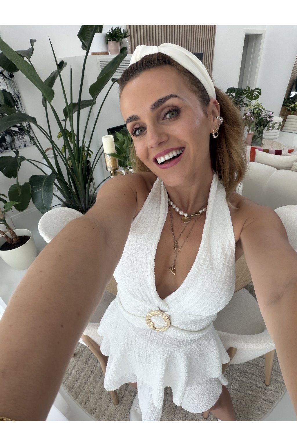 Šaty se zavazují za krkem, což podtrhne ramena i záda a vytváří velmi ženský, letní look. Lehce volánová sukně dodává pohyb a hravost při každém kroku.