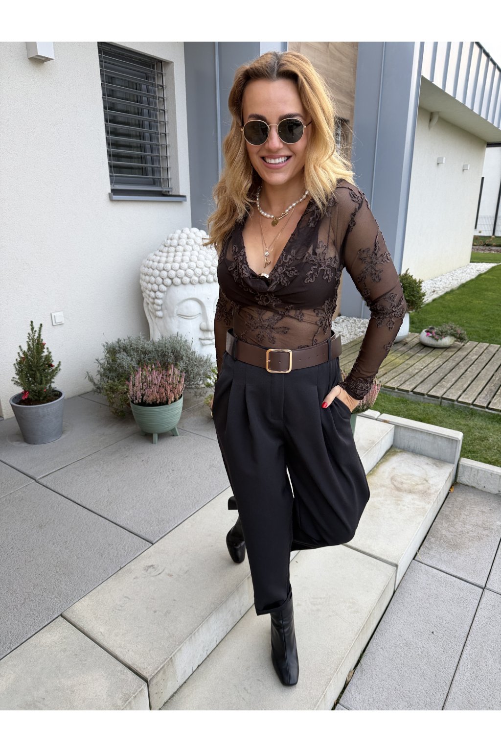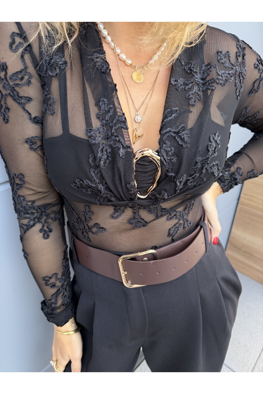 Elegantní krajkové body FLIRT s výrazně vystuženými košíčky, které krásně tvarují dekolt a dodají outfitu ženský, smyslný vzhled. Body má posuvná ramínka, takže si ho snadno přizpůsobíš své postavě. Díky promyšlenému střihu je dostatečně dlouhé i pro vysoké postavy – nevyhrnuje se a pohodlně sedí po celý den. Na rukávech je jemná krajka, která nepruží, proto body nejlépe sedne na velikost S (nebo štíhlejší S/M v ramenou a pažích). Skvěle se hodí jak k elegantním kalhotám, tak k sukním nebo džínám, a vytváří nepřehlédnutelný, chic look.