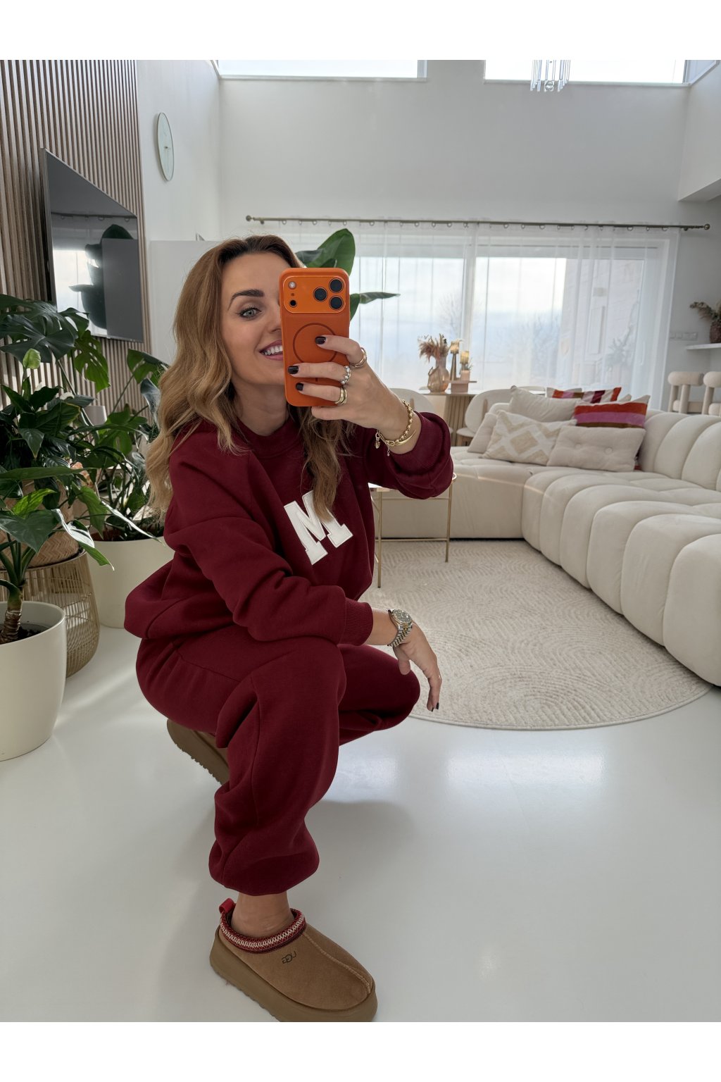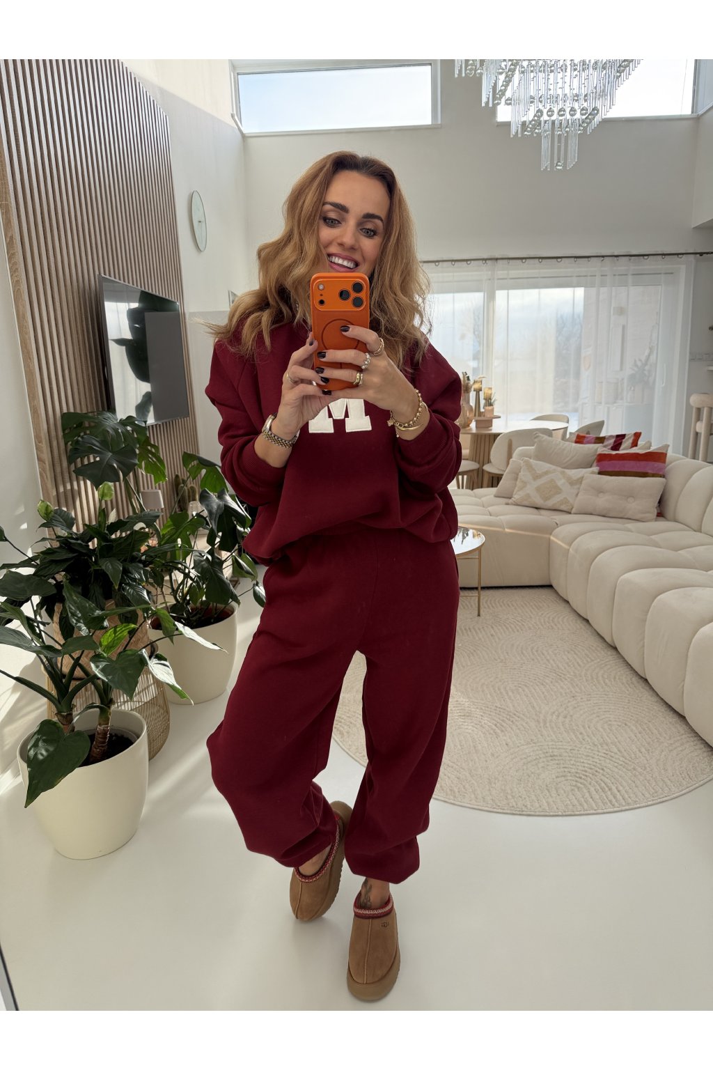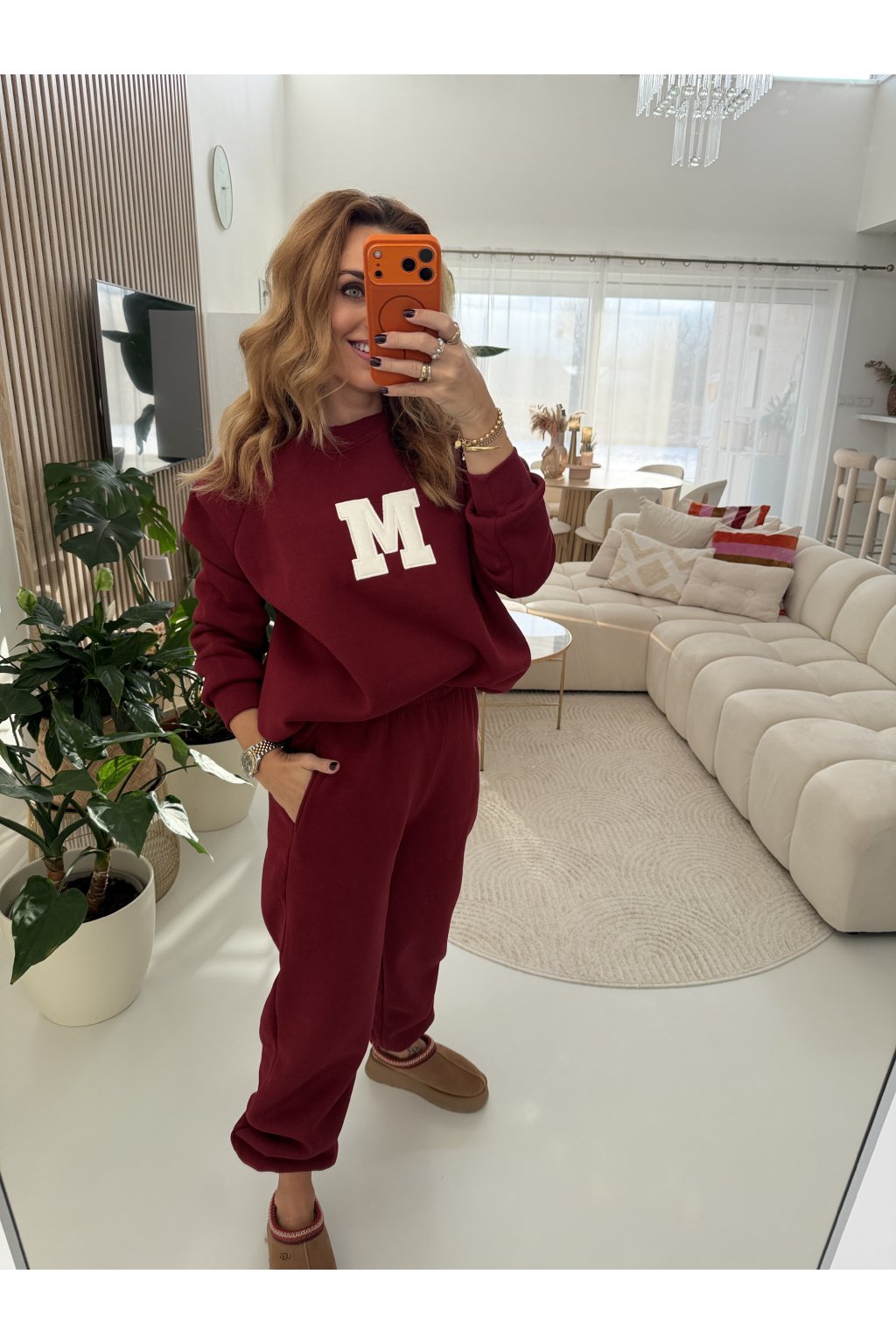 Teplákovka je zateplená jemným mikroplyšem, díky kterému je krásně hřejivá a maximálně pohodlná. Tepláky mají gumu v pase i kolem kotníků, takže se snadno přizpůsobí postavě a délku lze upravit. Na přední straně je výrazné písmeno M jako máma. Ideální na každodenní nošení, doma i venku. Samozřejmě se dá minima i tepláky nosit samostatně. Díky střihu sedne od velikosti S až do menší velikosti L. Pro představu měřím 163cm a vážím 59kg.
