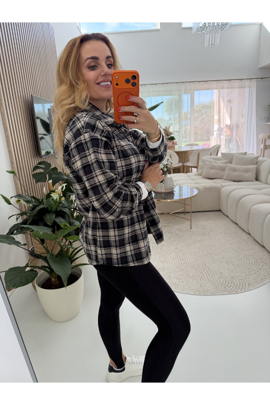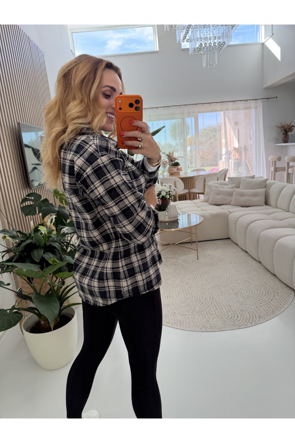 Má měkký, příjemný materiál, který se skvěle nosí, a volnější střih pro pohodlí i styl. Můžeš ji nosit zapnutou jako klasickou košili nebo rozepnutou přes top či rolák jako lehkou bundu.