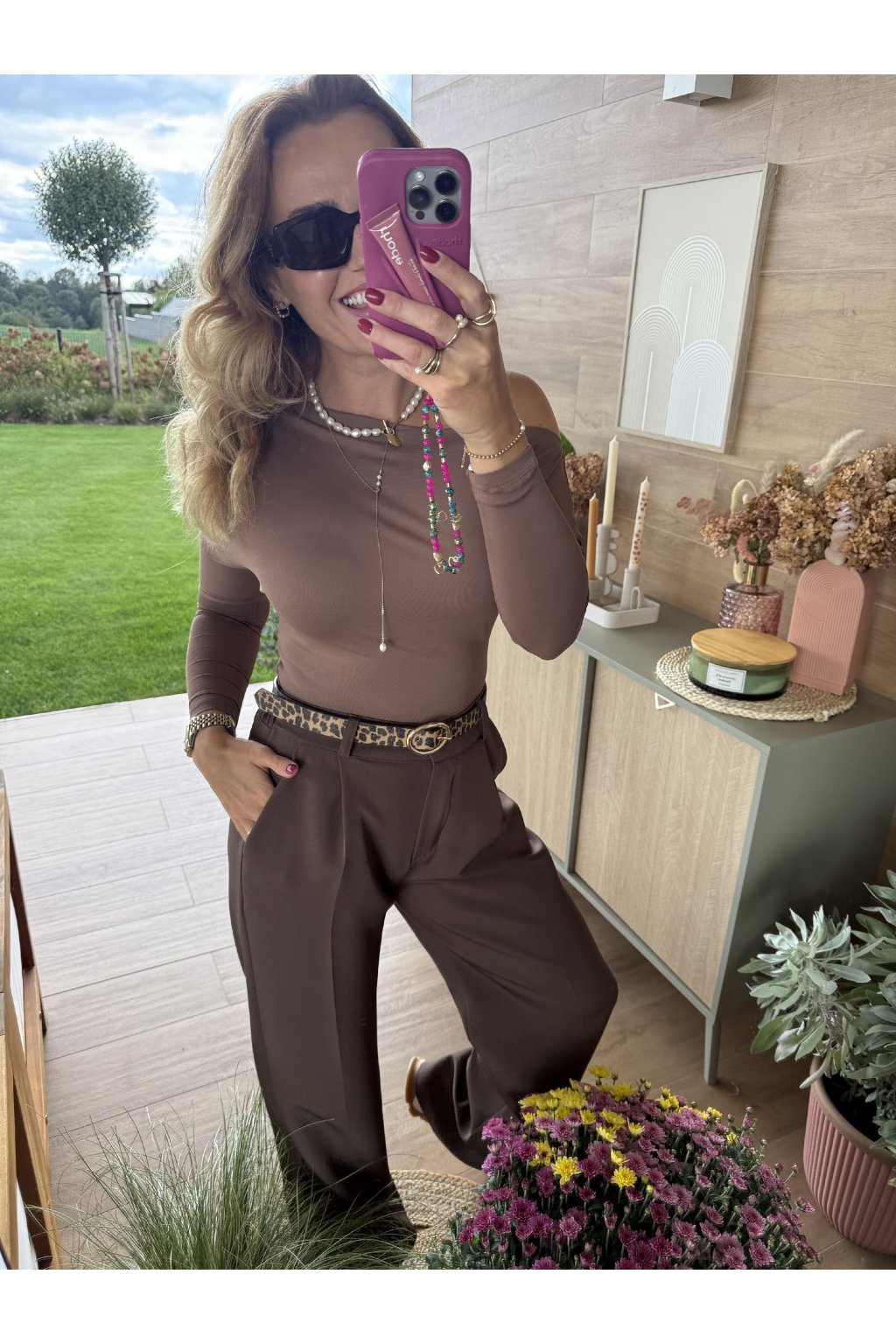 Jednoduché, ale maximálně ženské. Elastické tričko v čokoládovém odstínu se přizpůsobí vaší postavě a můžete ho nosit klasicky nebo svůdně na jedno rameno. Skvěle se kombinuje s džínami, sukní i elegantními kalhotami. Pro představu měřím 163cm a vážím 60kg a na sobě mám velikost S.