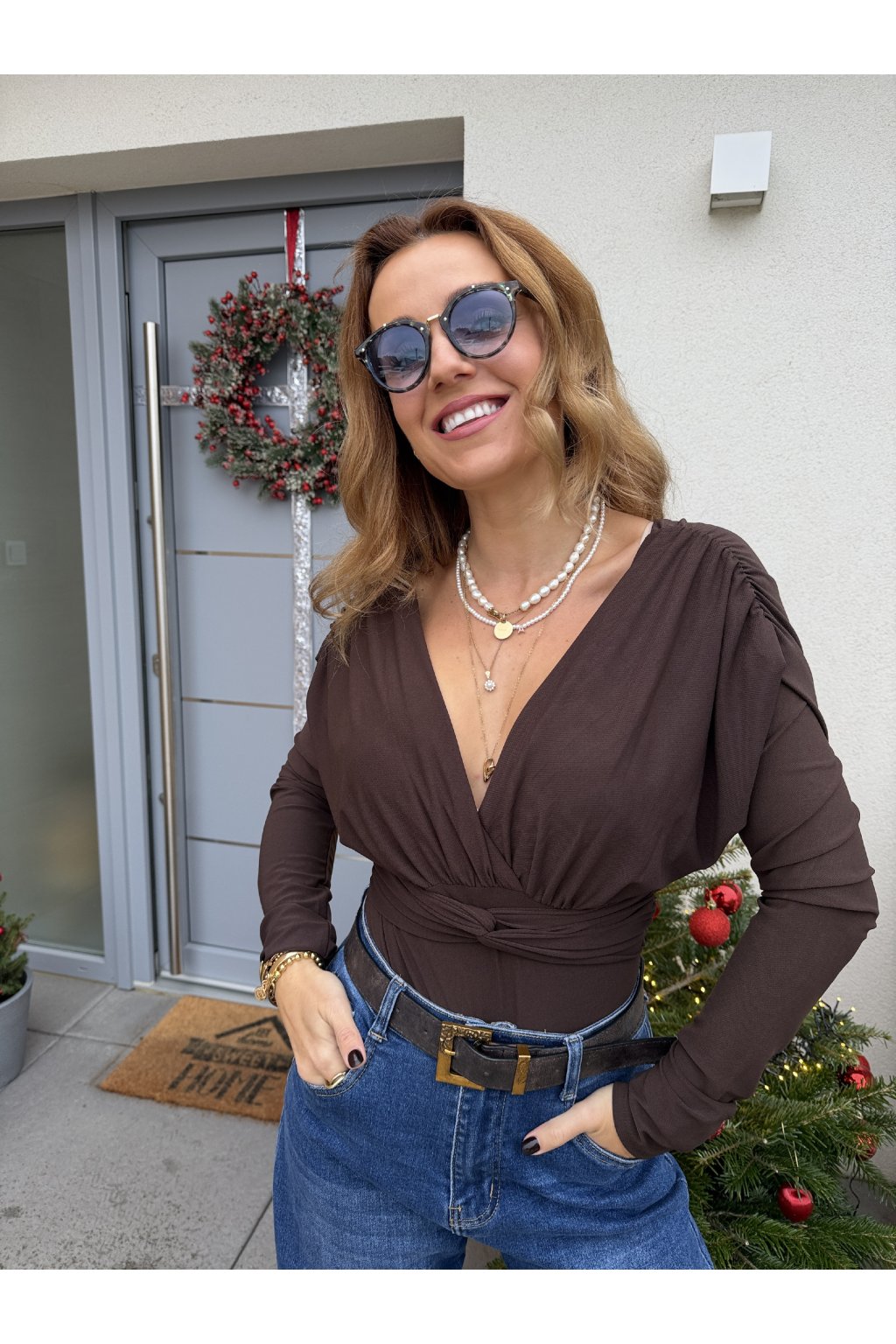 Elegantní body s výstřihem do V na přední i zadní straně, které krásně zvýrazní siluetu. Hrubší, ale pružný materiál skvěle drží tvar, je příjemné na nošení a zároveň lichotí postavě. Ideální k džínům, sukni i elegantním kalhotám.