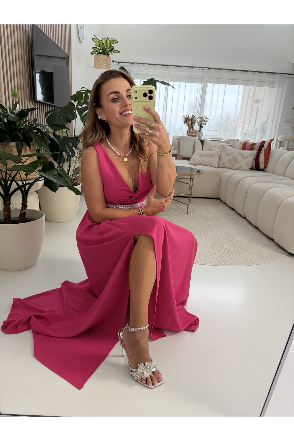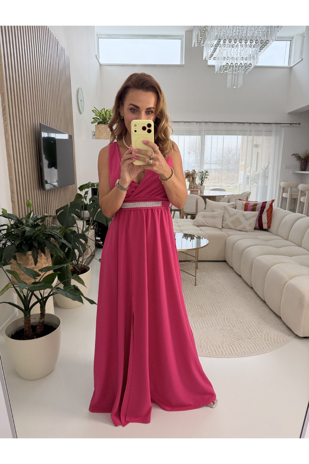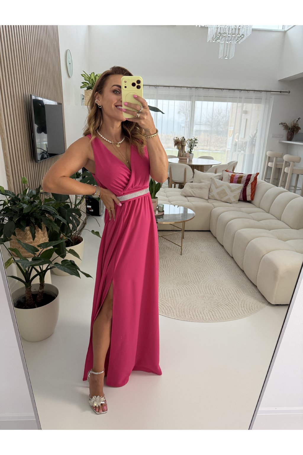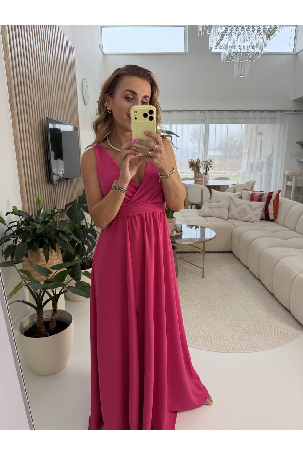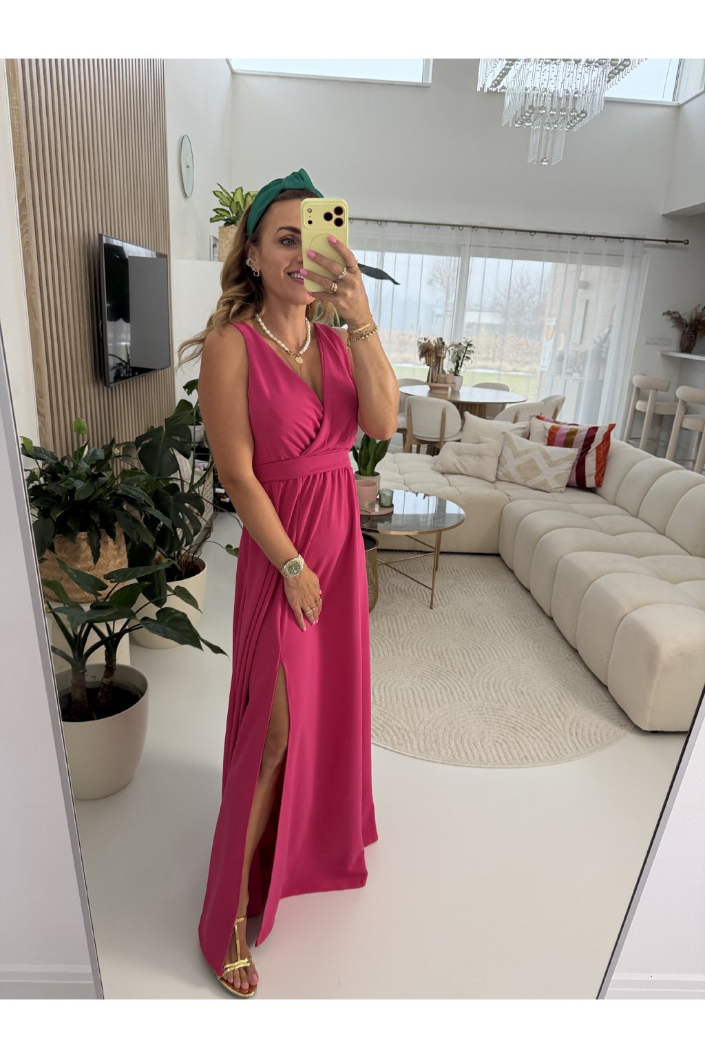 DLOUHÉ ŠATY S ROZPARKEM FUCHSIA ELEGANCE