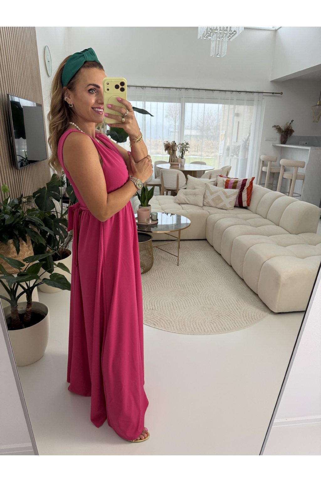 Šaty FUCHSIA ELEGANCE jsou dlouhé šaty se širokými ramínky, vystuženými košíčky a ženským rozparkem, který dodává lehkost a šmrnc. Střih krásně zvýrazní siluetu a zároveň poskytuje pohodlí. Nejlépe sedí na velikosti S a M, pohodlně se přizpůsobí i menší velikosti L.
