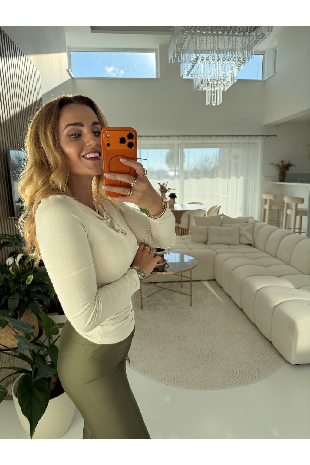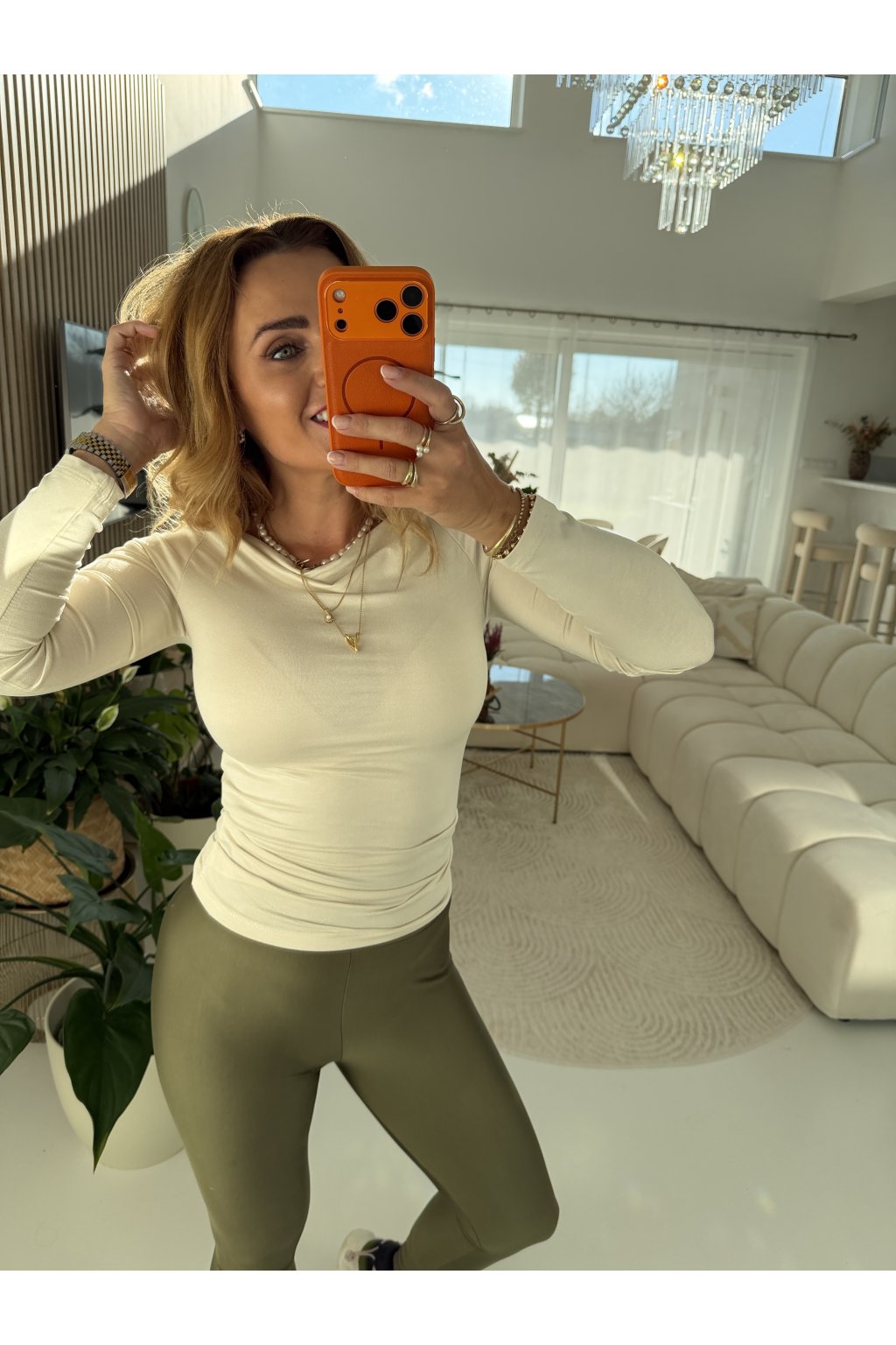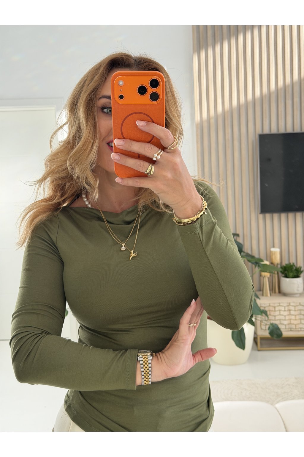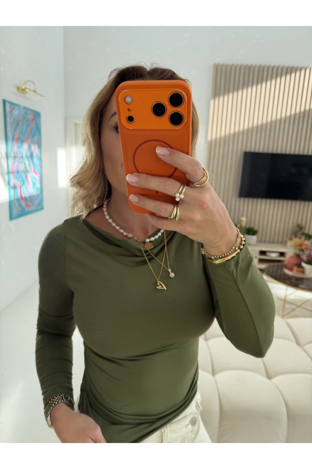 Díky řasení v oblasti bříška jemně maskuje nedokonalosti a zároveň lichotí siluetě. Skvěle se hodí k džínám, sukni i pod sako – zkrátka univerzální kousek, který unosíš celý rok.