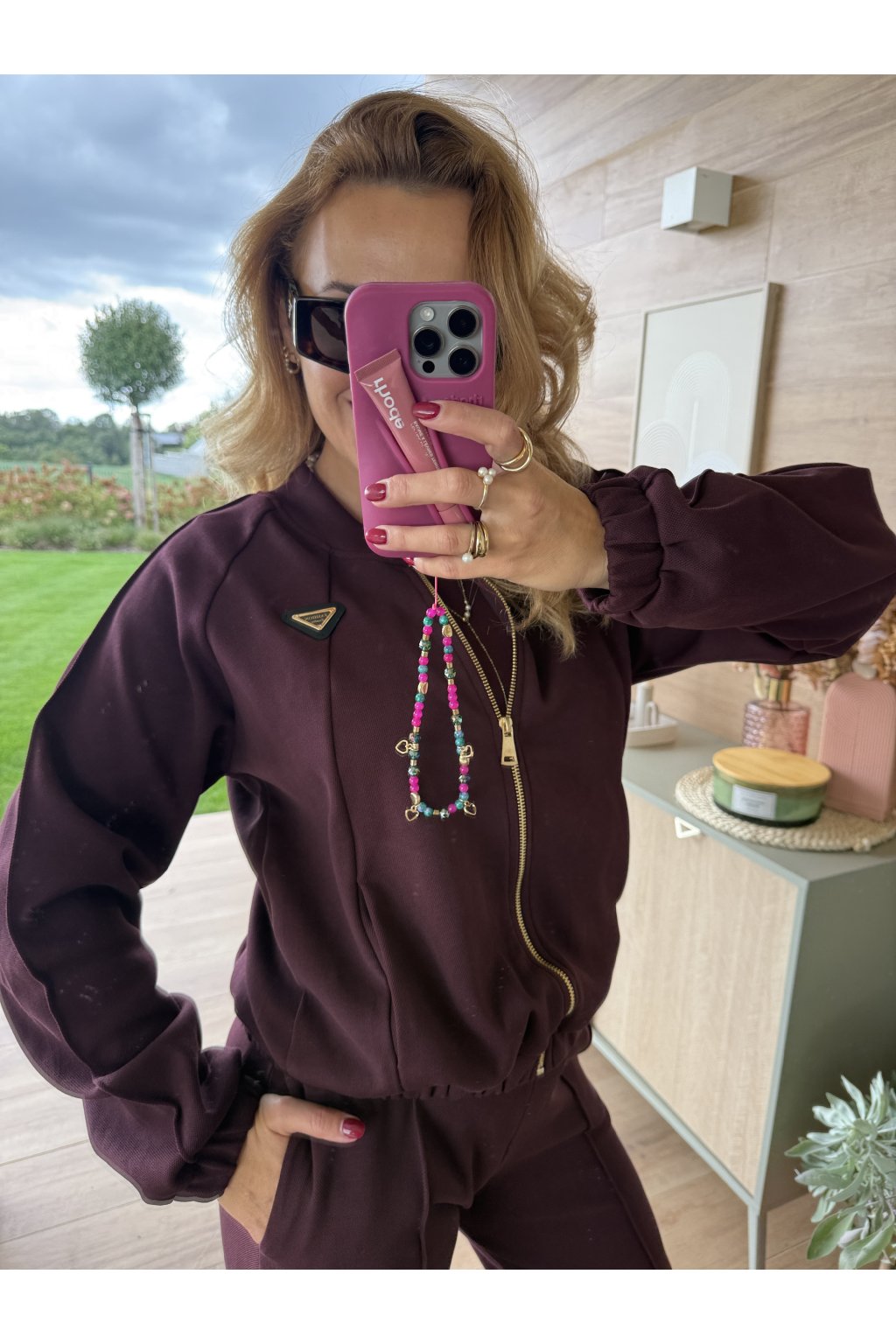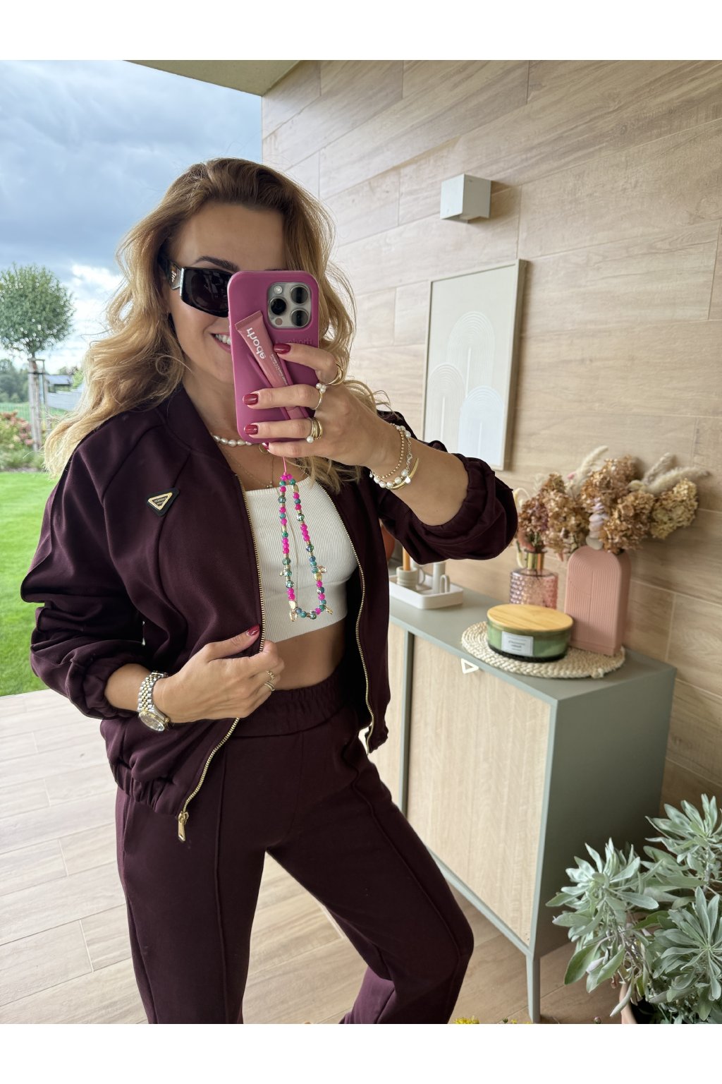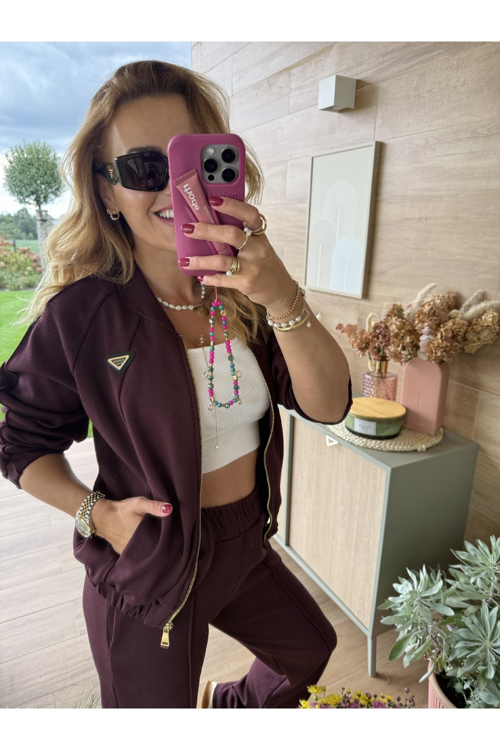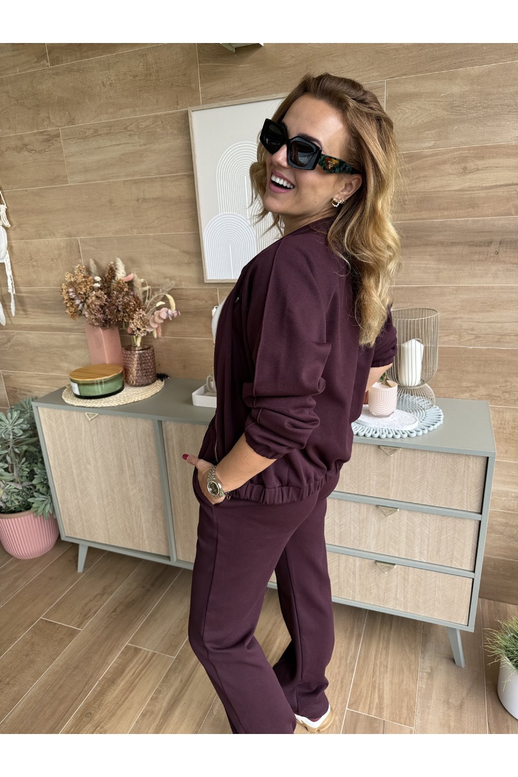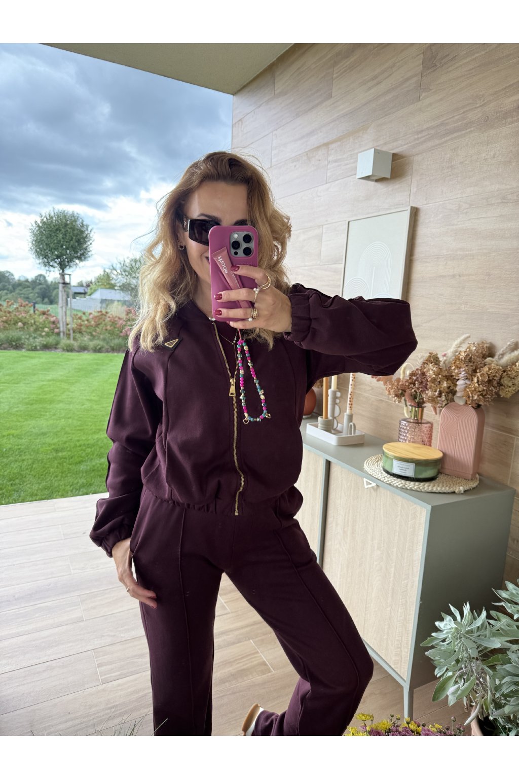 Stylová tepláková souprava v krásném Burundi odstínu, která spojuje pohodlí a eleganci. Mikina na zip s elastickým pasem a zlato černou plackou s nápisem Quality má puky na rukávech a kalhoty s rovnými nohavicemi, mají na přední straně puky, po bocích praktické kapsy a velmi pružný pas. Vytvářejí moderní a zároveň nadčasový look.