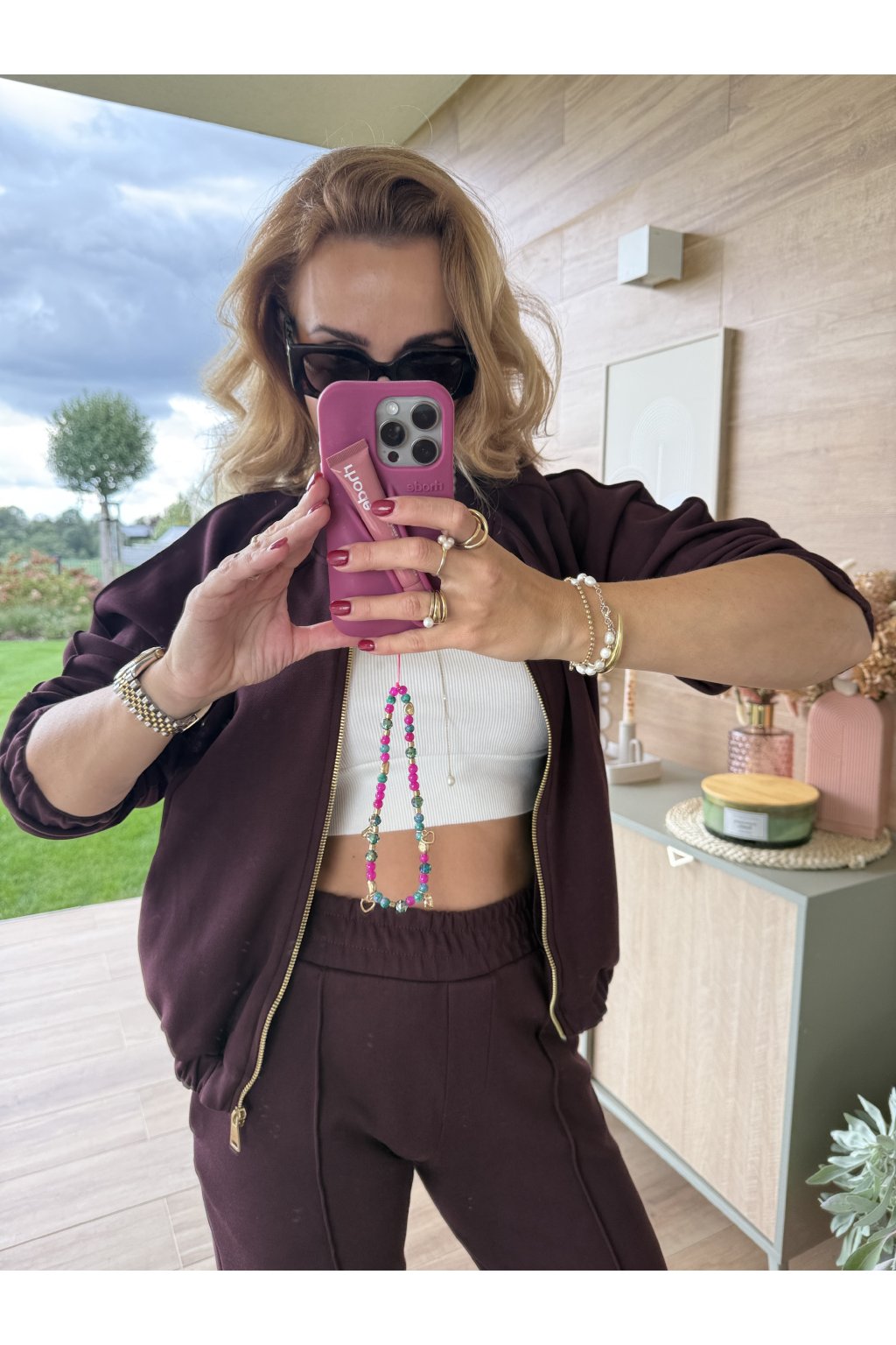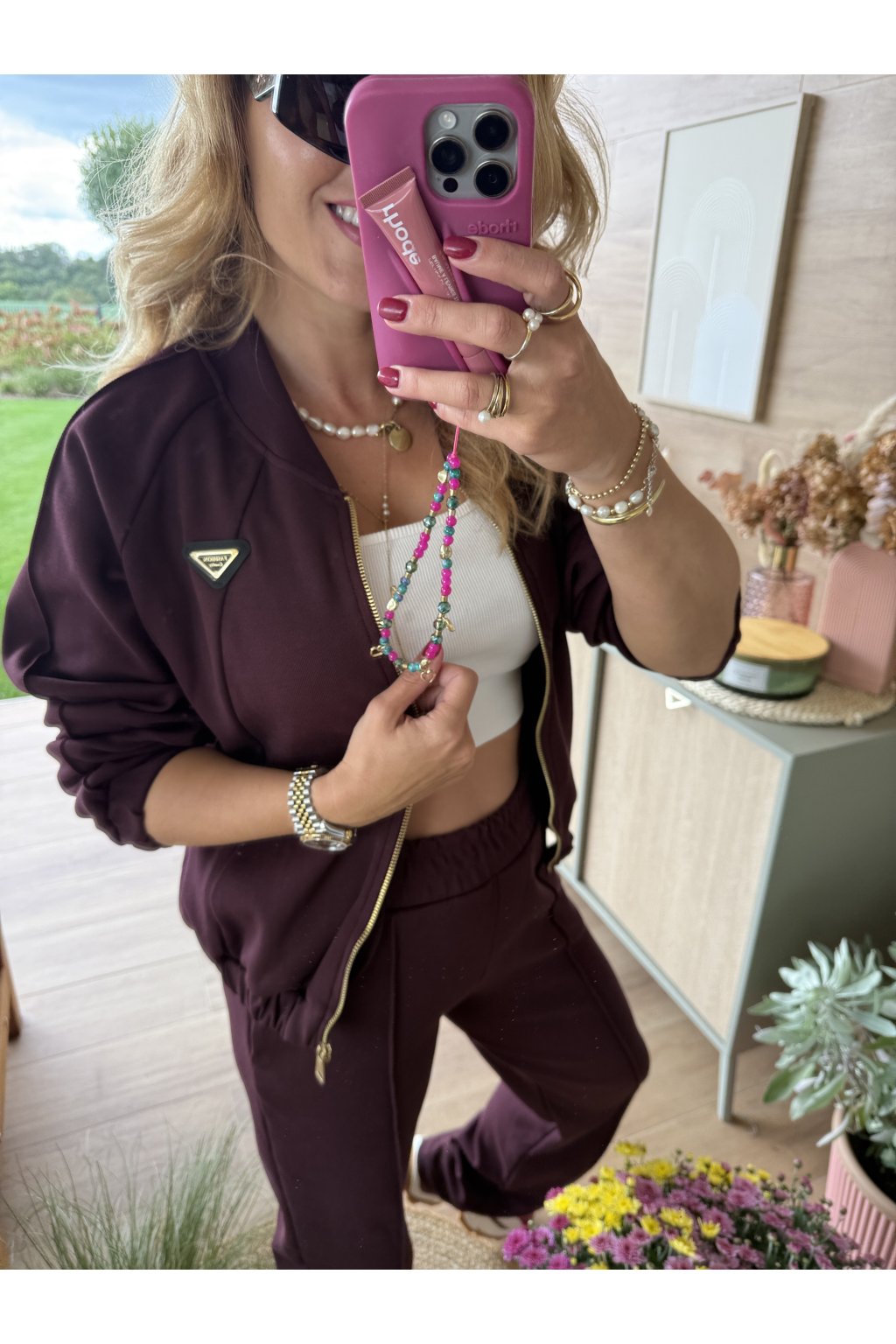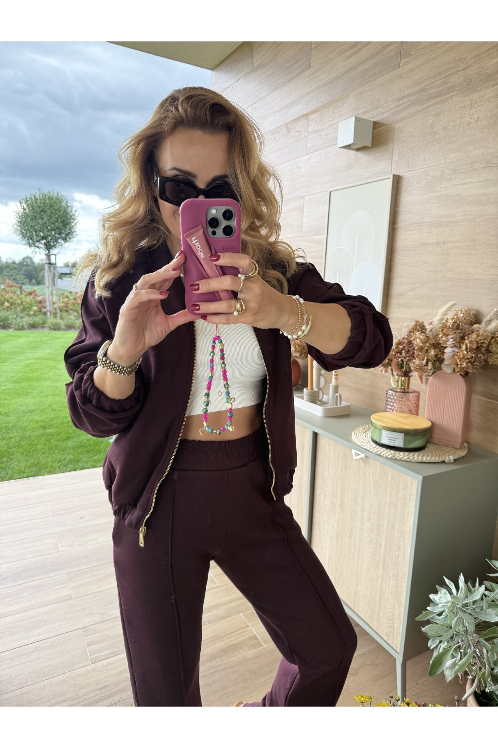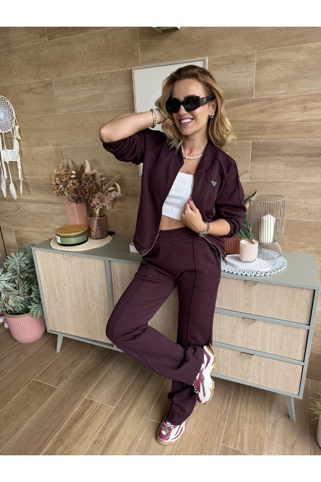 Stylová tepláková souprava v krásném Burundi odstínu, která spojuje pohodlí a eleganci. Mikina na zip s elastickým pasem a zlato černou plackou s nápisem Quality má puky na rukávech a kalhoty s rovnými nohavicemi, mají na přední straně puky, po bocích praktické kapsy a velmi pružný pas. Vytvářejí moderní a zároveň nadčasový look.