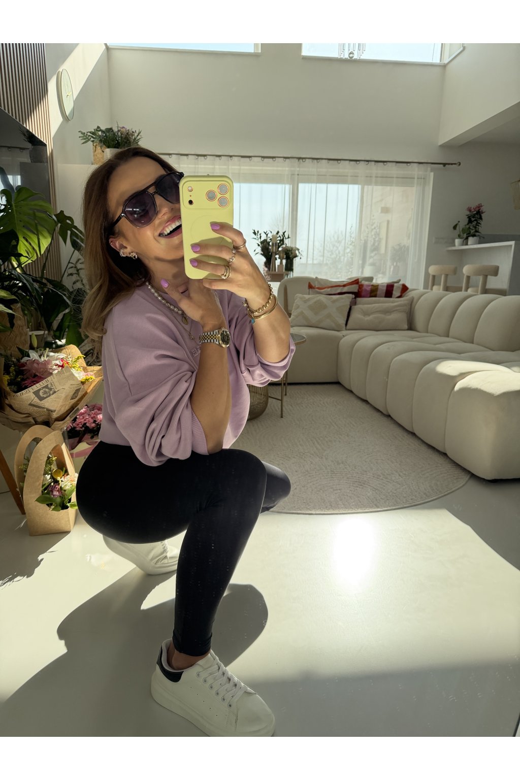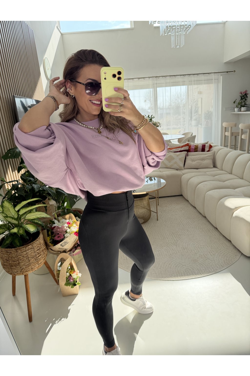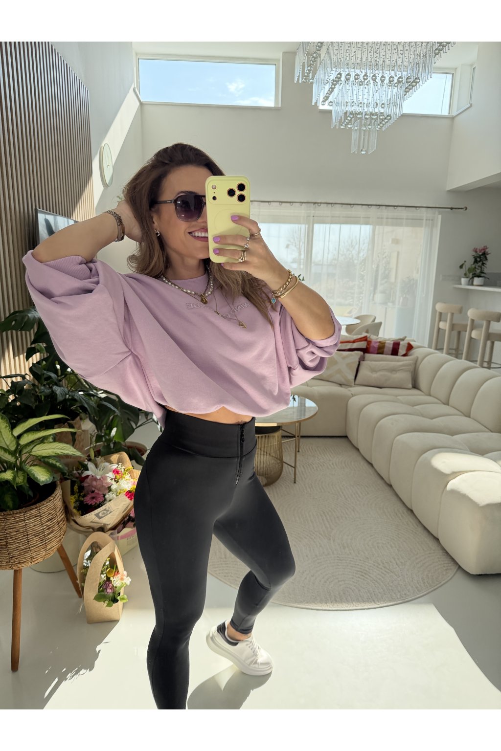 K tomu dokonale padnou stahovací legíny s pevným pasem, které krásně tvarují postavu.