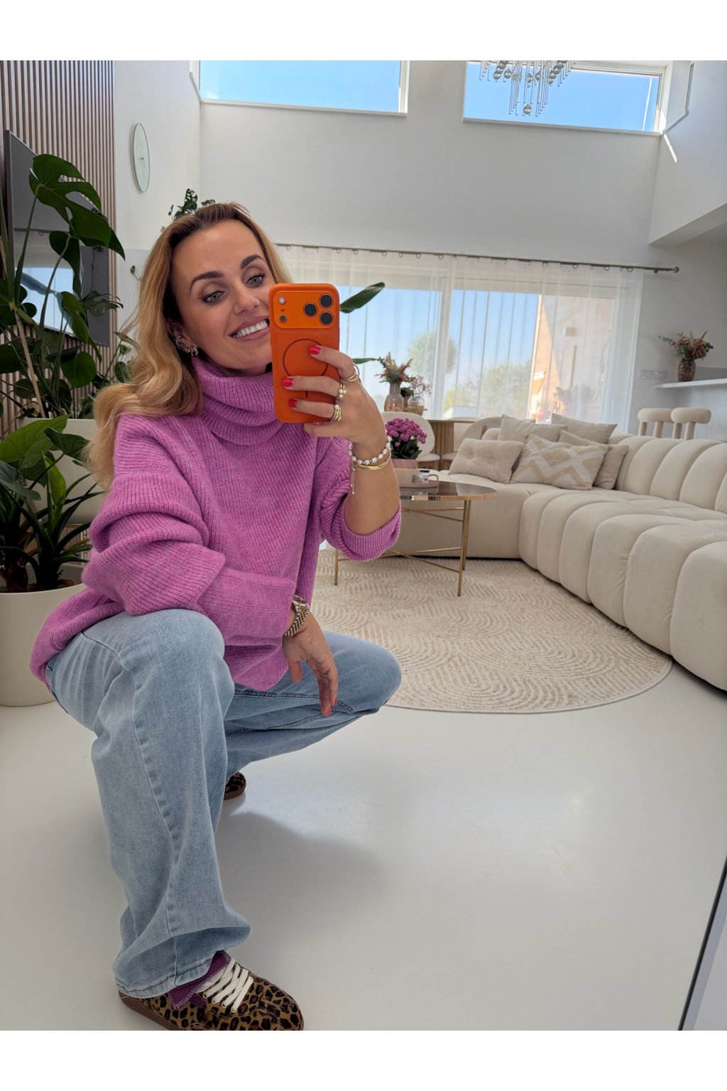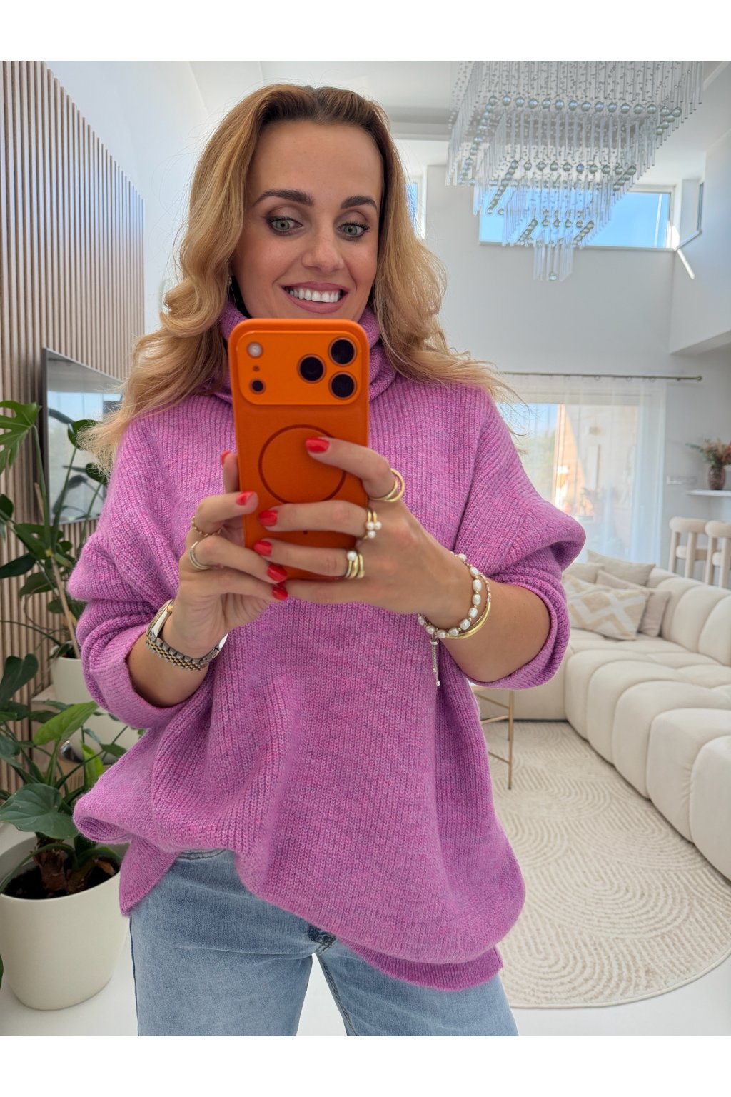 Zamilujte se do ležérní elegance! Tento měkoučký oversize svetr s rolákem je ideální volbou pro chladné dny – zahřeje, ale přitom vypadá stylově. Snadno ho zkombinujete s džínami, legínami i elegantními kalhotami. Sedne od S až do menší velikosti XL.
