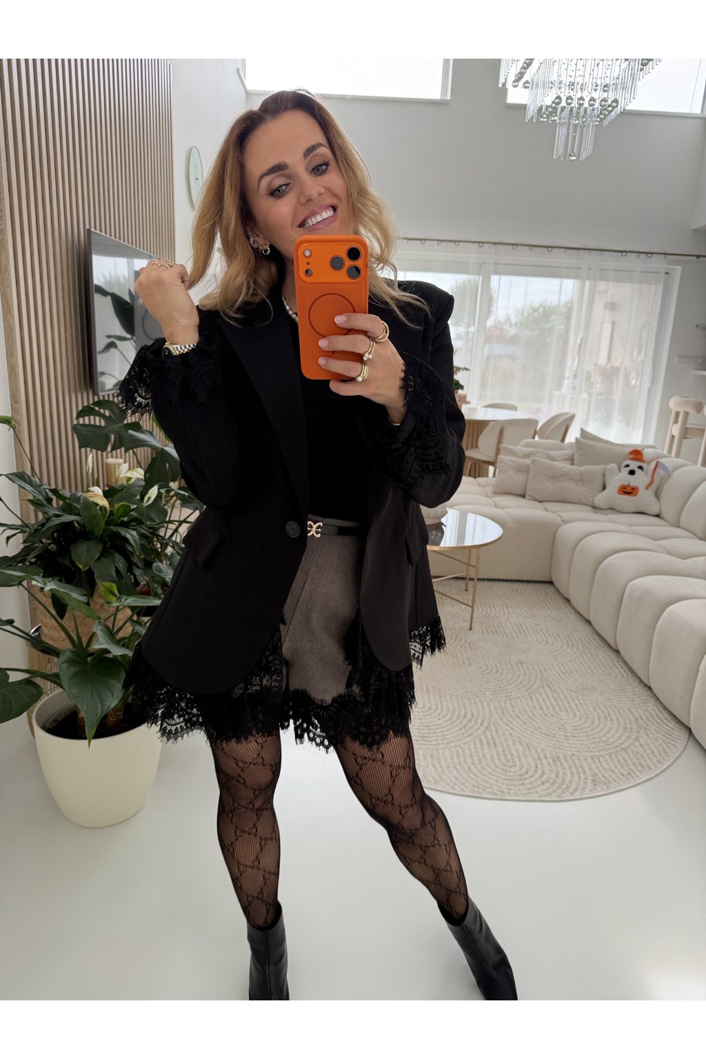 Skvěle vynikne s černým topem a punčochami!