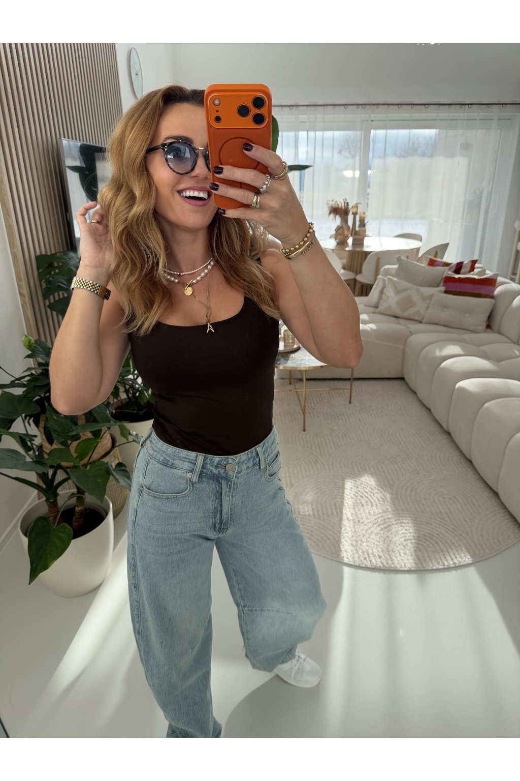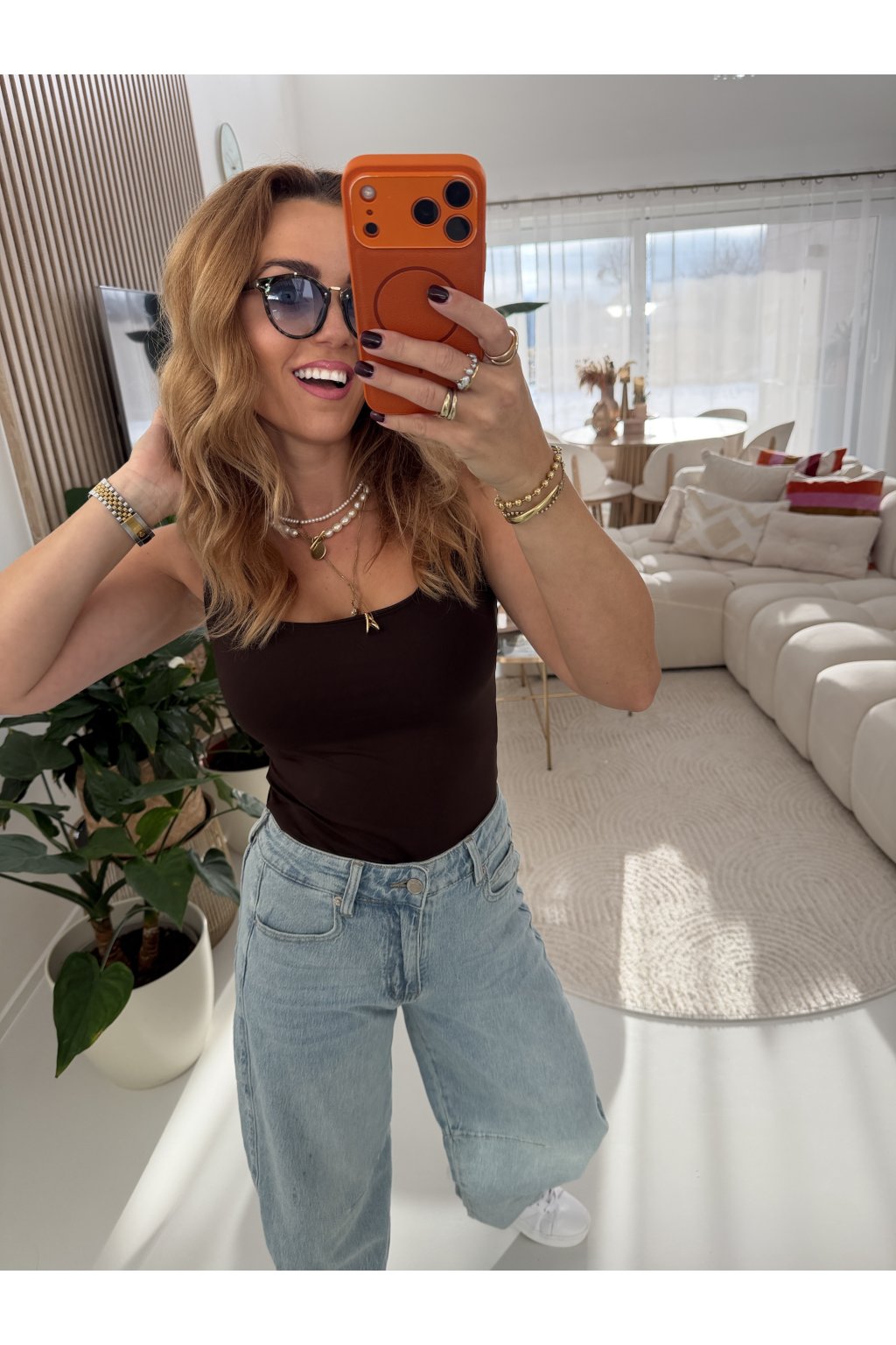 Pohodlné elegantní tílko CRAZY IN LOVE s dvojitým podšitím v oblasti prsou, které zajišťuje lepší oporu a komfort při nošení. Praktická široká ramínka příjemně sedí na ramenou a umožňují nošení bez nutnosti dalšího vrstvení. Díky pružnému materiálu se tílko krásně přizpůsobí postavě a je ideální pro každodenní nošení i aktivnější den. Propředstavu mám na sobě velikost S.