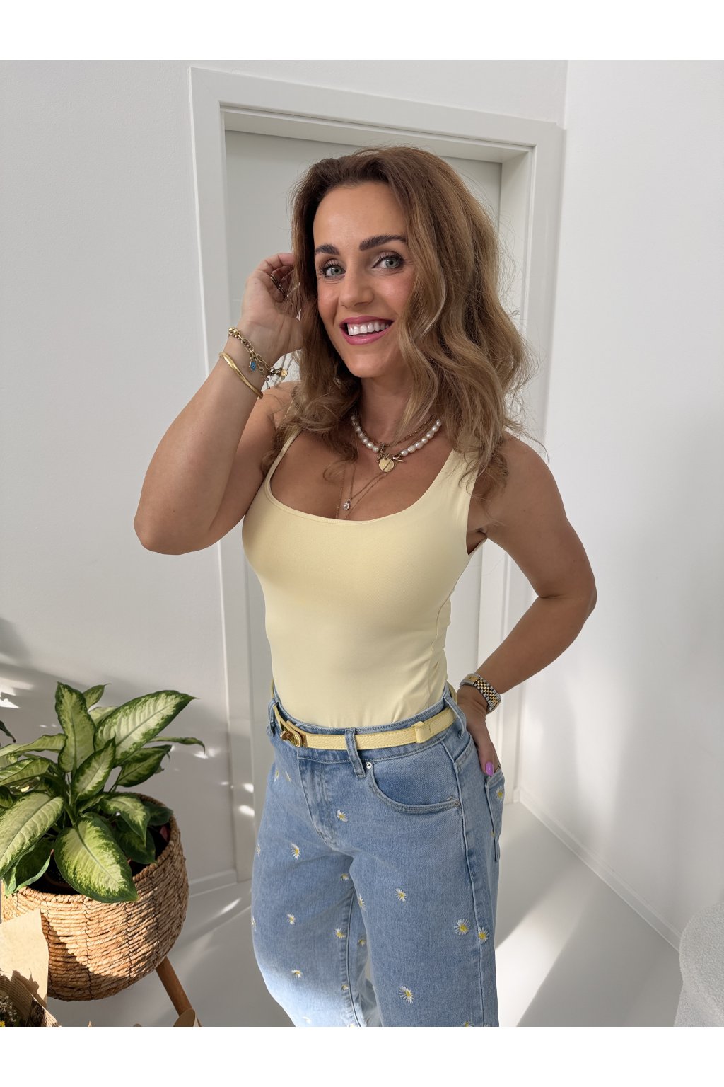 Pohodlné elegantní tílko CRAZY IN LOVE s dvojitým podšitím v oblasti prsou, které zajišťuje lepší oporu a komfort při nošení. Praktická široká ramínka příjemně sedí na ramenou a umožňují nošení bez nutnosti dalšího vrstvení. Díky pružnému materiálu se tílko krásně přizpůsobí postavě a je ideální pro každodenní nošení i aktivnější den. Propředstavu mám na sobě velikost S.