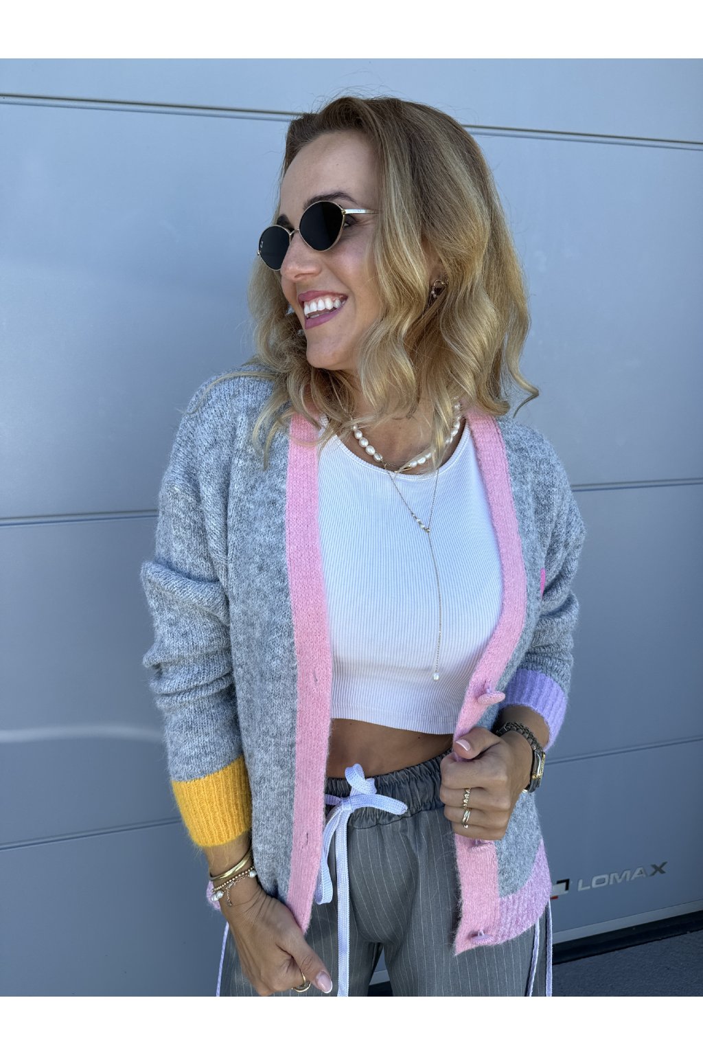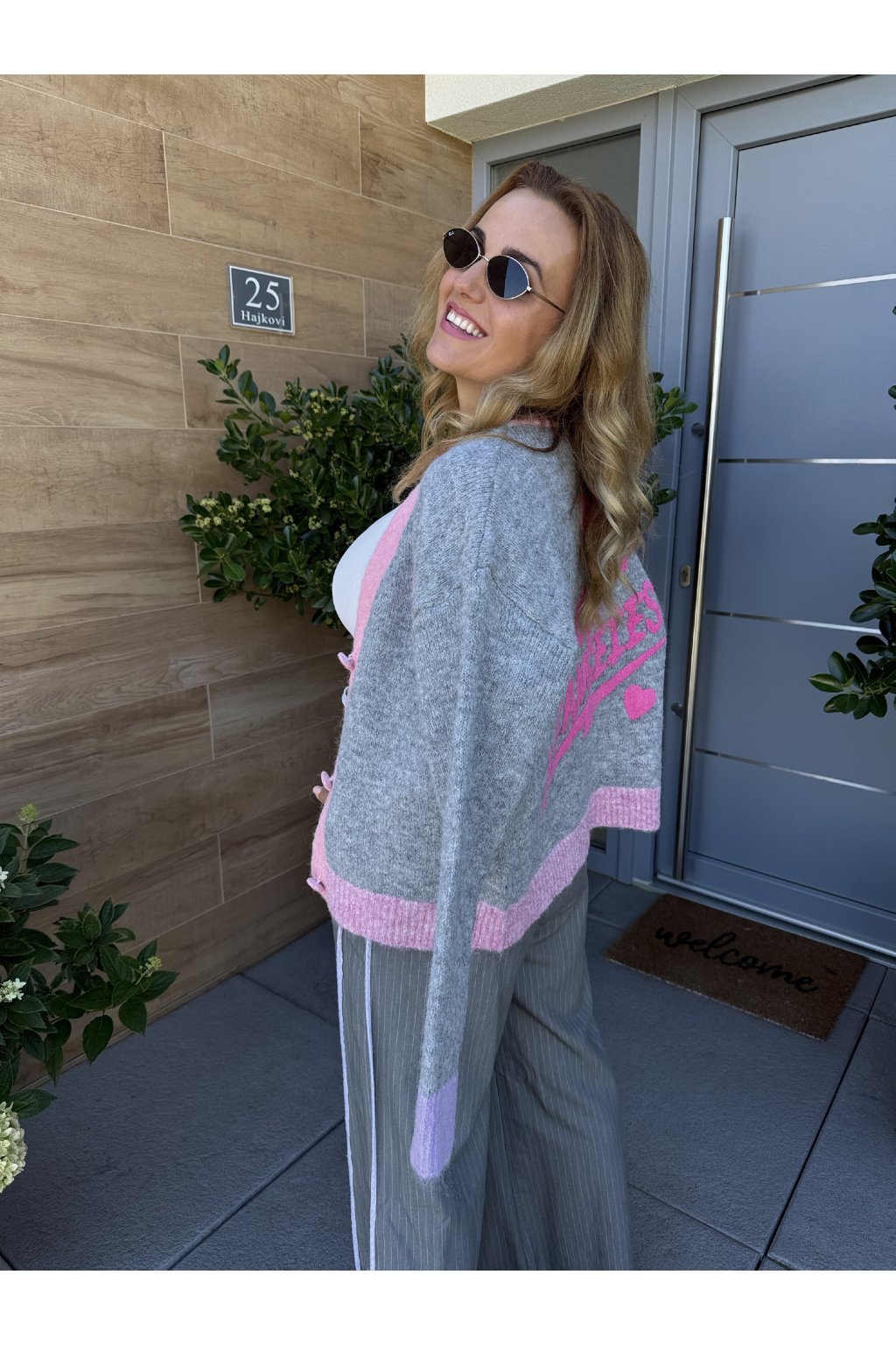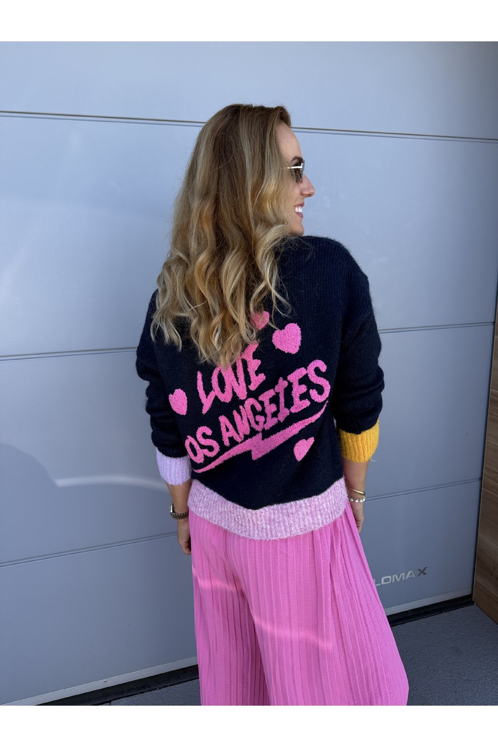 Kardigan LOS ANGELS. Zapíná se na čtyři knoflíky . Má výstřih do véčka. Vzadu je nápis Love Los Angeles. Můžeš ho nosit na holé tělo nebo na tričko. Velikost sedne od S do větší velikosti L.
