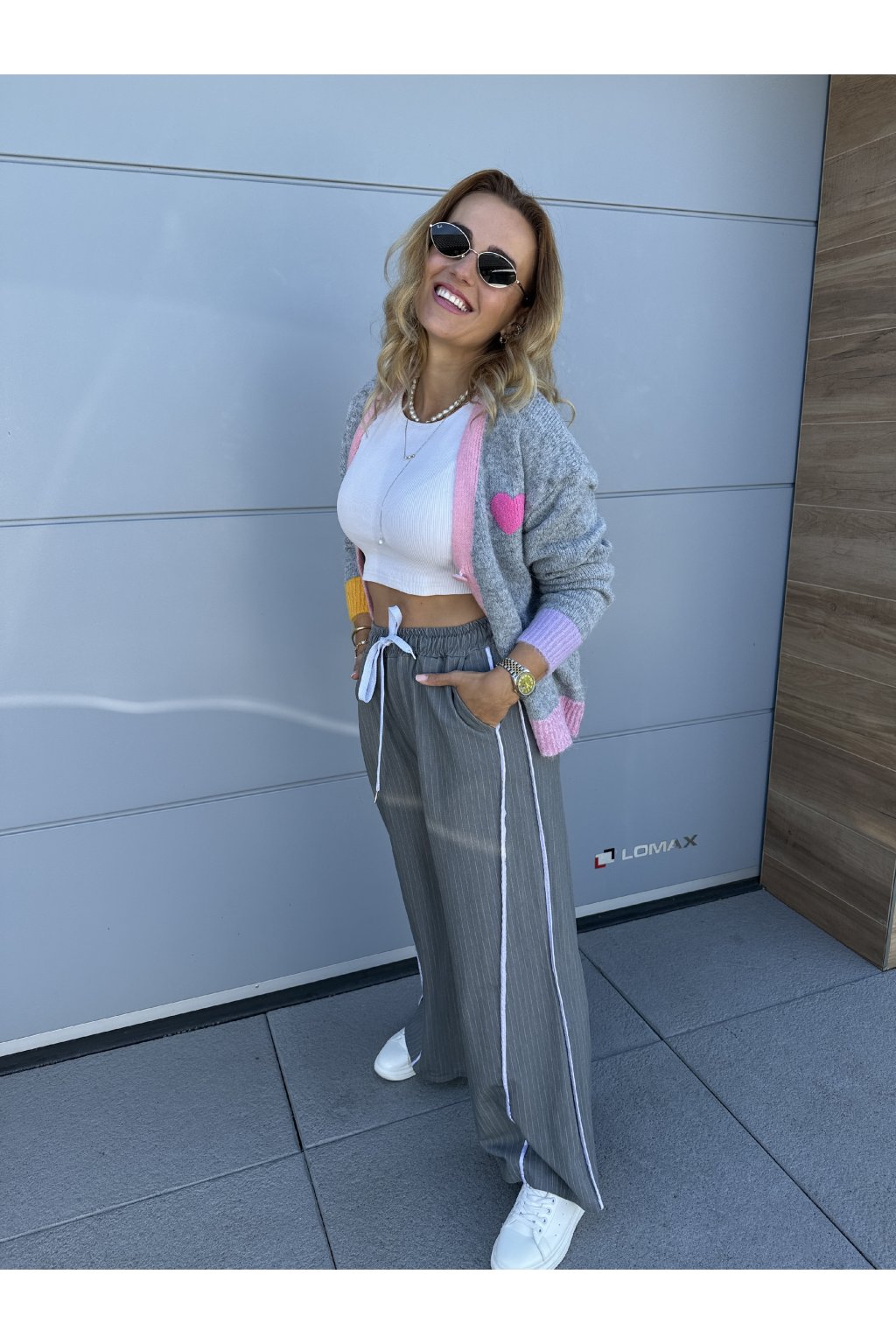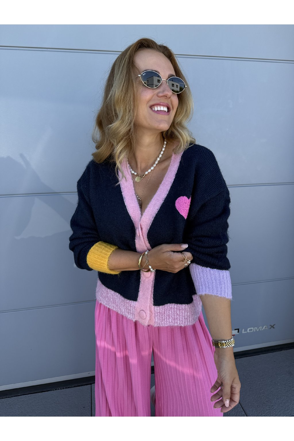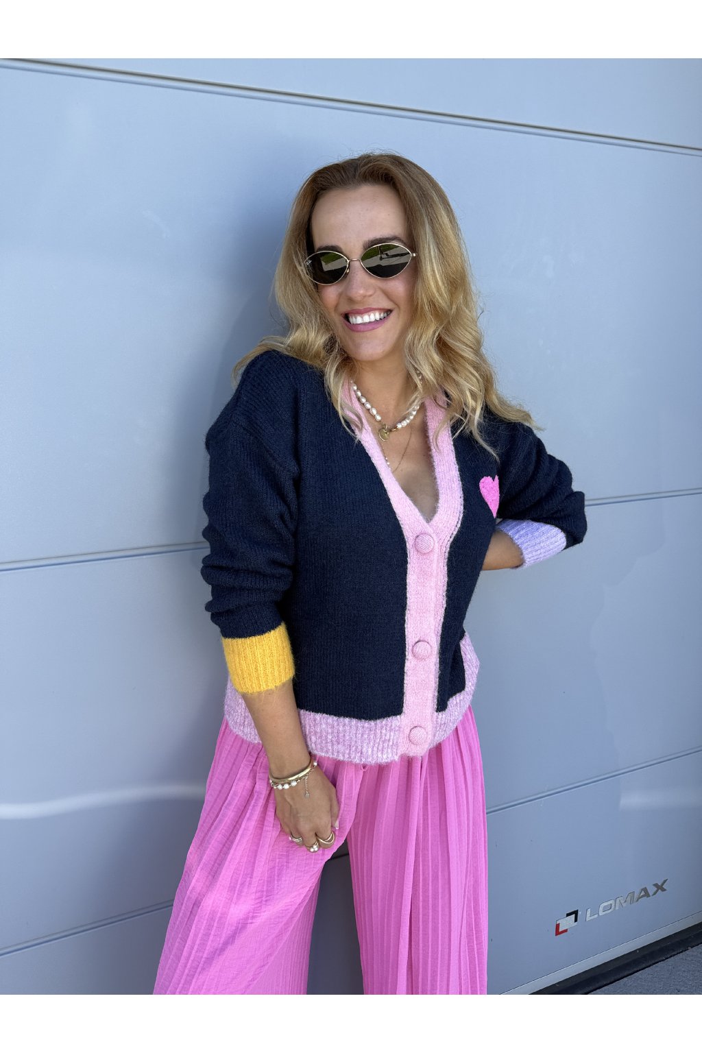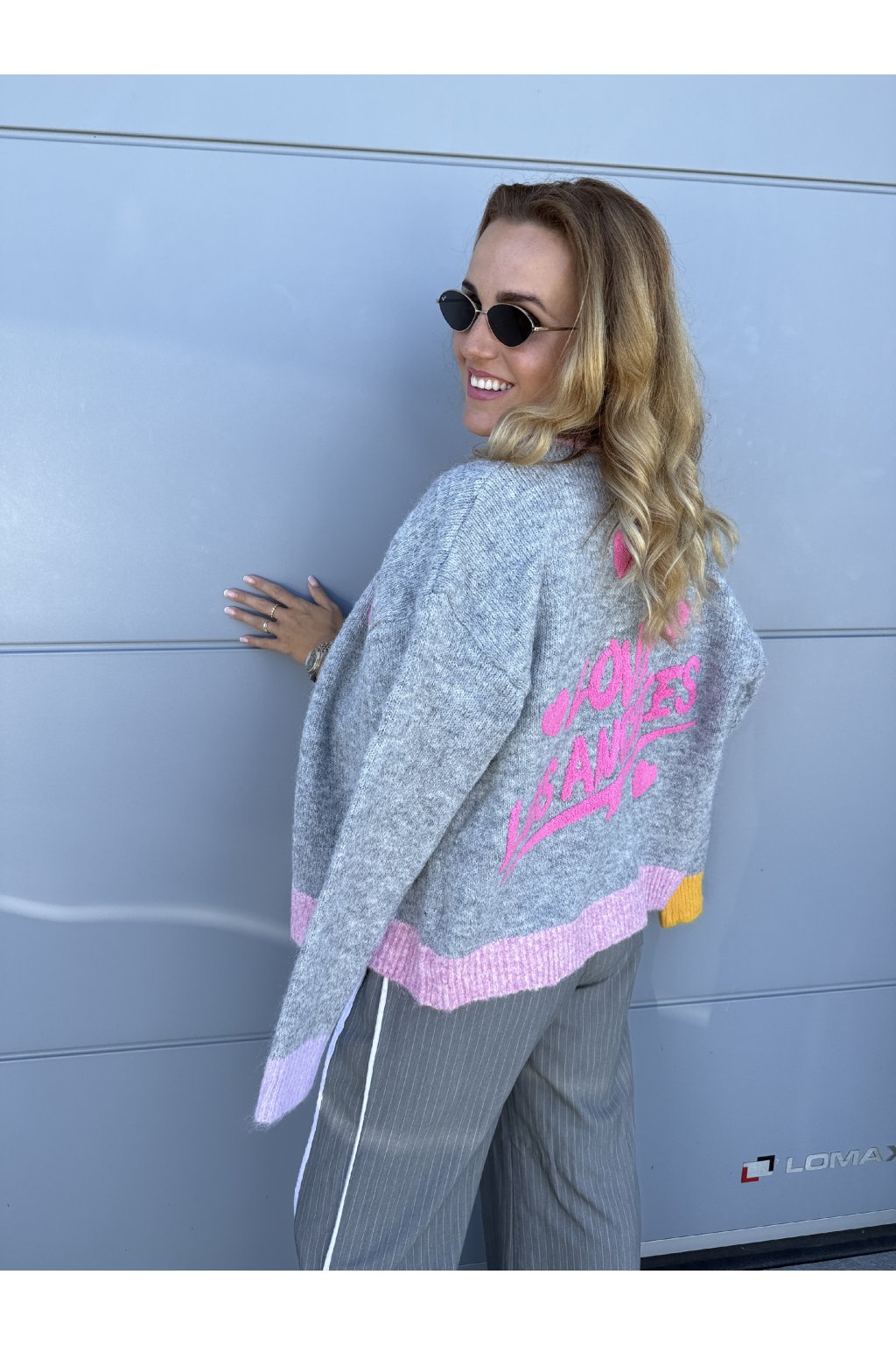 Kardigan LOS ANGELS. Zapíná se na čtyři knoflíky . Má výstřih do véčka. Vzadu je nápis Love Los Angeles. Můžeš ho nosit na holé tělo nebo na tričko. Velikost sedne od S do větší velikosti L.