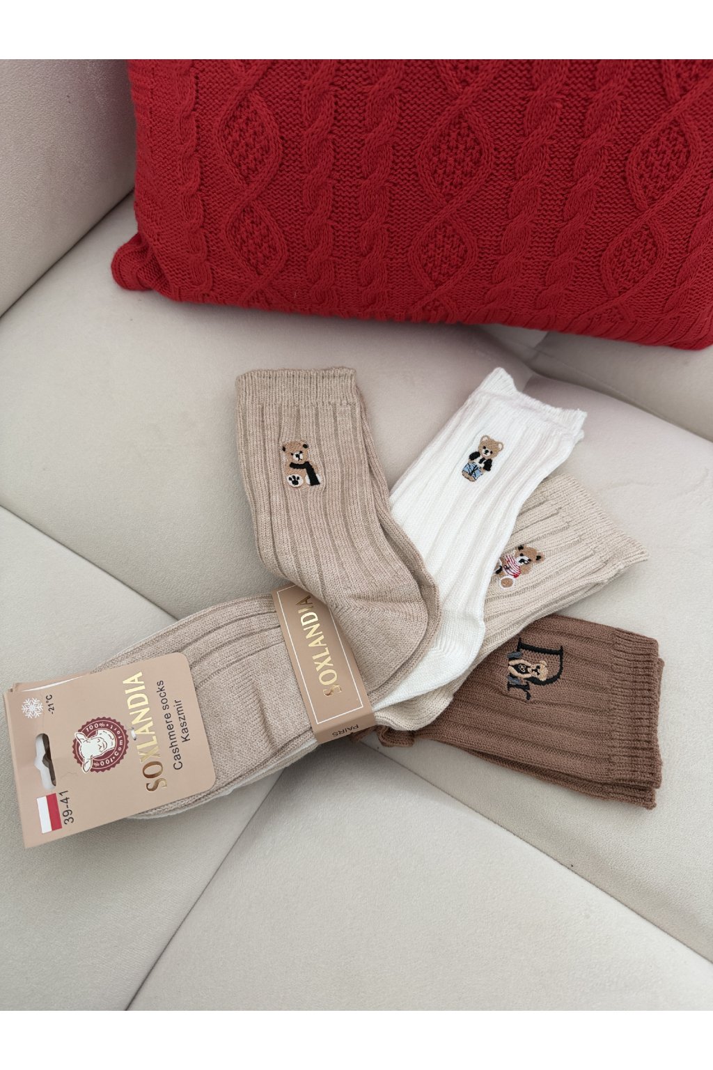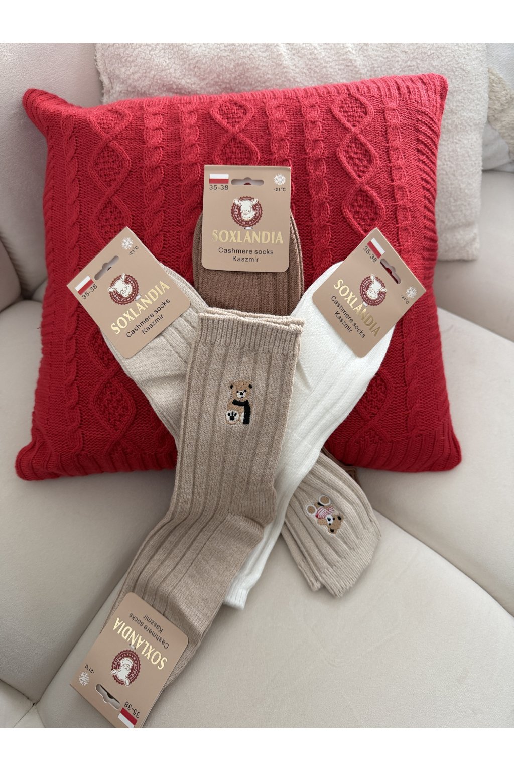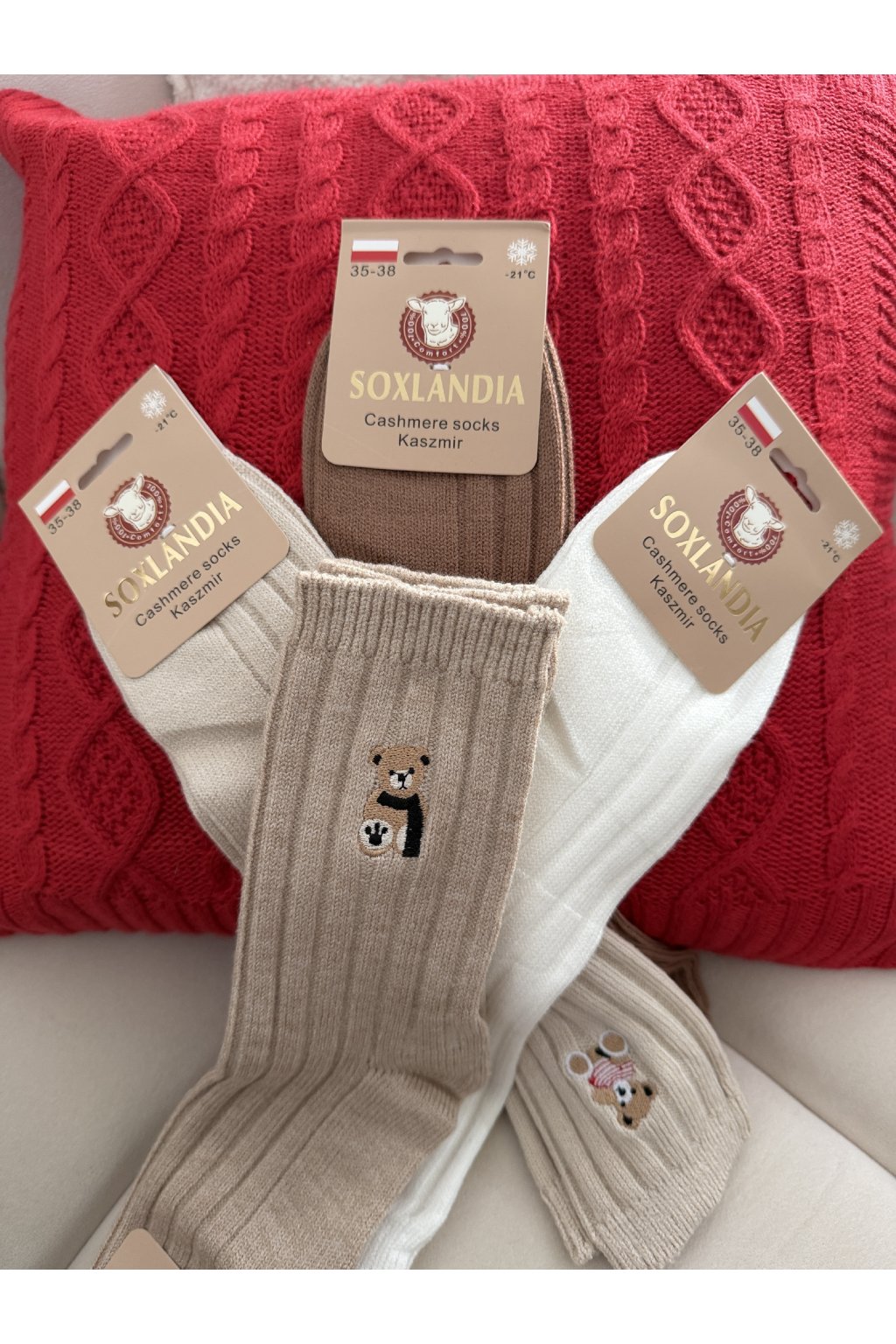 Dopřejte si maximální pohodlí s ultra měkkými kašmírovými ponožkami SOXLANDIA. Díky 95% podílu kašmíru jsou neuvěřitelně hřejivé, lehké a jemné na dotek. Perfektní do zimních dnů i jako domácí ‚warm luxury‘. Každý pár zdobí detailní výšivka roztomilého medvídka, která dodá vašemu outfitu hravý a stylový akcent. Skvělé jako dárek – nebo malý luxus jen pro vás.