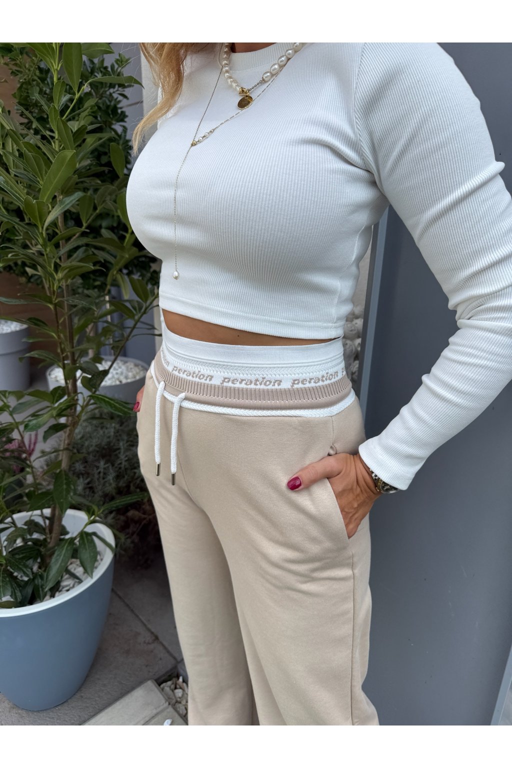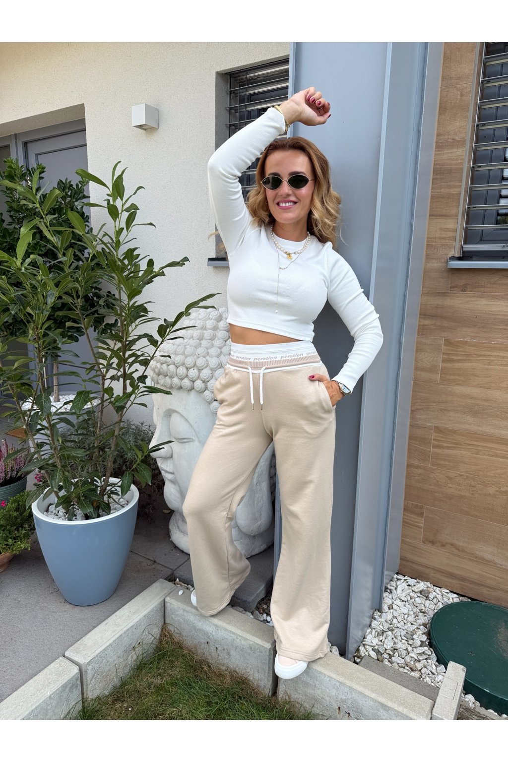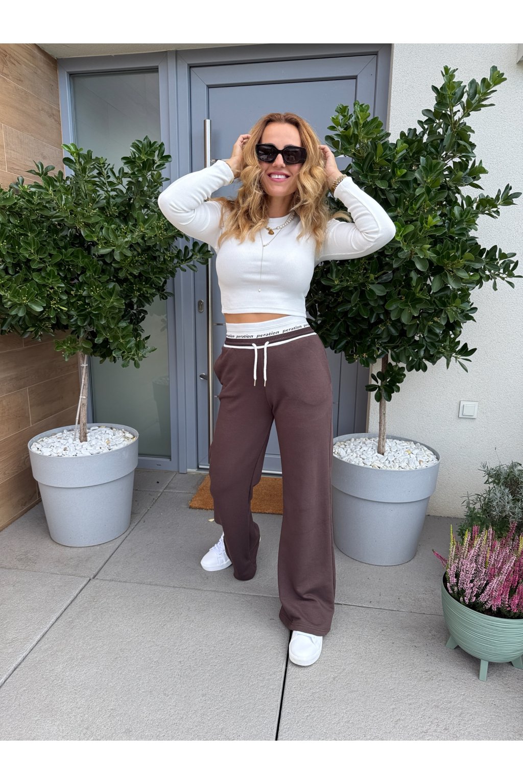 Teplákovka PERFECT ILLUSIONE se skládá z bílého topu z vysokogramážní bavlny. Tepláky mají vysoký pas a nohavice jsou rozšířené. Po bocích jsou praktické kapsy. Tyhle teplákovou jsou přesně ten kousek, který si oblíbíte na doma i na ven. Pro představu měřím 163cm a vážím 60kg.