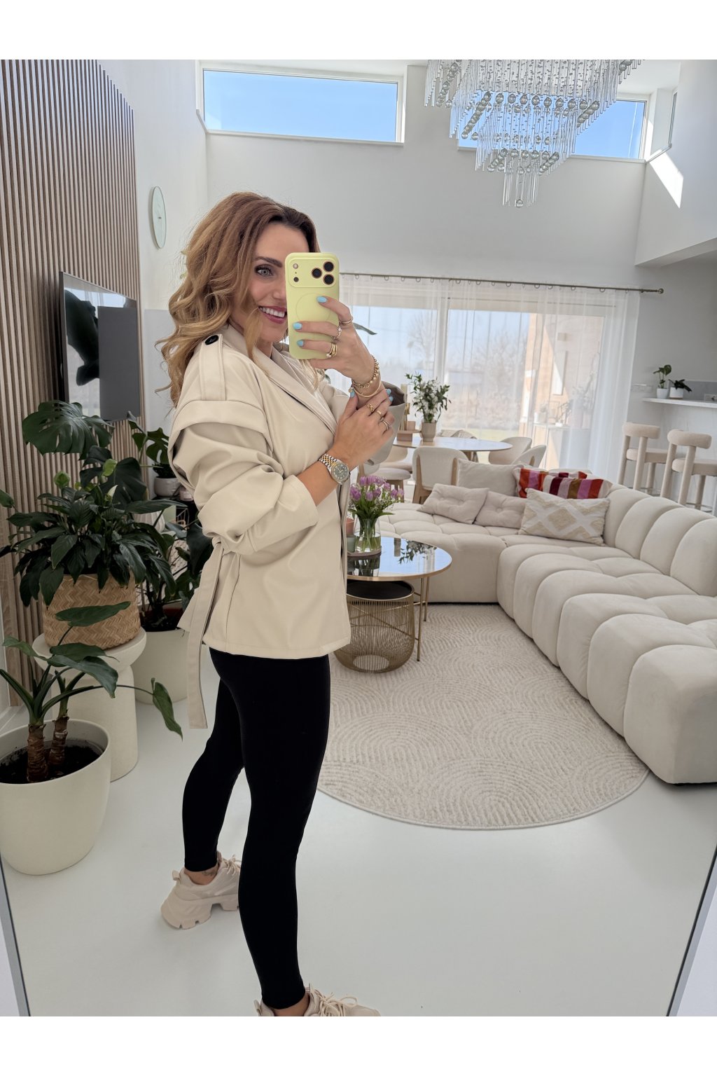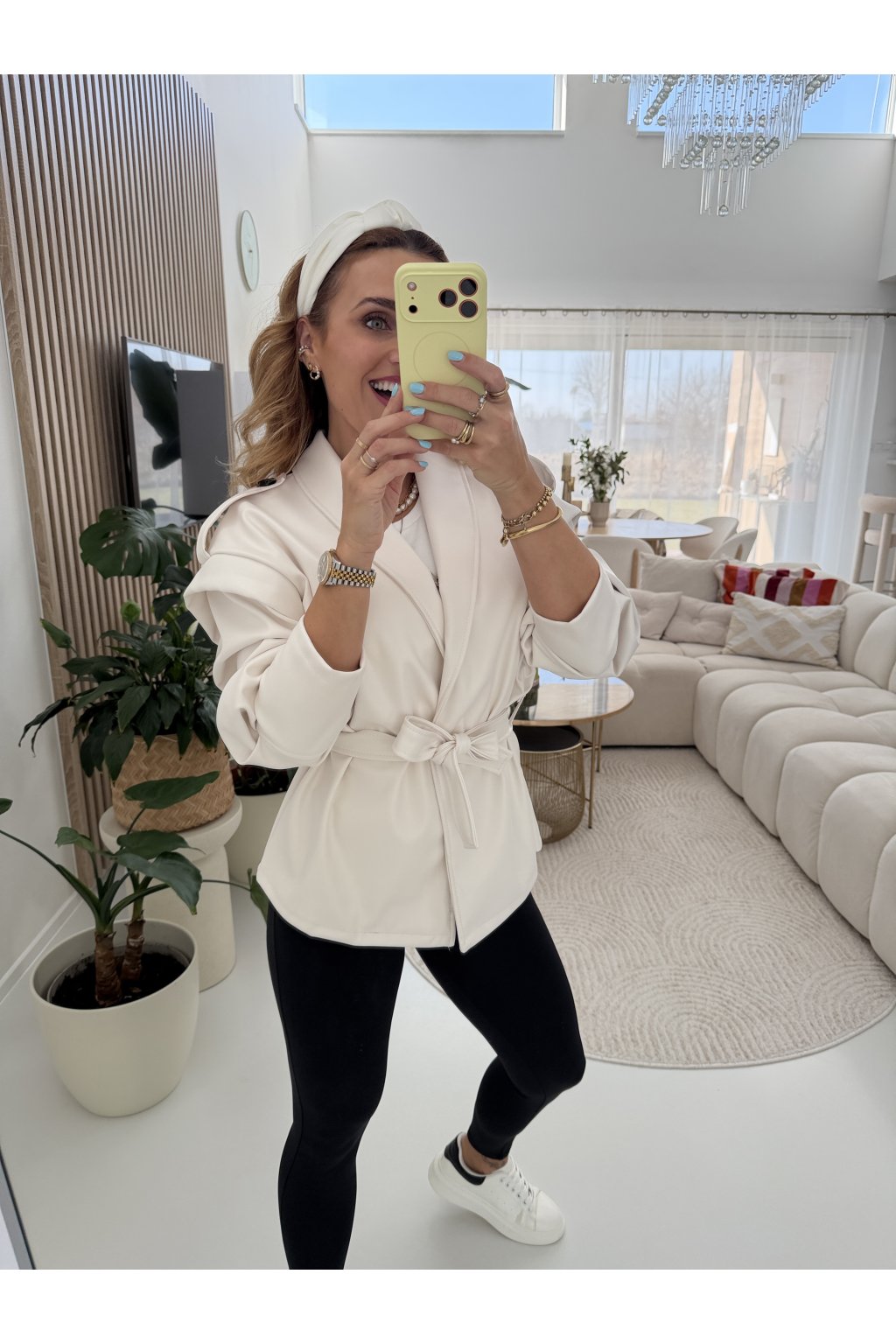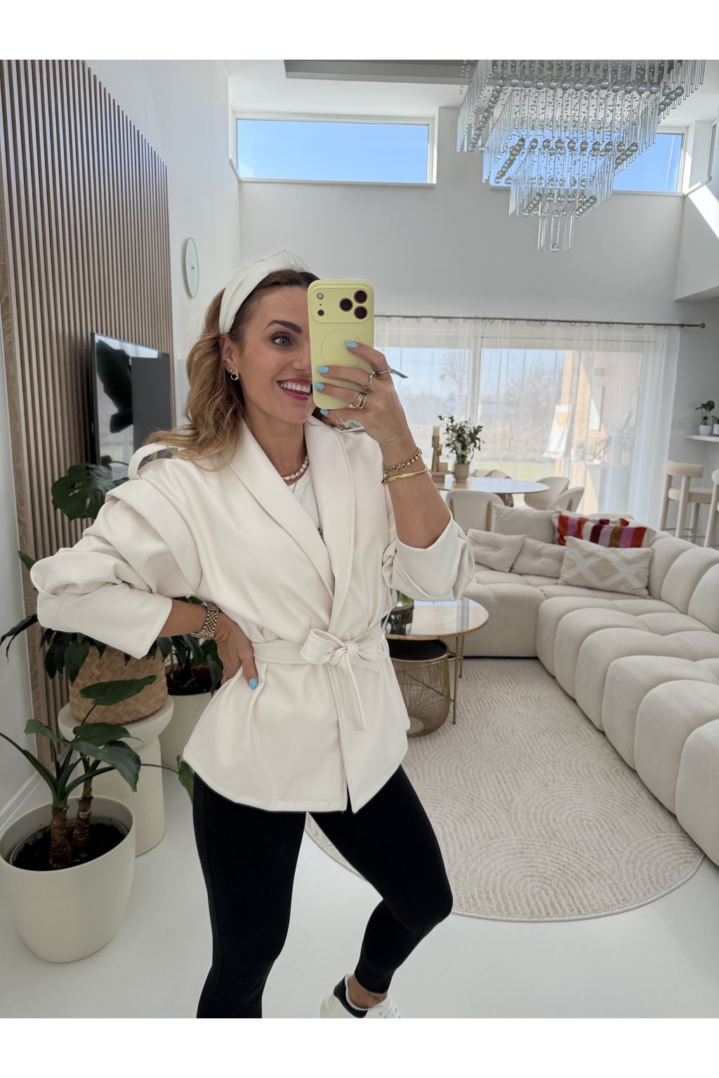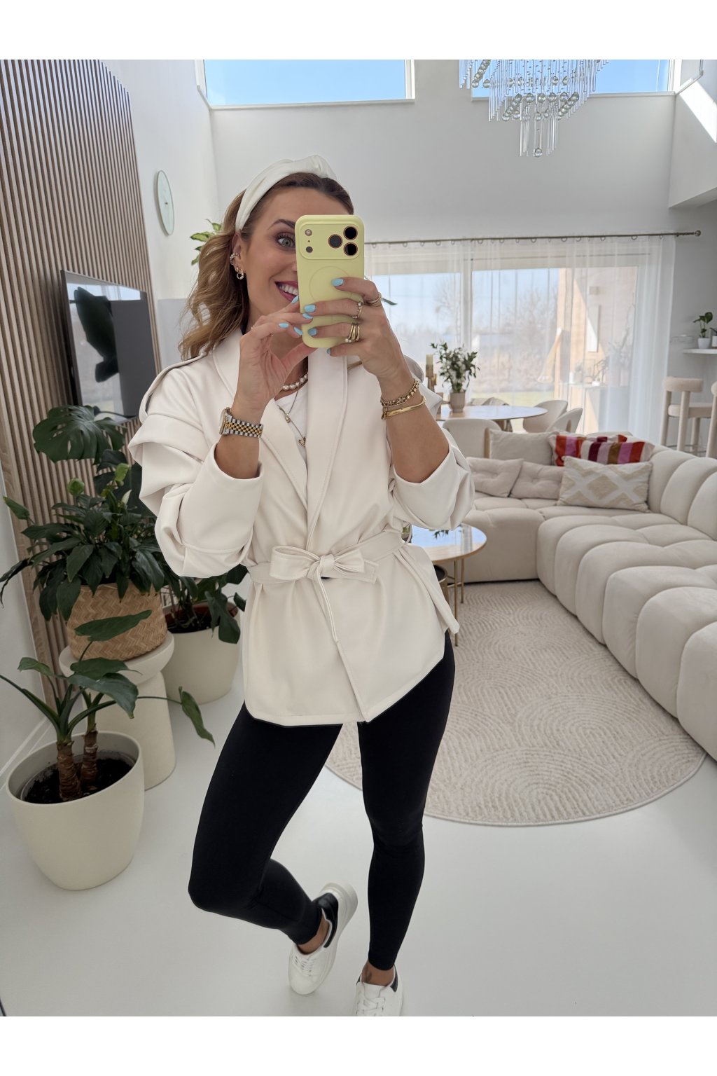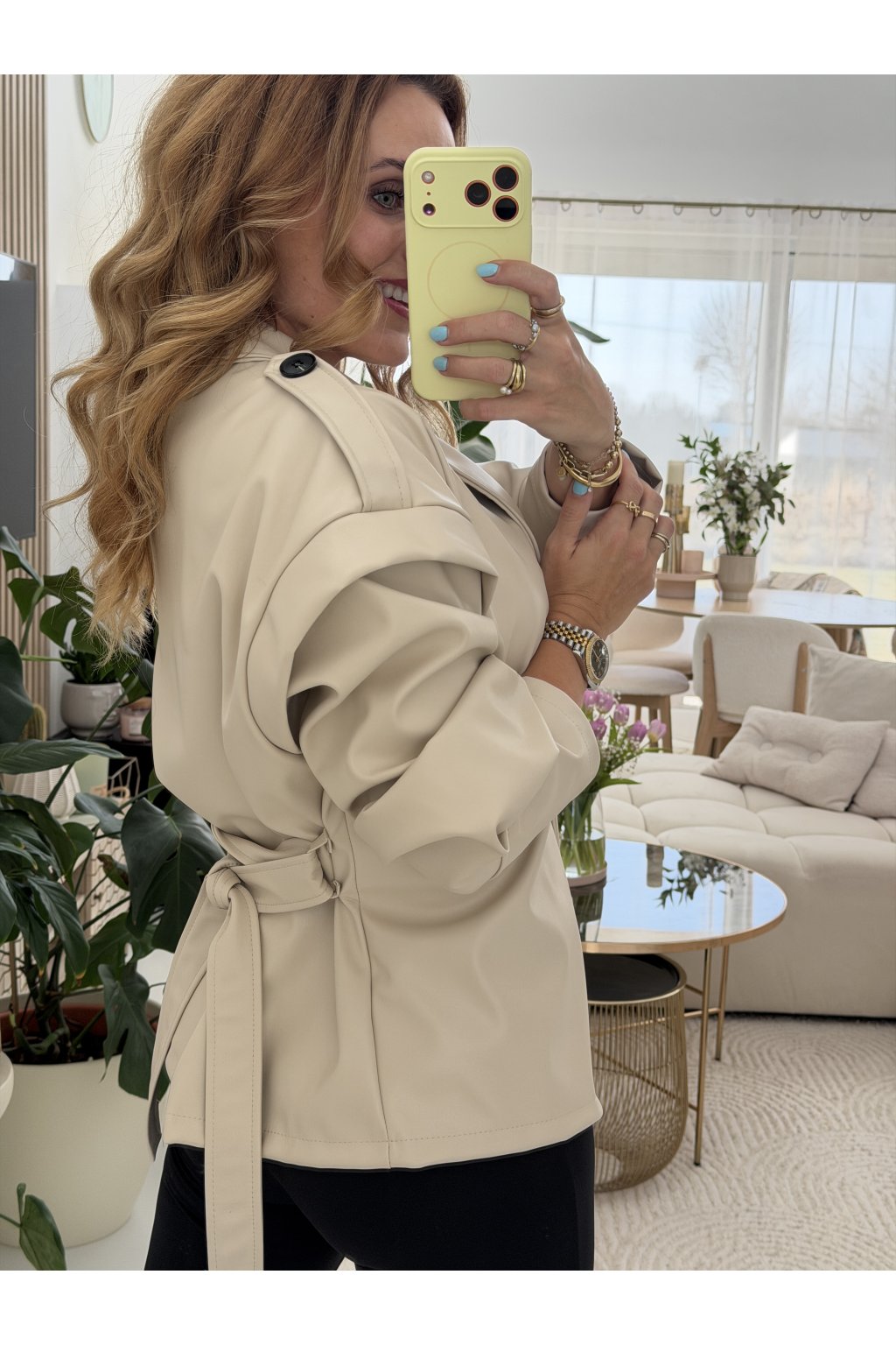 Stylová bunda SOFT CHIC JACKET z měkké, příjemné eko kůže, která si tě získá na první dotek .Trendy nabírané rukávy dodávají outfitu moderní výraz a zavazování v pase krásně vytvaruje siluetu.