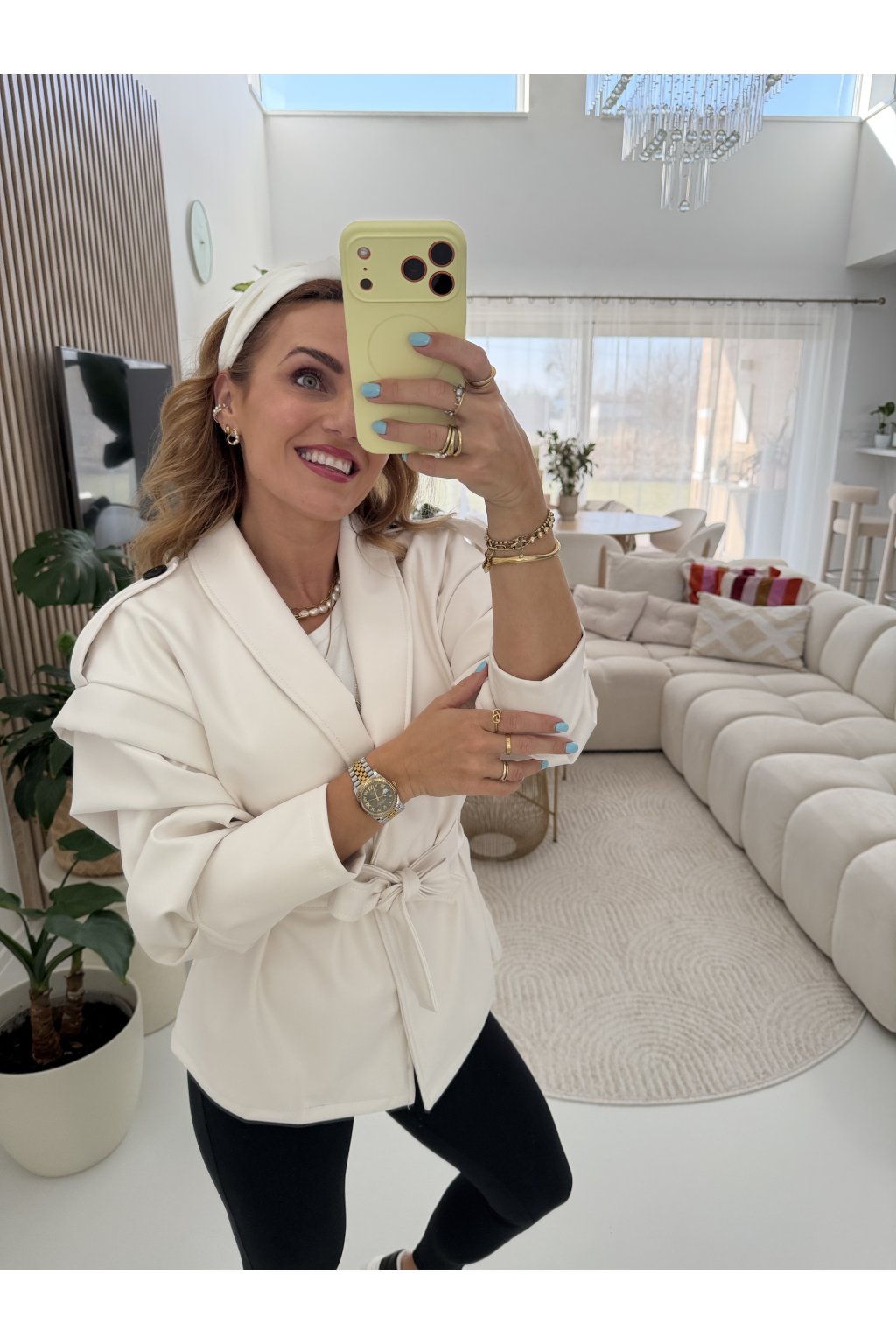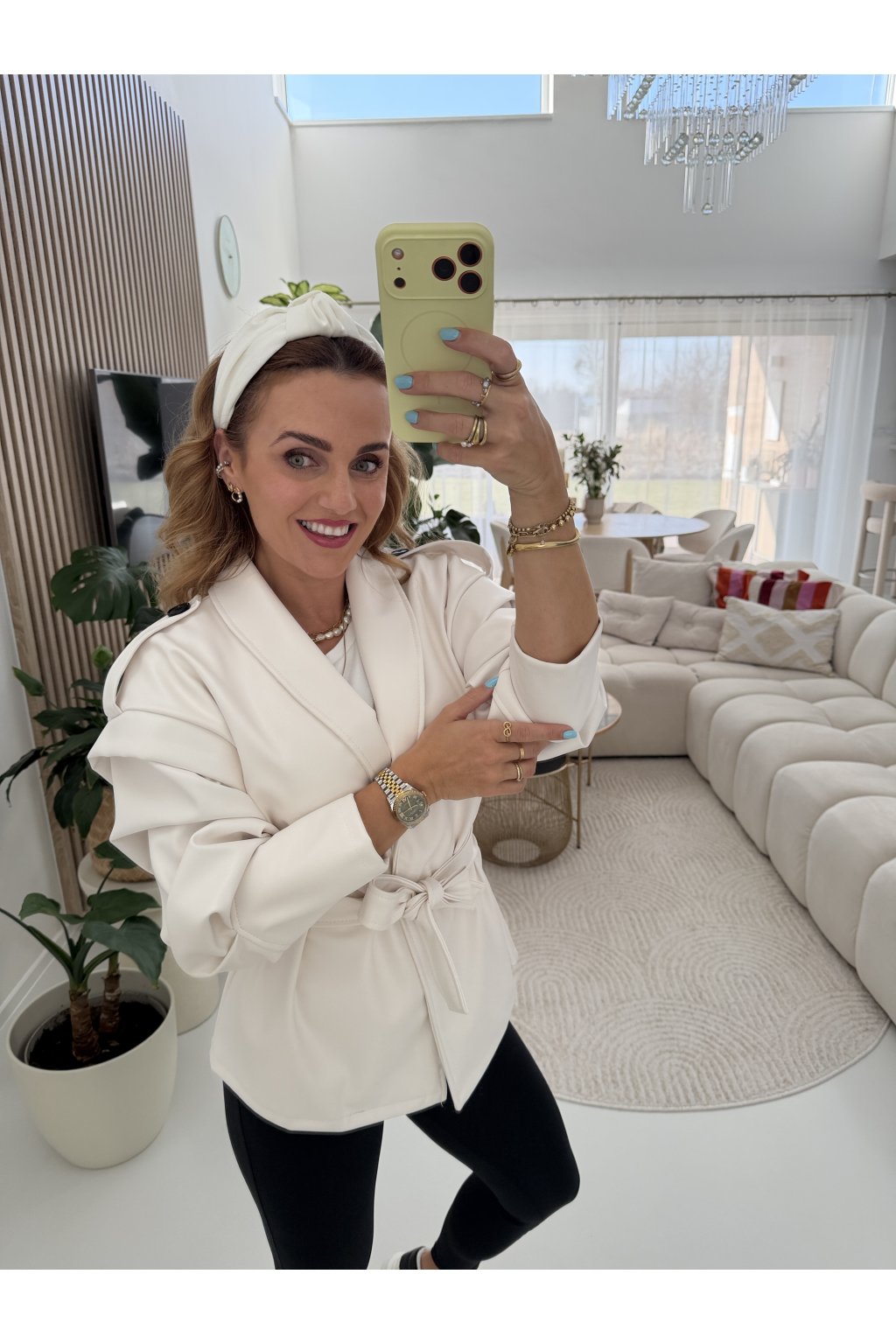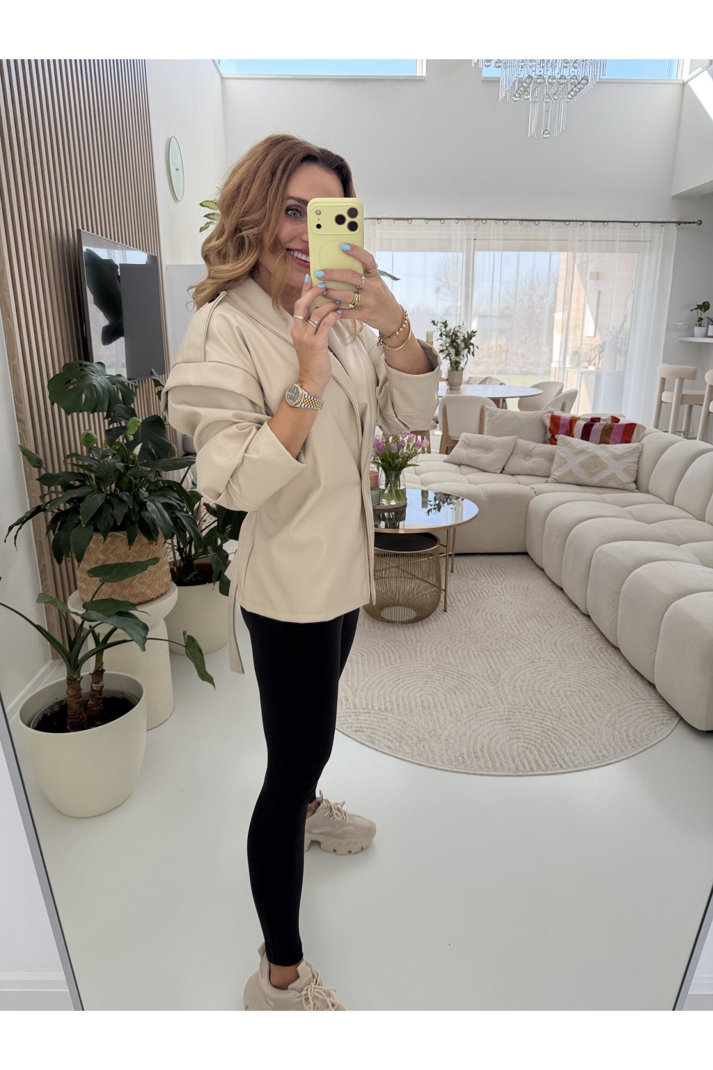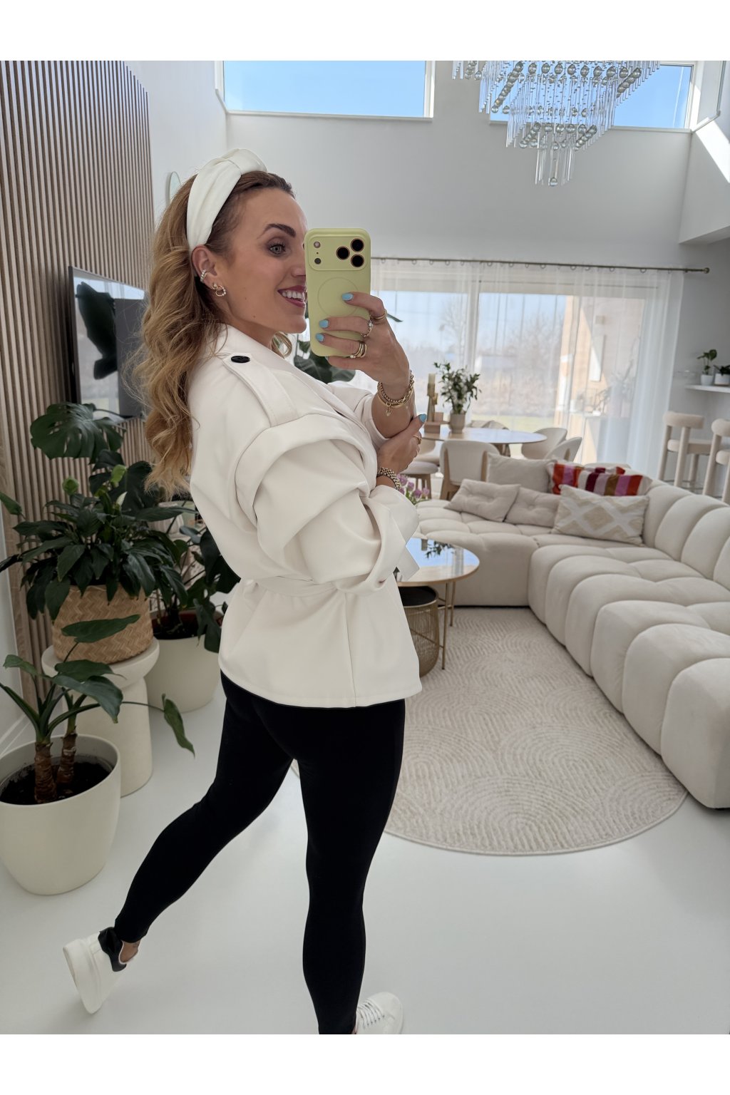 Stylová bunda SOFT CHIC JACKET z měkké, příjemné eko kůže, která si tě získá na první dotek .Trendy nabírané rukávy dodávají outfitu moderní výraz a zavazování v pase krásně vytvaruje siluetu.