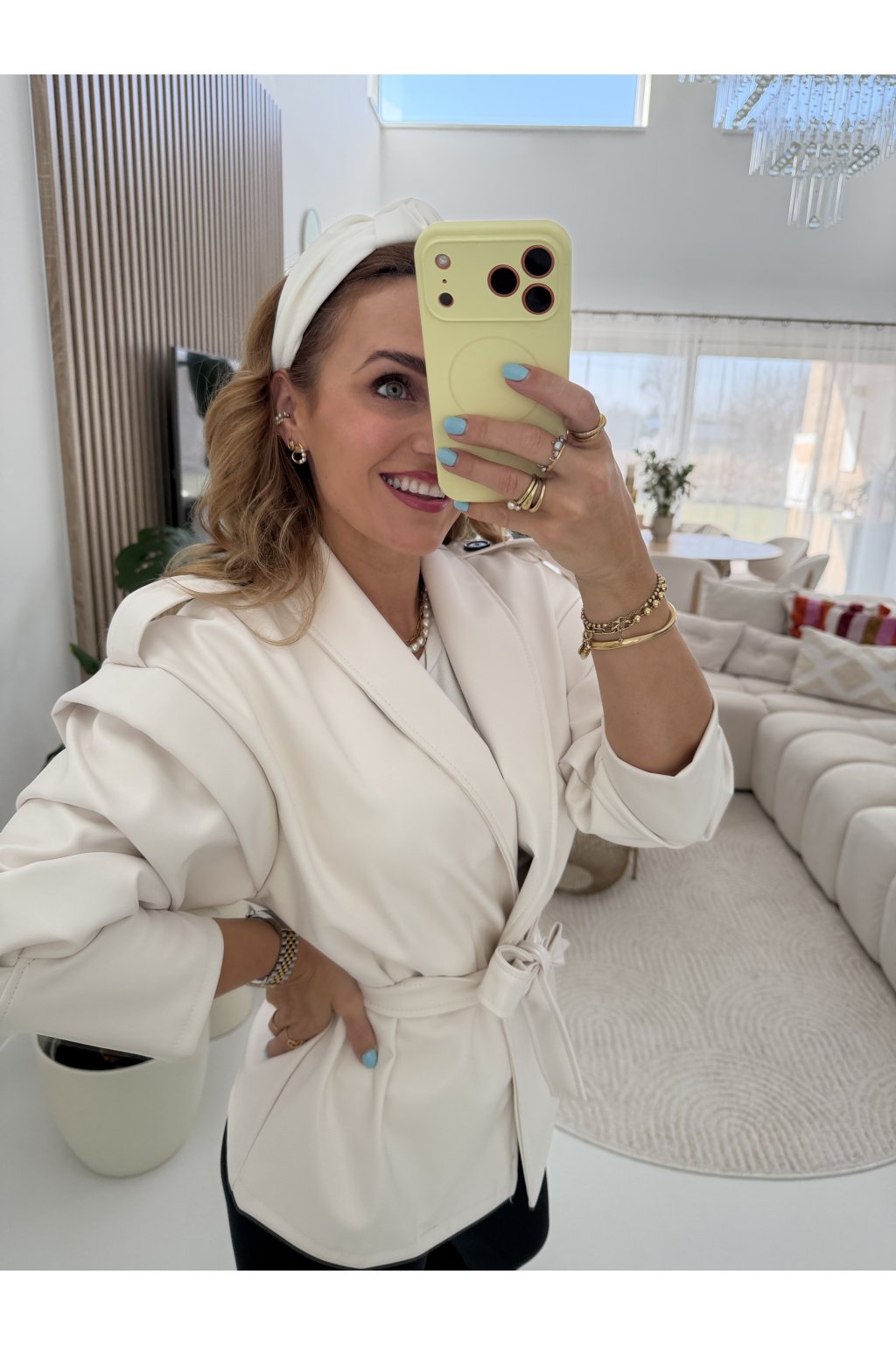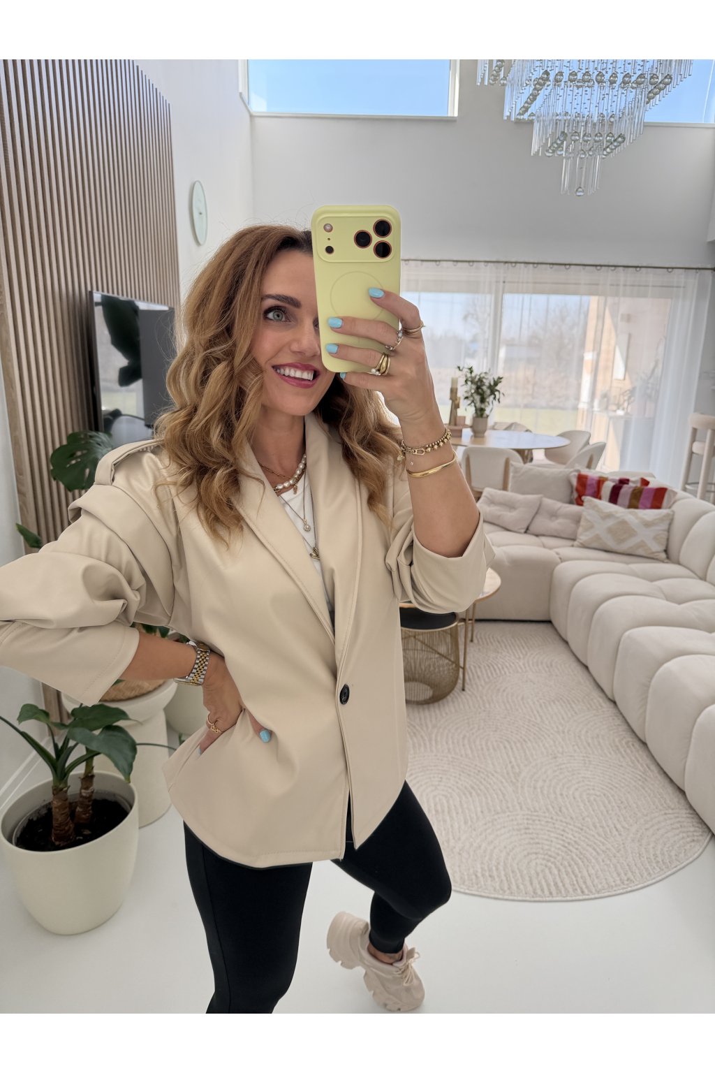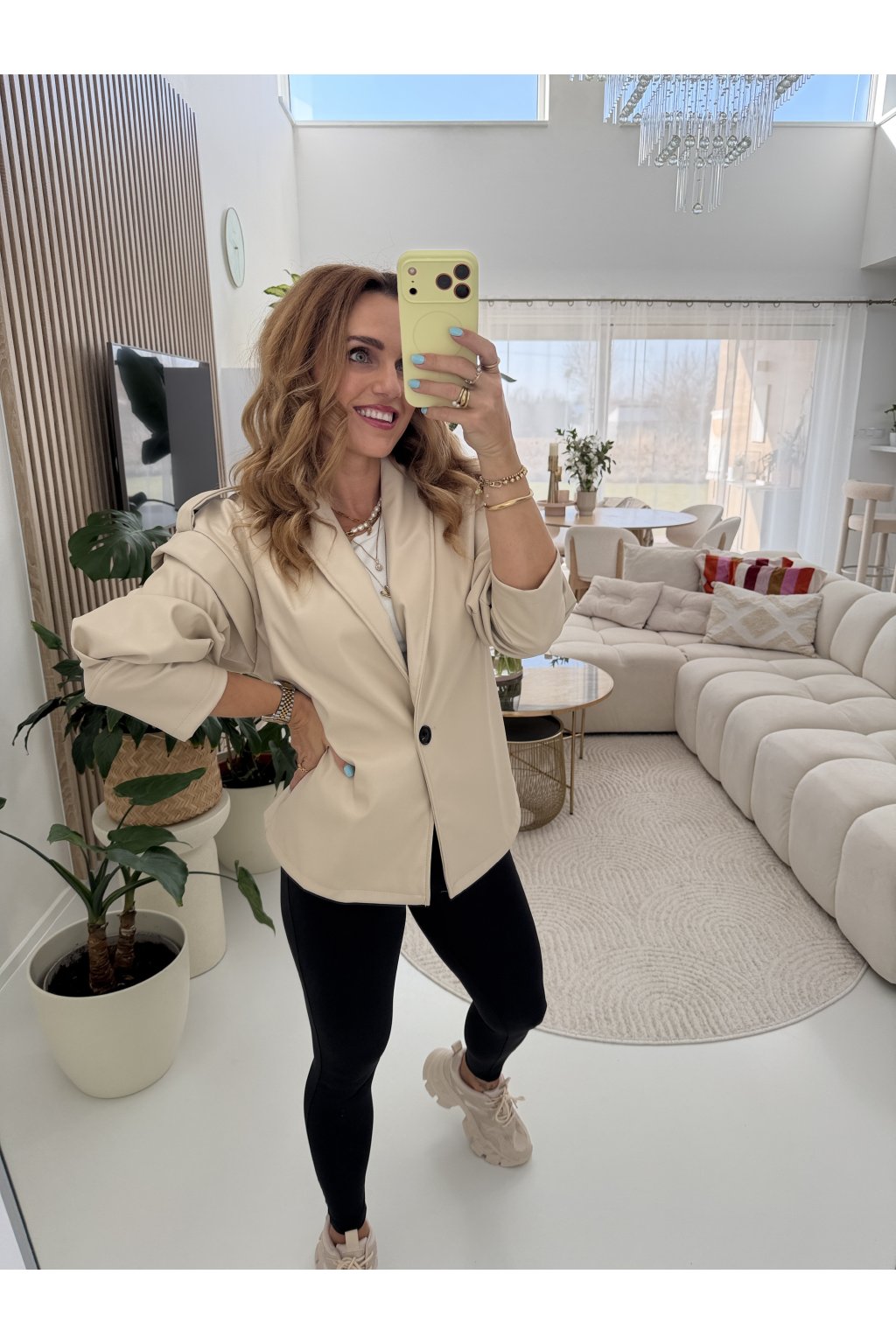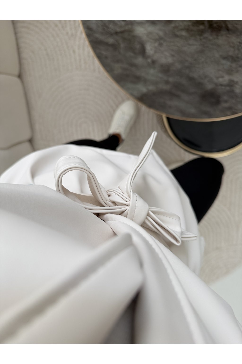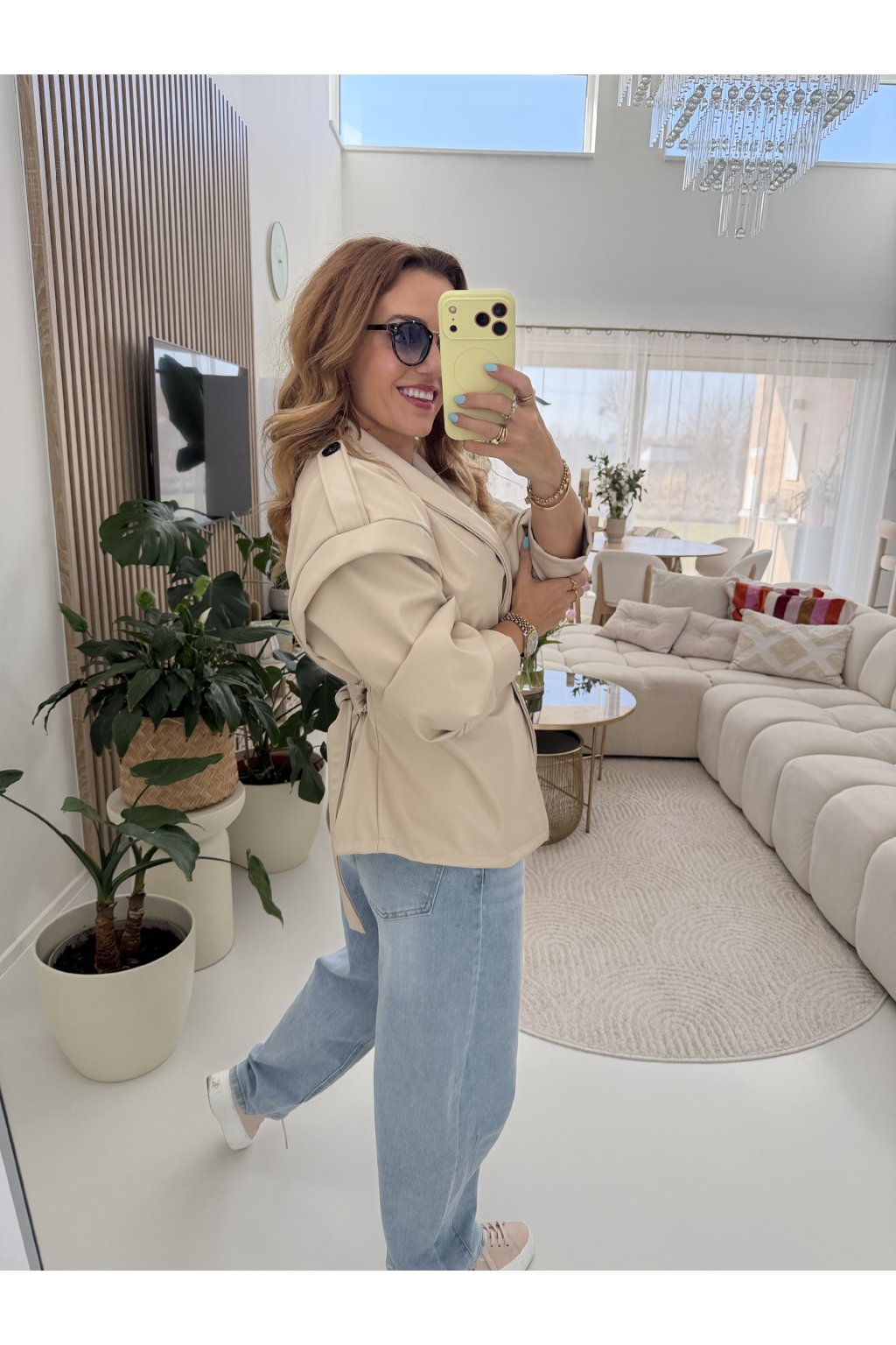 Stylová bunda SOFT CHIC JACKET z měkké, příjemné eko kůže, která si tě získá na první dotek .Trendy nabírané rukávy dodávají outfitu moderní výraz a zavazování v pase krásně vytvaruje siluetu.