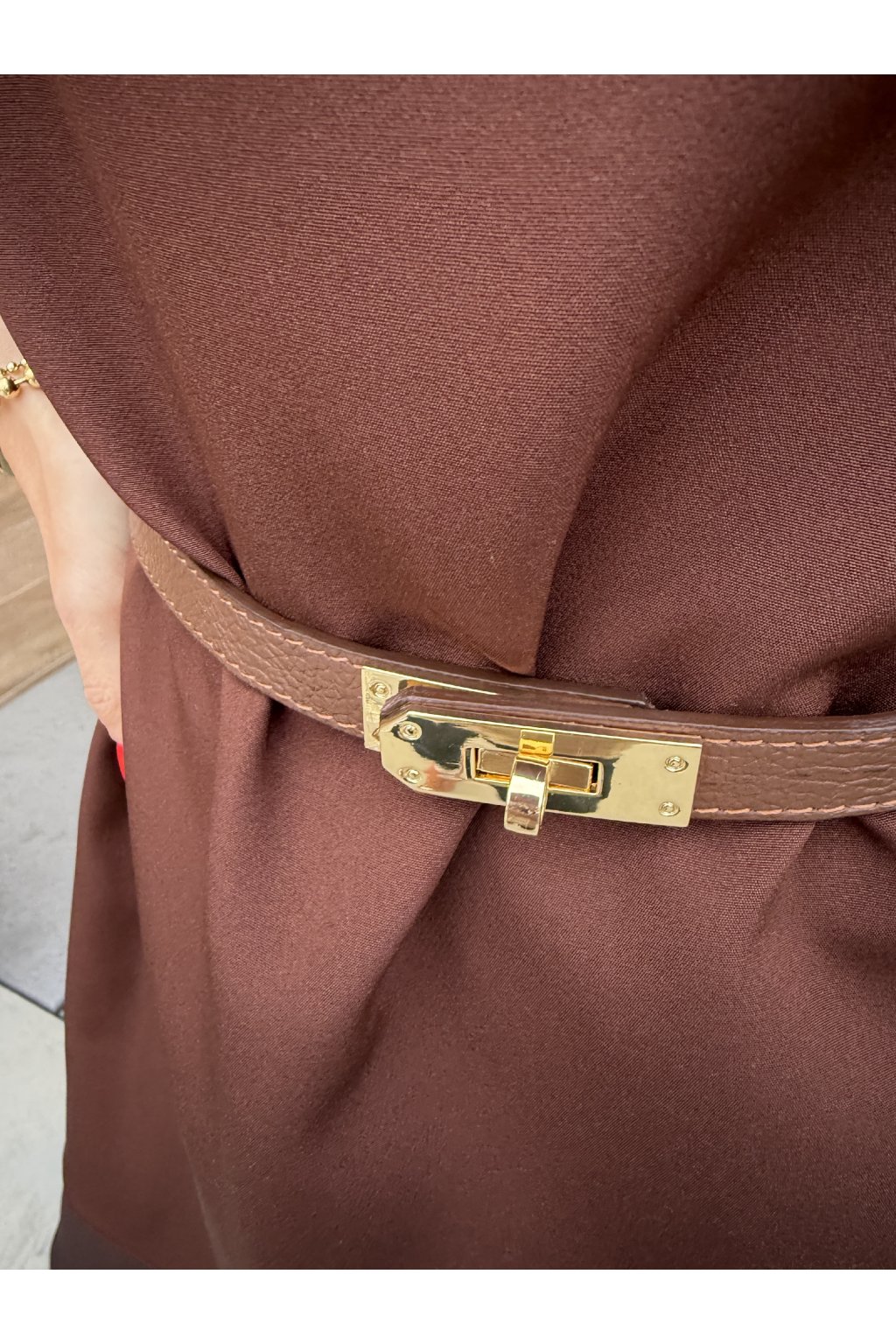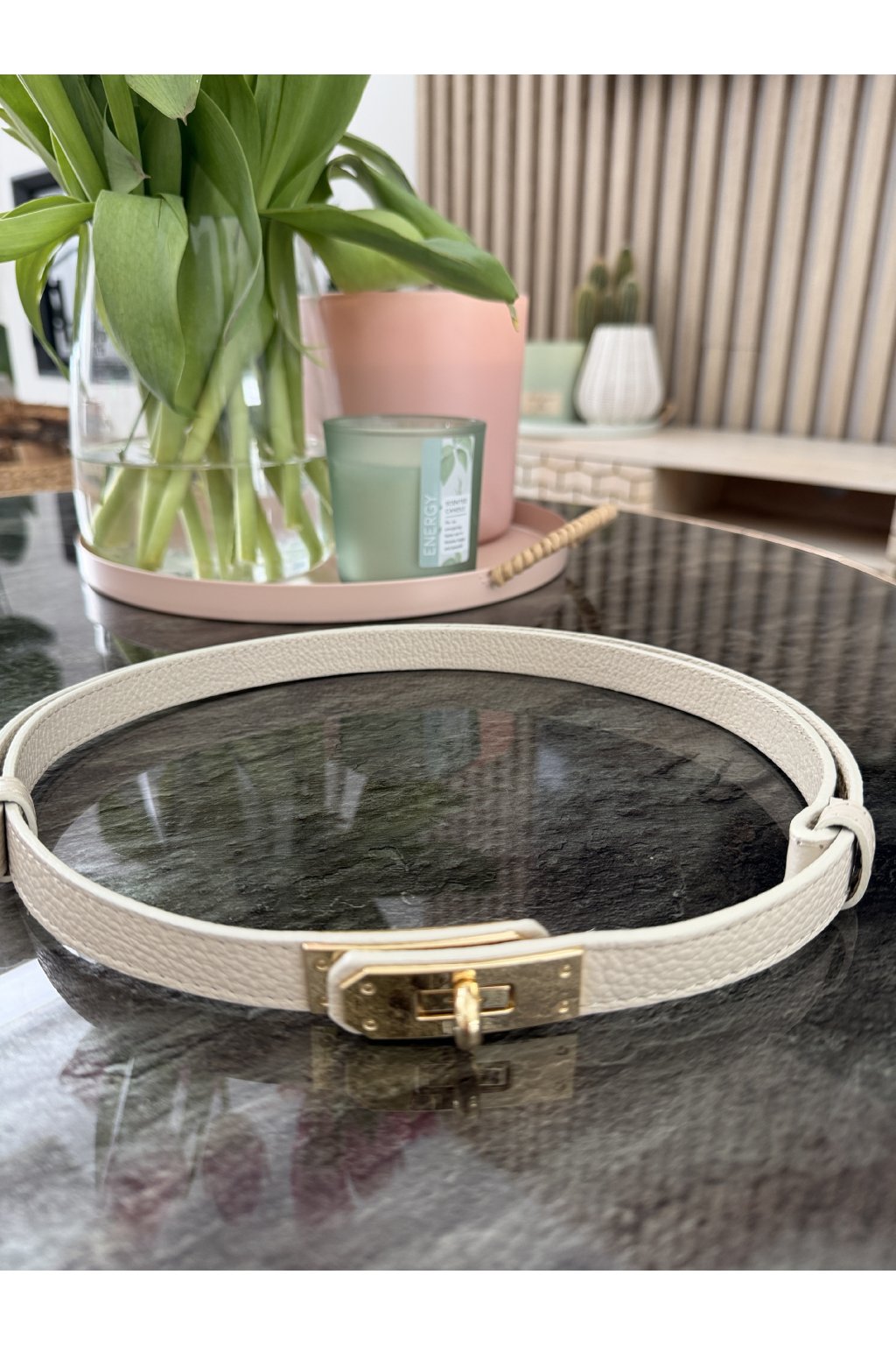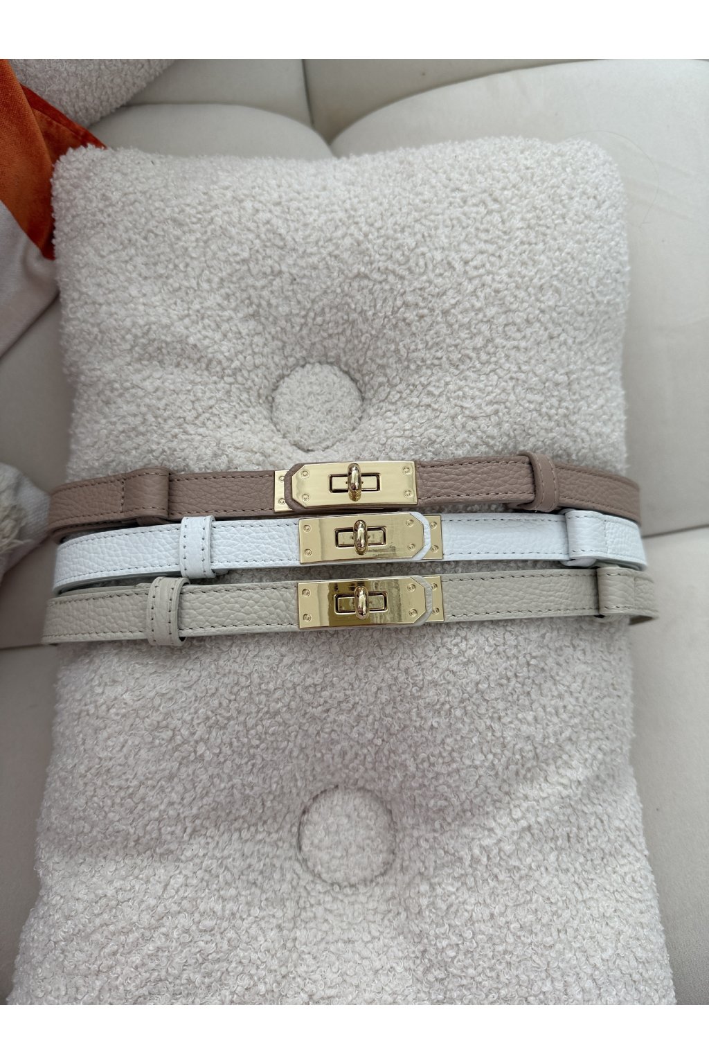 Stylový pásek s výraznou zlatou sponou, který skvěle doplní šaty, kalhoty i saka. Díky nastavitelné délce perfektně sedí každé postavě. K dispozici ve dvou nadčasových barvách – pro snadné kombinování s každým outfitem.