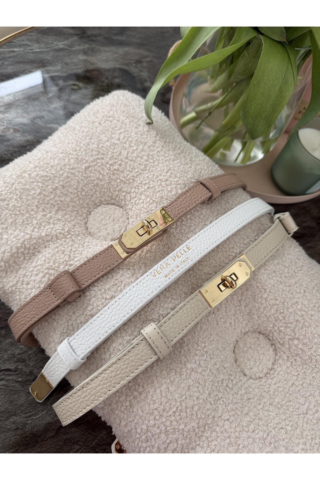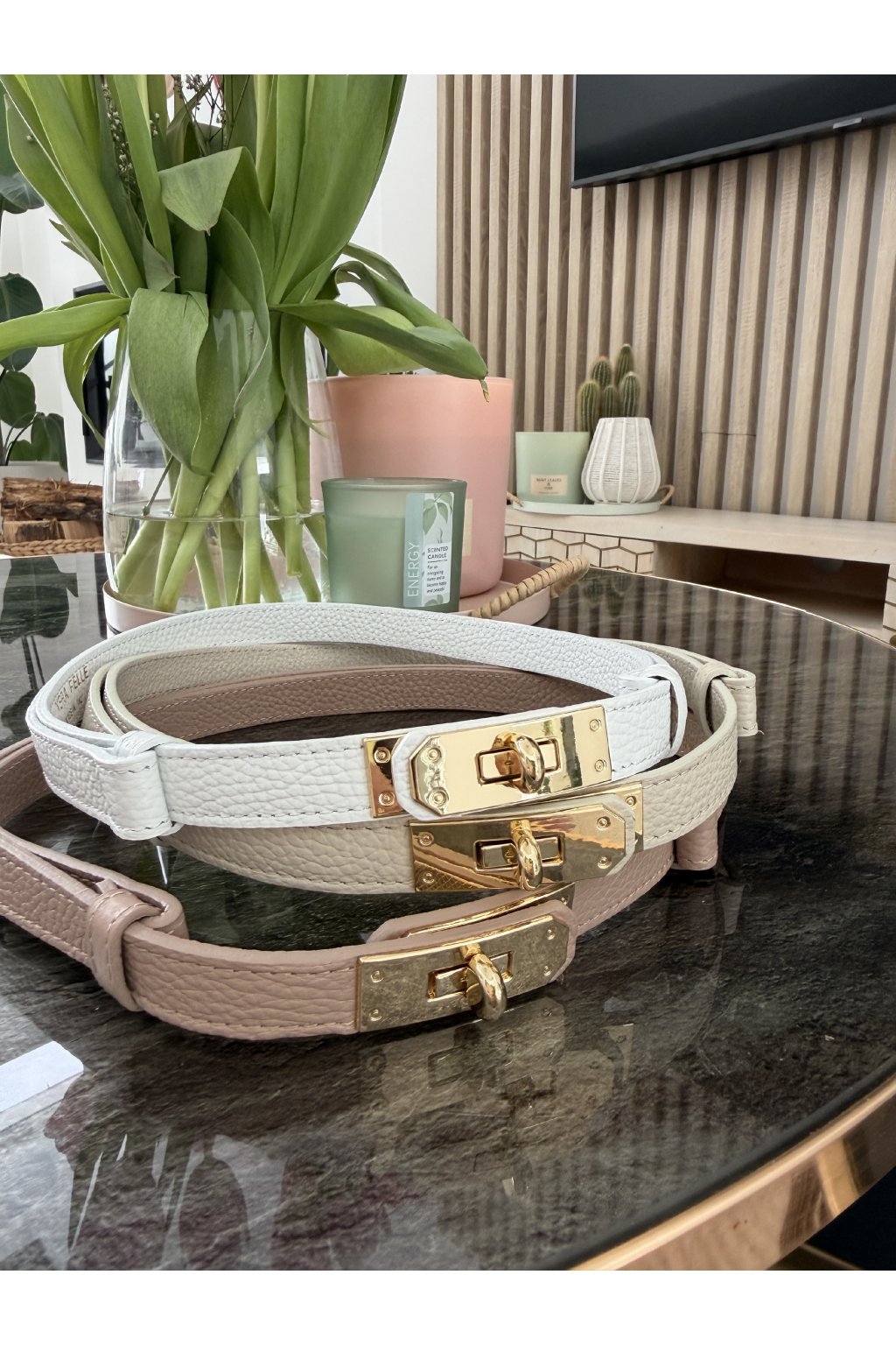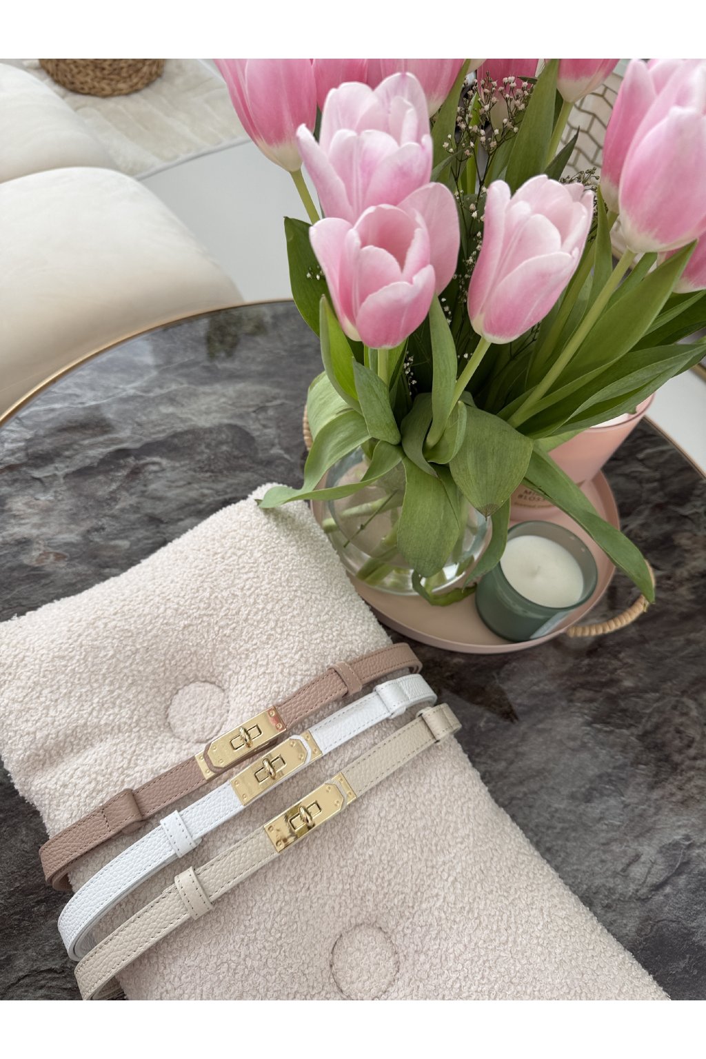 Stylový pásek s výraznou zlatou sponou, který skvěle doplní šaty, kalhoty i saka. Díky nastavitelné délce perfektně sedí každé postavě. K dispozici ve dvou nadčasových barvách – pro snadné kombinování s každým outfitem.