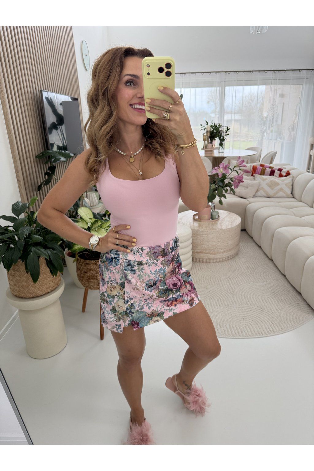 Romantická kraťasová sukně, BLOOM SKORT, která spojuje ženskost i pohodlí v jednom. Na první pohled sukně, uvnitř skryté kraťasy, ideální pro volnost pohybu bez kompromisů.