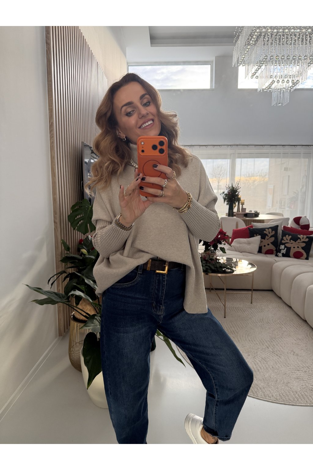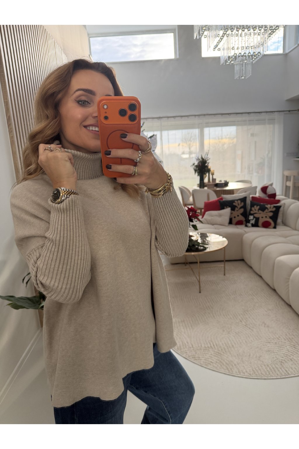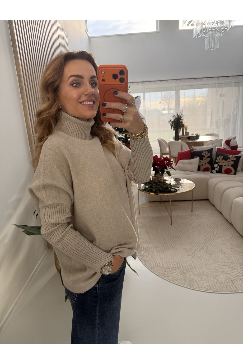 Elegantní rolák MERRY z kvalitního, příjemně měkkého materiálu, který krásně drží tvar a pohodlně se nosí po celý den. Kombinace hladkého těla a jemně žebrovaných rukávů s rolákem dodává modelu moderní a nadčasový vzhled. Volnější střih lichotí postavě.