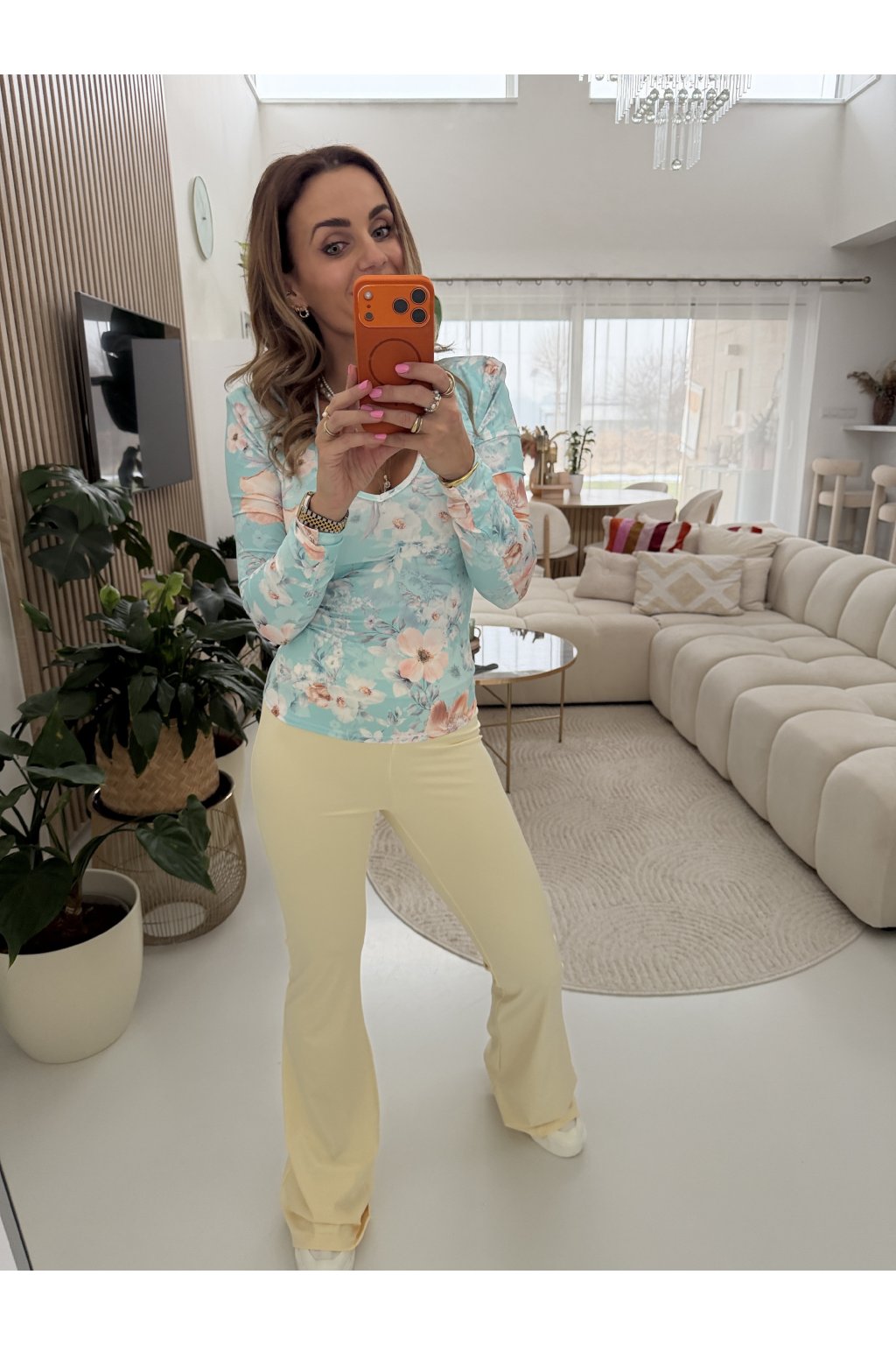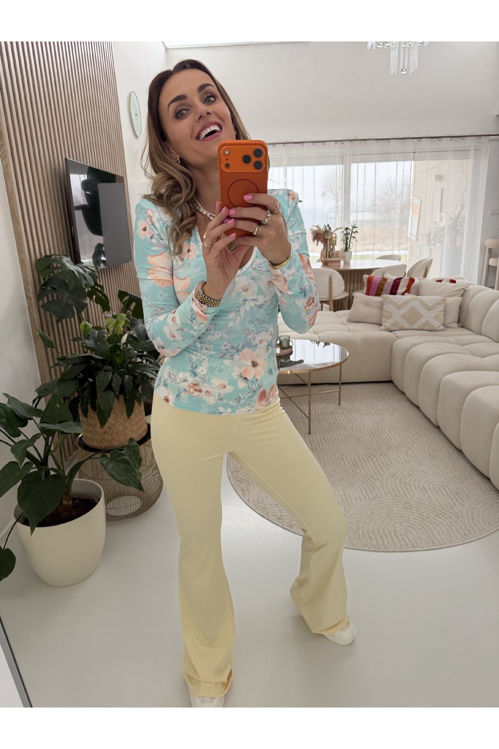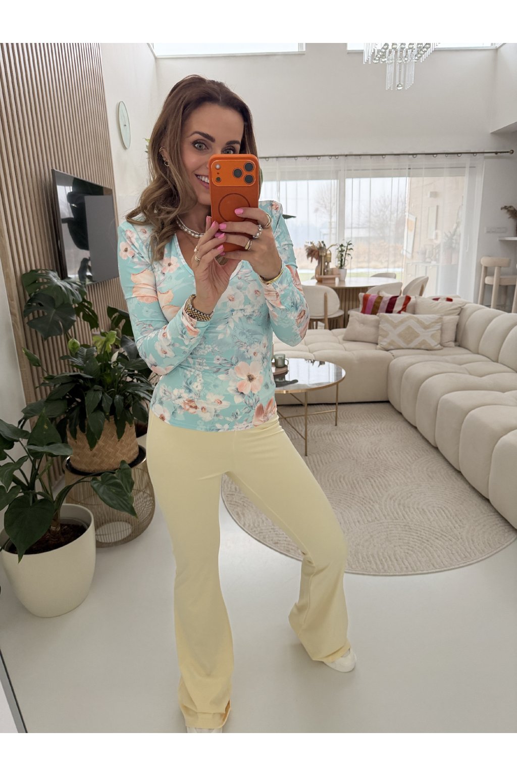 Stylové triko SPRING BLOOM TOP s výstřihem do véčka a jemným květovaným vzorem, který působí svěže a žensky. Ramenní vycpávky krásně zvýrazní siluetu a dodají moderní tvar. Nejužší část je přes ruce, díky čemuž triko hezky obepne postavu. Střih nejlépe sedí na velikost S. Ideální k elegantním kalhotám i ležérním kombinacím.