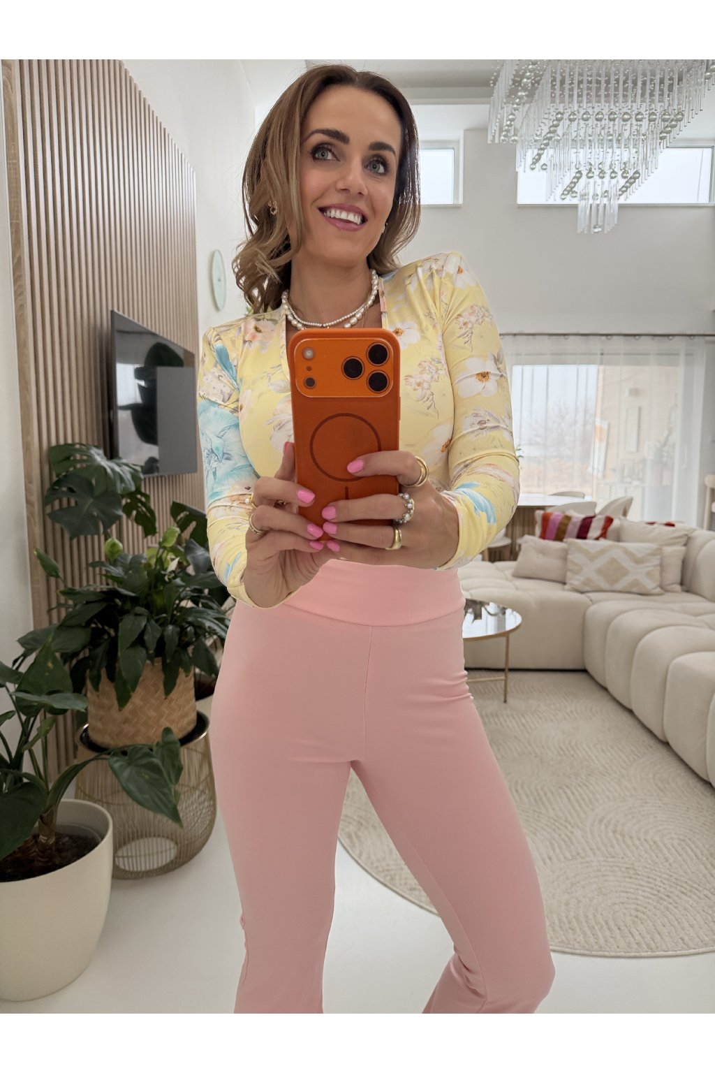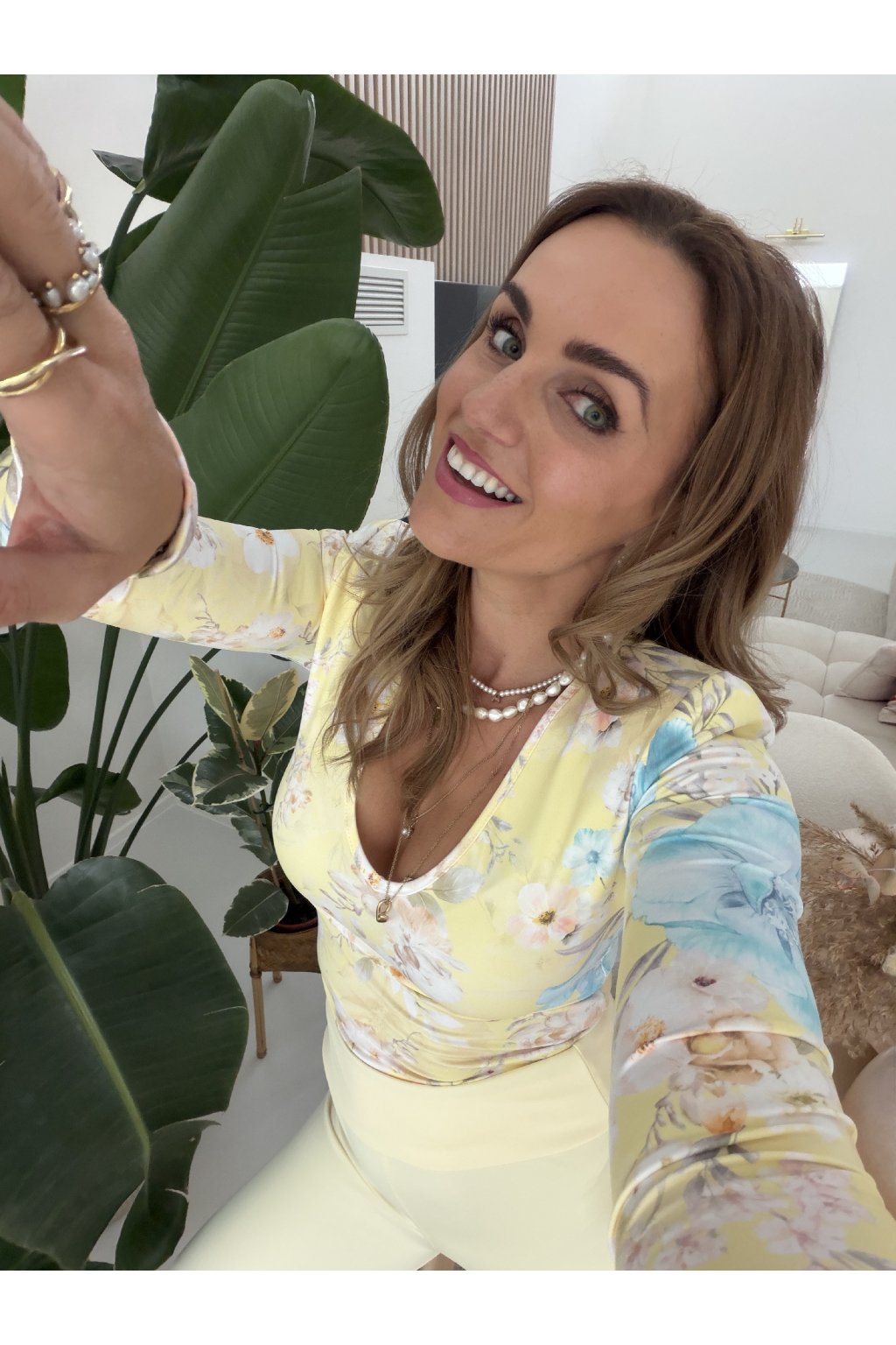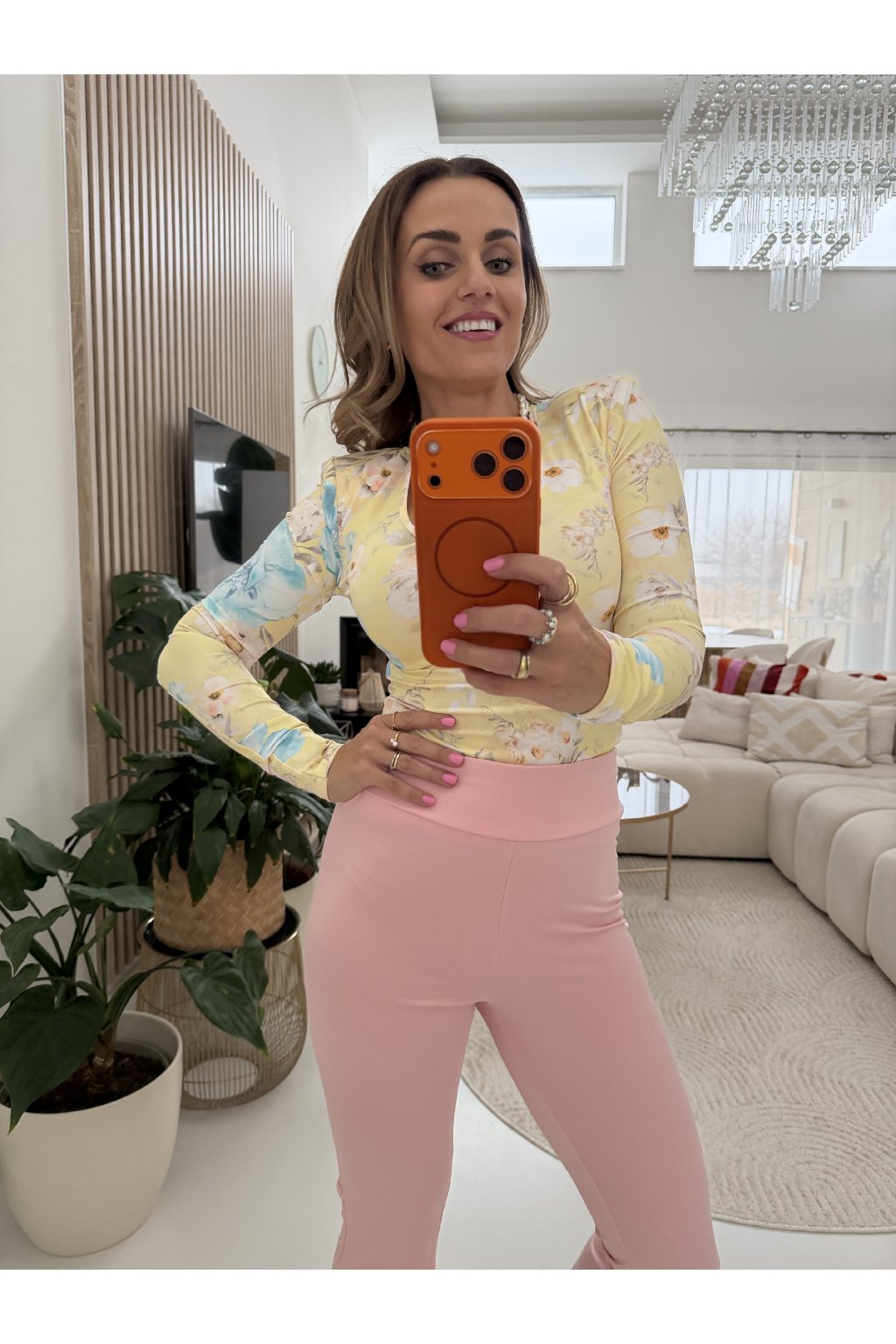 Stylové triko SPRING BLOOM TOP s výstřihem do véčka a jemným květovaným vzorem, který působí svěže a žensky. Ramenní vycpávky krásně zvýrazní siluetu a dodají moderní tvar. Nejužší část je přes ruce, díky čemuž triko hezky obepne postavu. Střih nejlépe sedí na velikost S. Ideální k elegantním kalhotám i ležérním kombinacím.