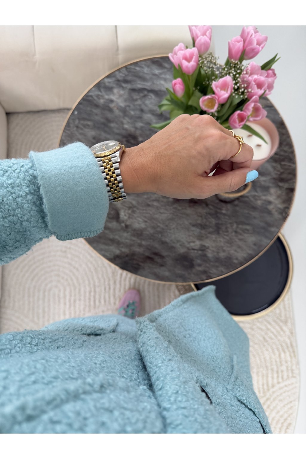 Nadčasový kabátek TEDDY s rovným střihem a elegantním dvouřadým zapínáním, který se skvěle kombinuje ke každodenním i elegantnějším outfitům. Vyrobený z kvalitního materiálu, který se nežmolkuje a drží tvar. Díky promyšlenému střihu sedí od velikosti S až po menší L. Dostupný v trendy jarních barvách, které rozzáří každý šatník. Můžeš nakombinovat s elegantními kalhotami, ale já nejčastěji volím k riflím. Pro představu měřím 163cm a vážím 59kg.