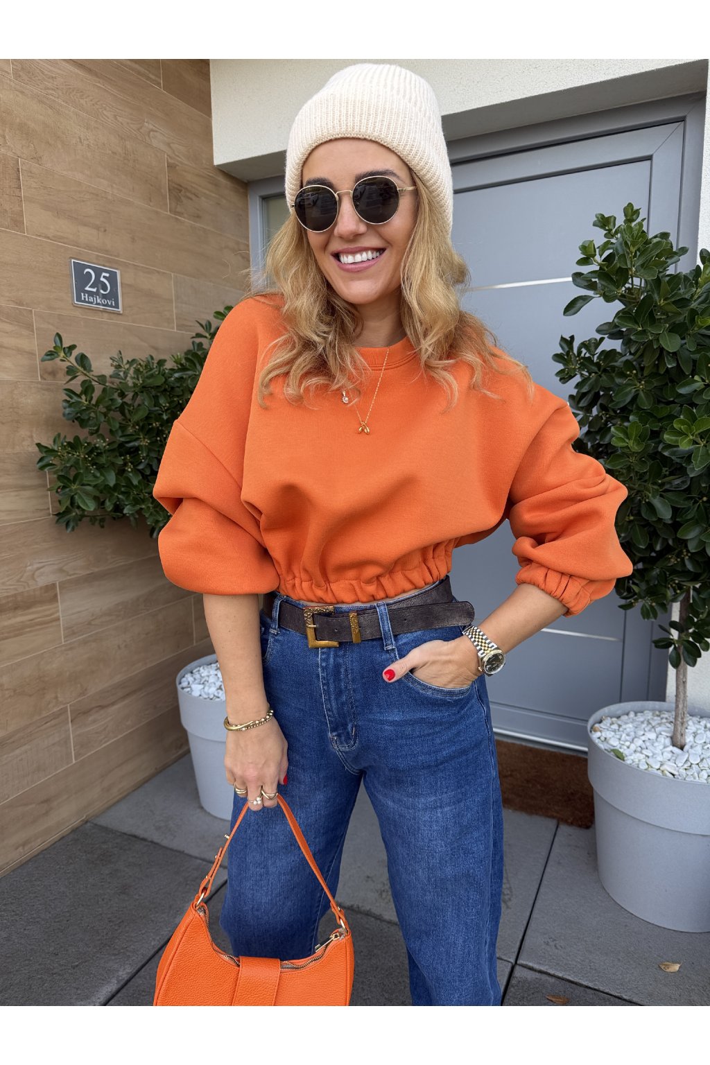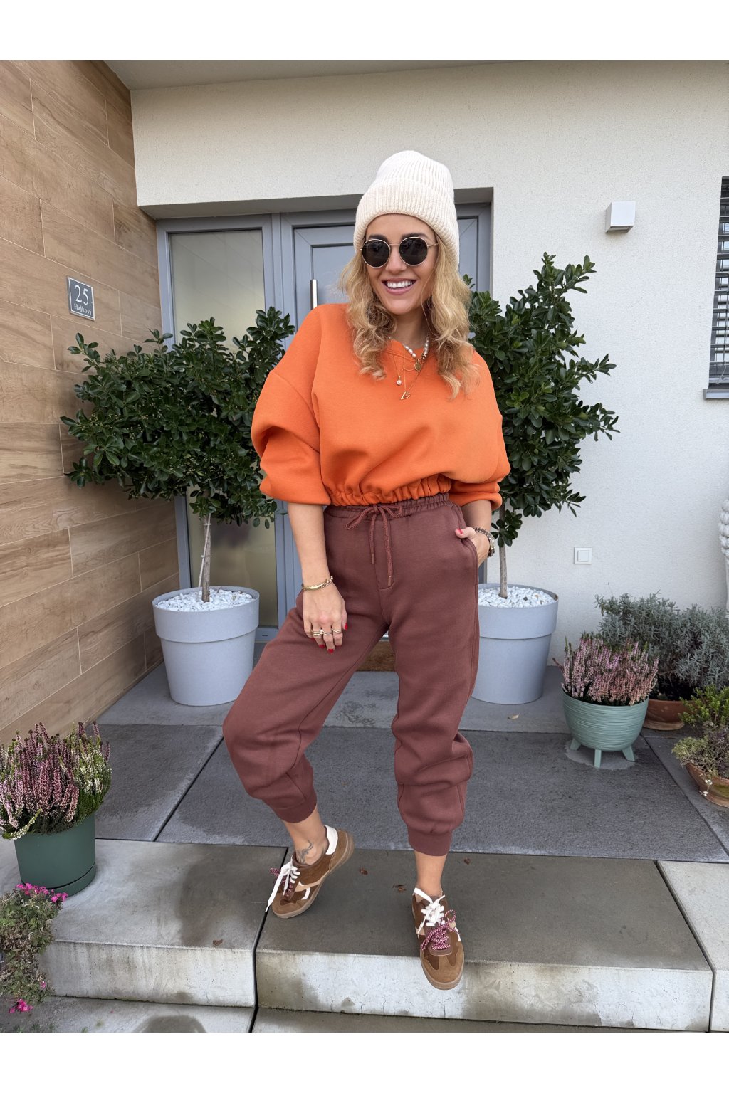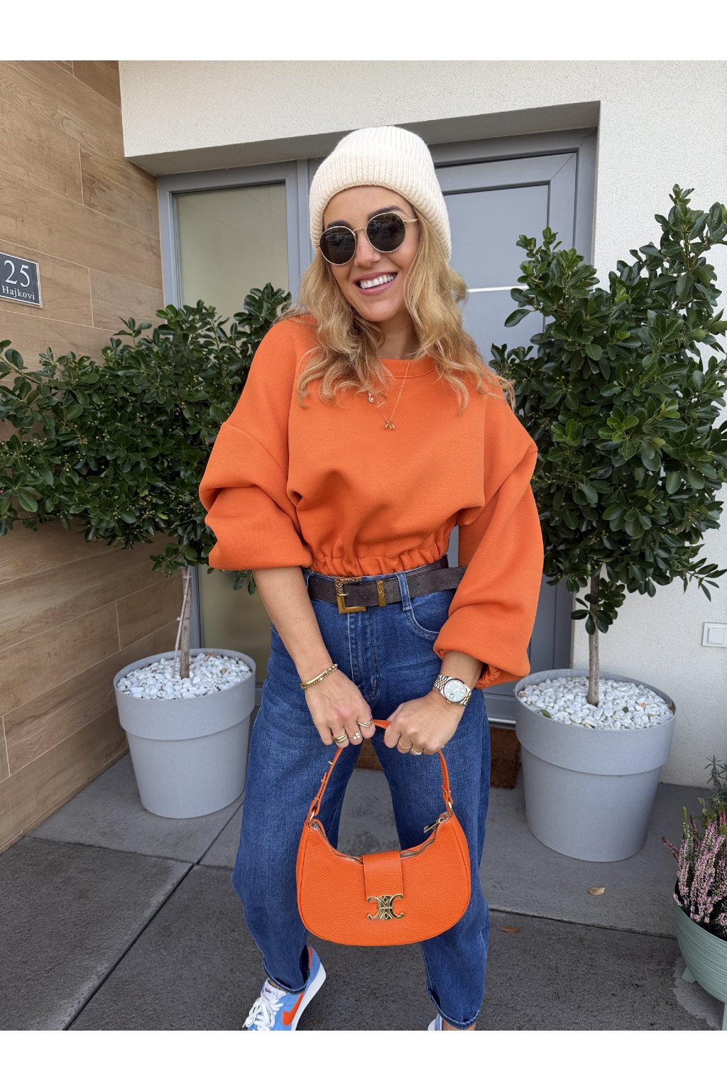 Stylová mikina PUMKIN v nádherné výrazné oranžové barvě, která rozzáří každý outfit. Ušitá z materiálu s vysokou gramáží, díky které krásně drží tvar a působí luxusně. V pase má pružnou gumu, která zvýrazní siluetu a perfektně sedí. Skvěle se kombinuje nejen s džíny, ale také s našimi tepláky ve stejné barvě pro dokonale sladěný set.