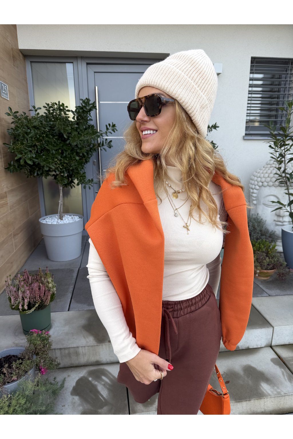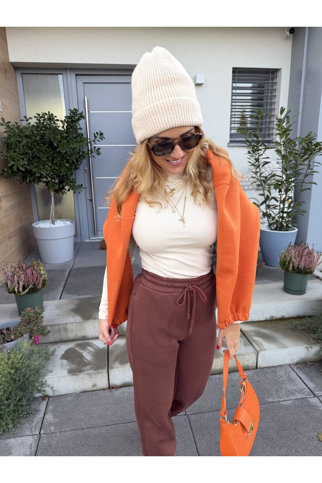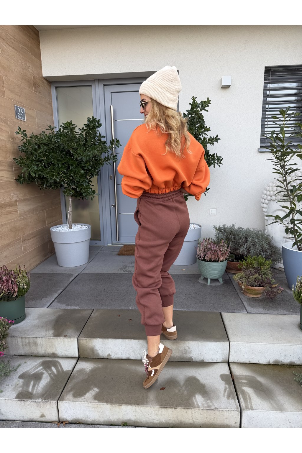 Stylová mikina PUMKIN v nádherné výrazné oranžové barvě, která rozzáří každý outfit. Ušitá z materiálu s vysokou gramáží, díky které krásně drží tvar a působí luxusně. V pase má pružnou gumu, která zvýrazní siluetu a perfektně sedí. Skvěle se kombinuje nejen s džíny, ale také s našimi tepláky ve stejné barvě pro dokonale sladěný set.