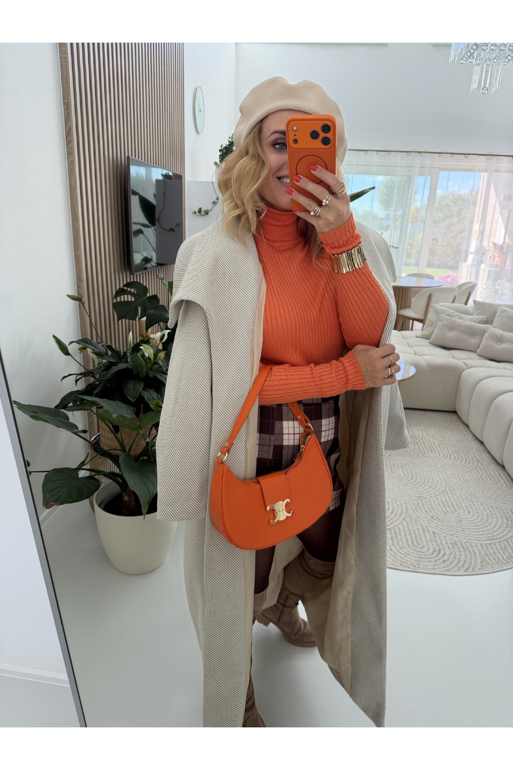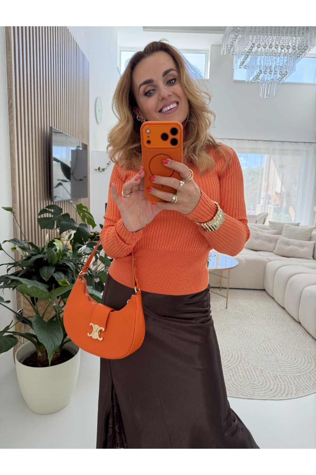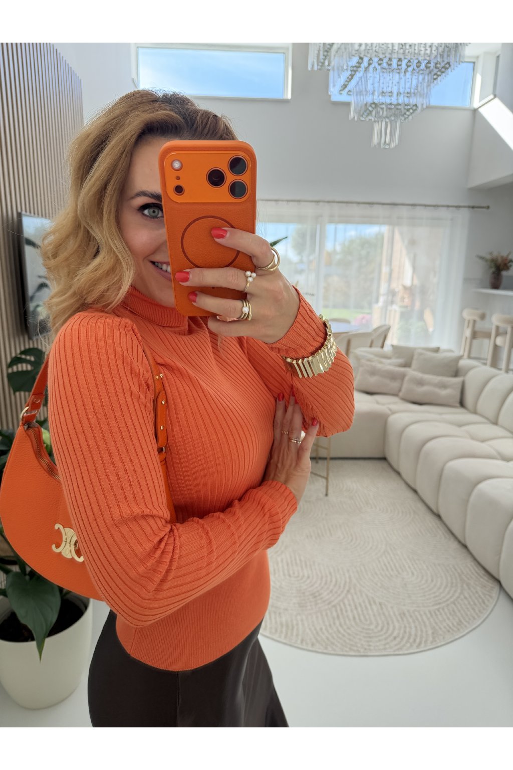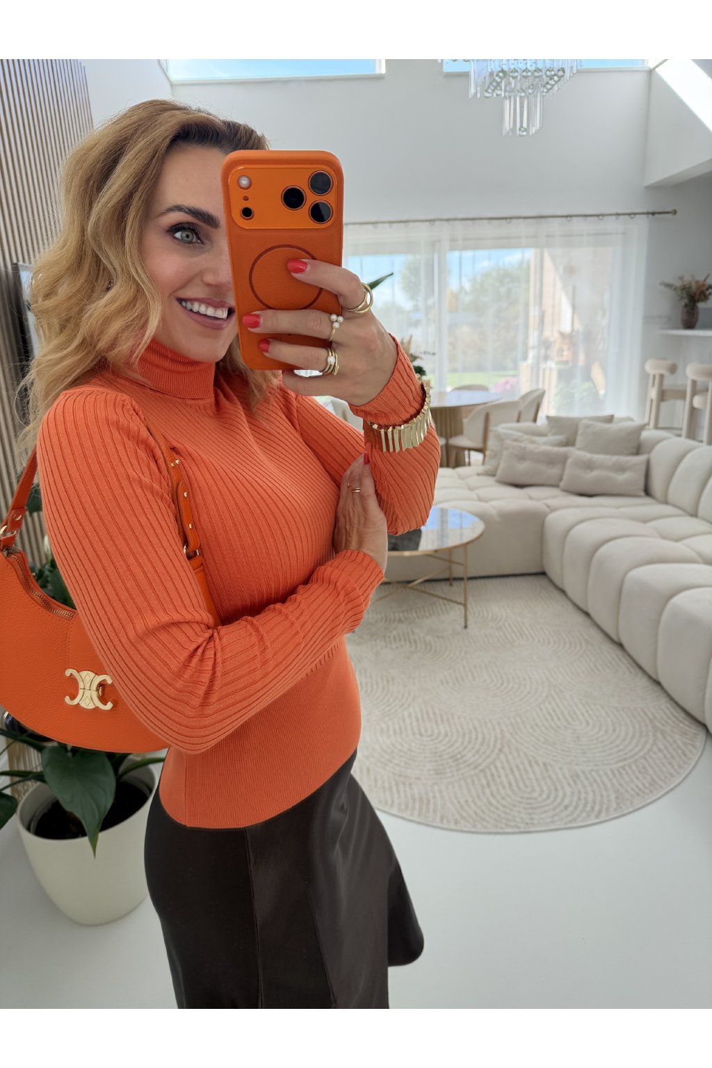 🧡 Rolák v sytě oranžové barvě – výrazný a stylový kousek, který krásně oživí každý outfit! Má pevnější lem kolem krku, který drží tvar a zároveň je příjemný na nošení. Skvěle sedí na postavě a dodá outfitu elegantní šmrnc. Sedne na S a M.