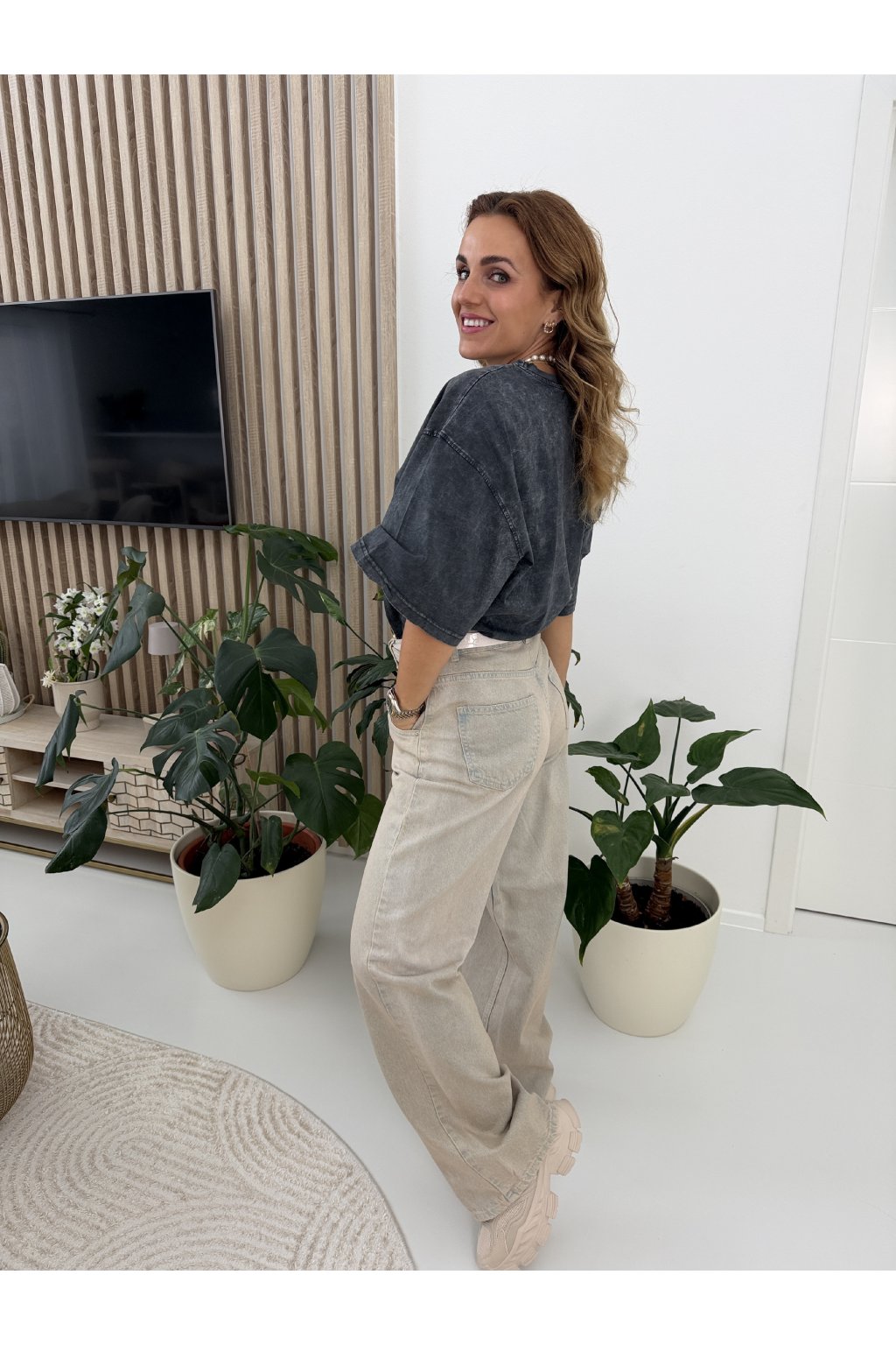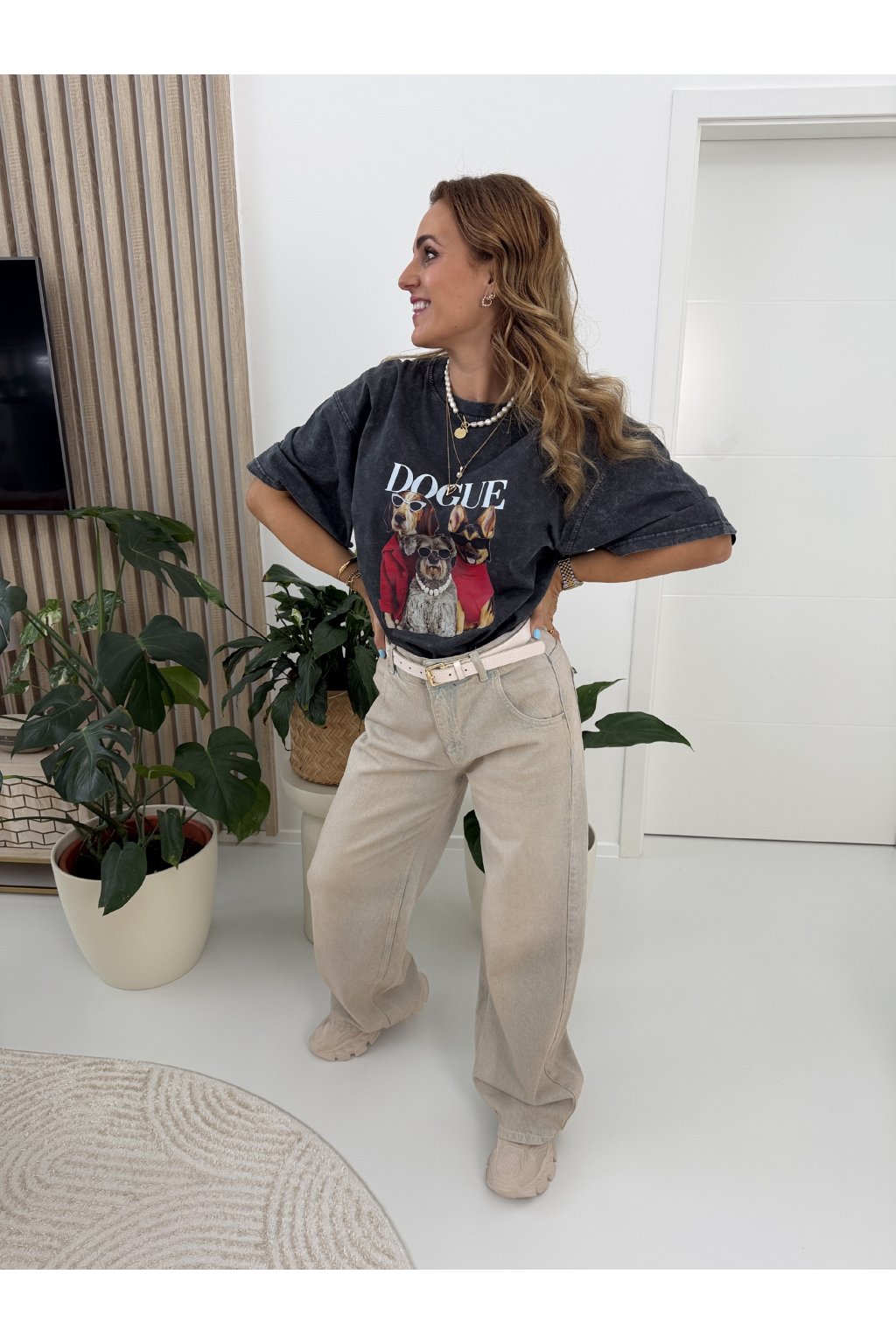 Stylové oversize tričko s trendy sepraným efektem a originálním potiskem „VOGUE“ s ikonickými pejsky je kousek, který okamžitě zaujme. Měkký, příjemný bavlněný materiál zajišťuje maximální pohodlí a volný střih se spadlými rameny dodává moderní, ležérní vibe.