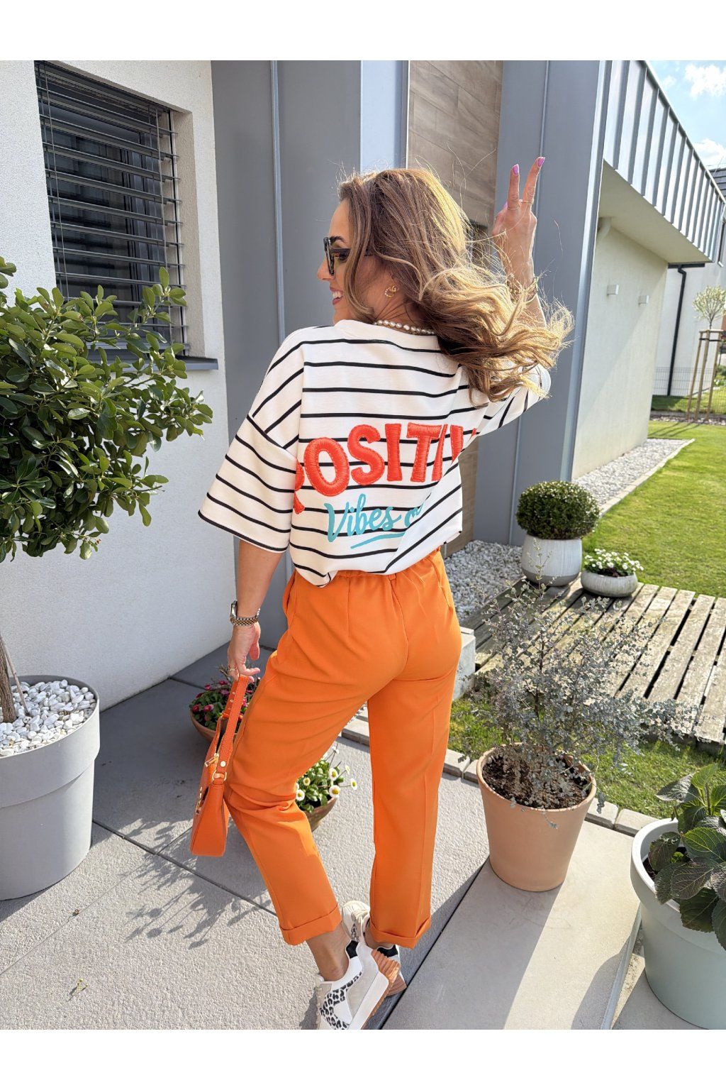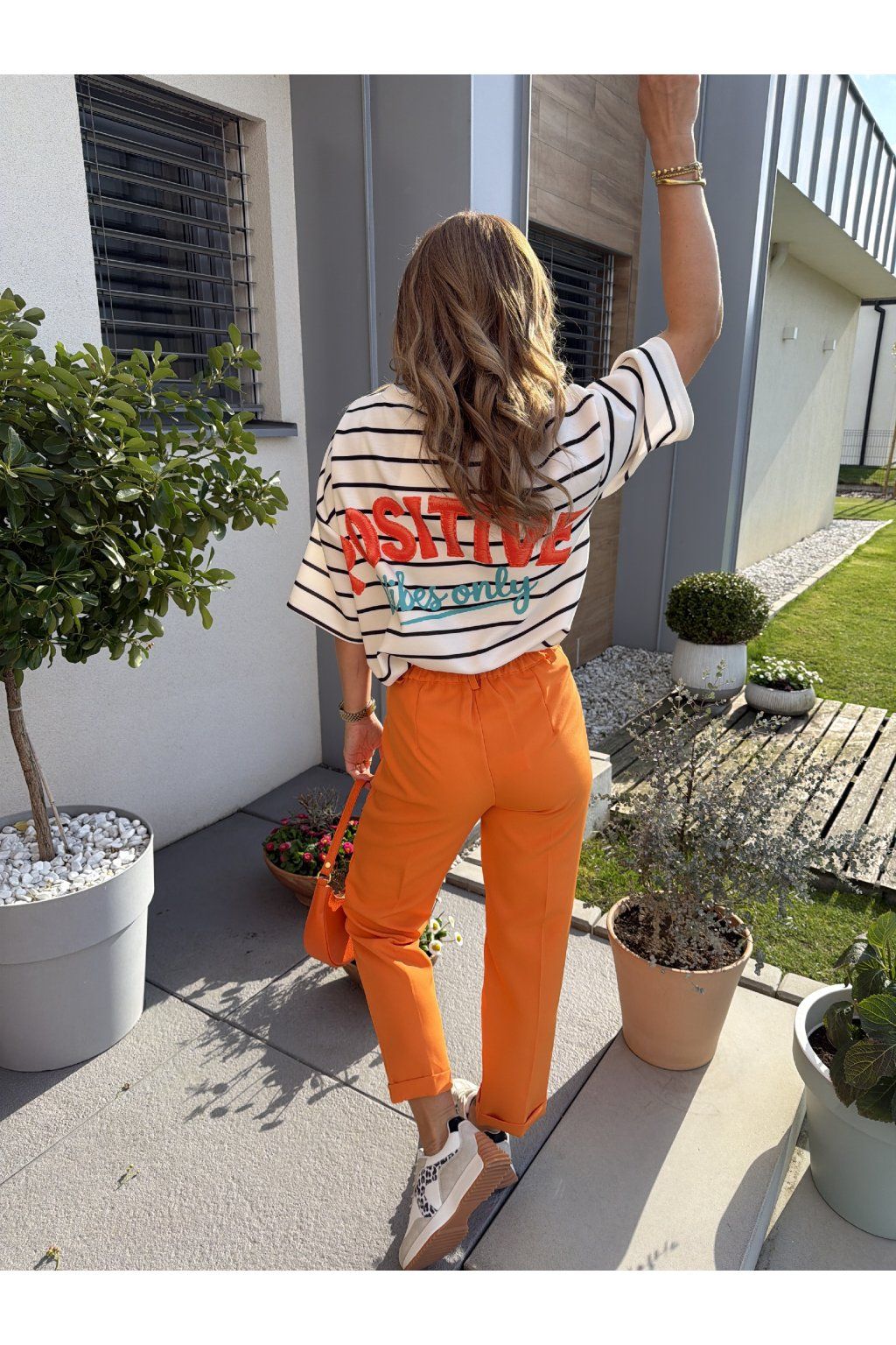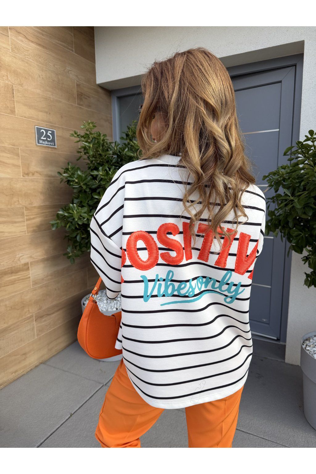 Stylové pruhované tričko POSITIVE VIBES z kvalitního, vyšší gramáže drží tvar a působí luxusněji než klasické basic kousky. Proužky jsou nadčasový trend, který se skvěle kombinuje a nikdy nevyjde z módy. Na zádech zaujme výrazný nápis „Positive vibes only“, který dodá outfitu hravost a dobrou energii. Ideální na každý den, když chceš vypadat stylově a cítit se skvěle. Sedne od velikosti S až do velikosti L. Pro představu měřím 163cm a vážím 59kg.