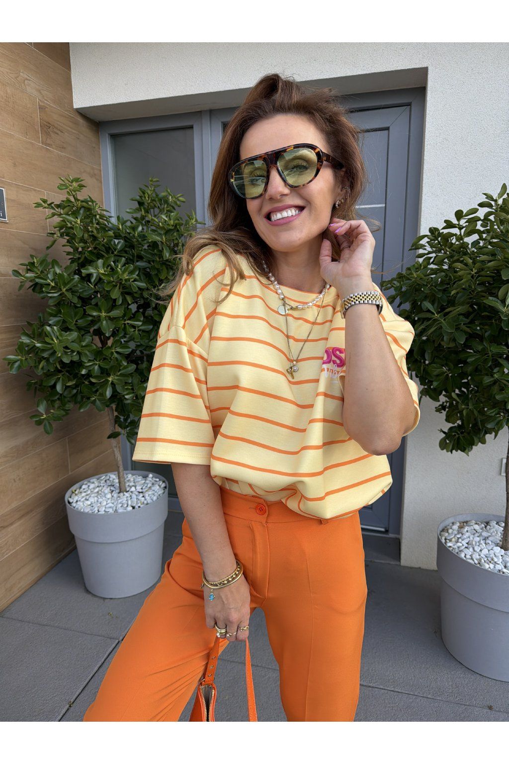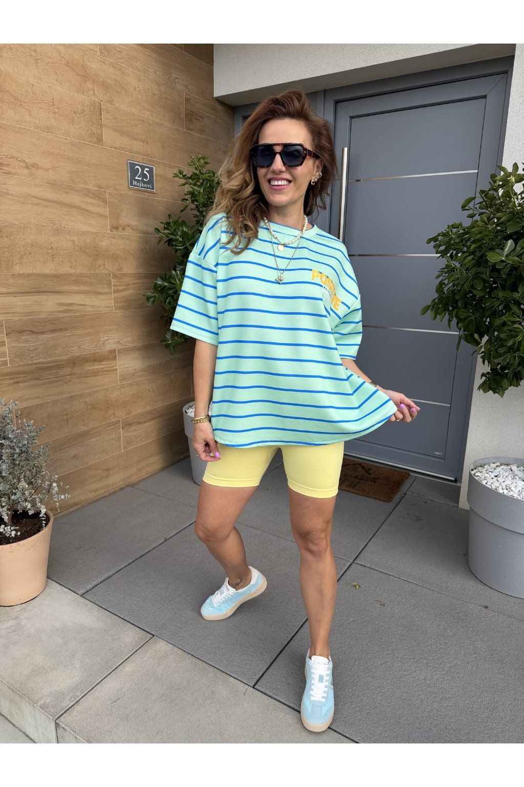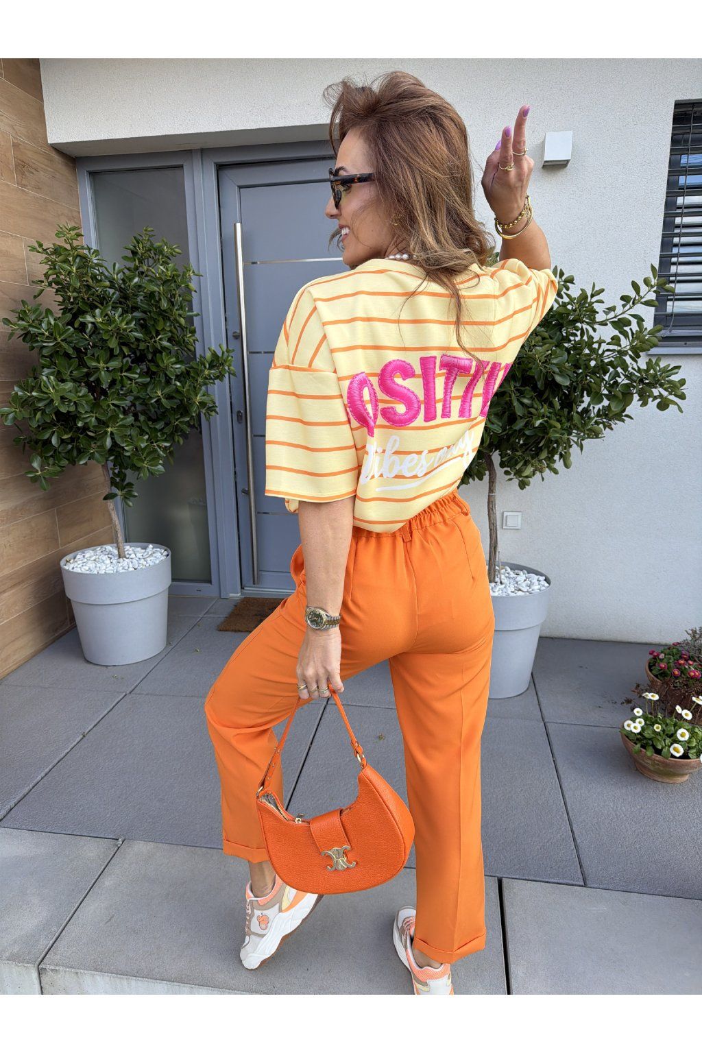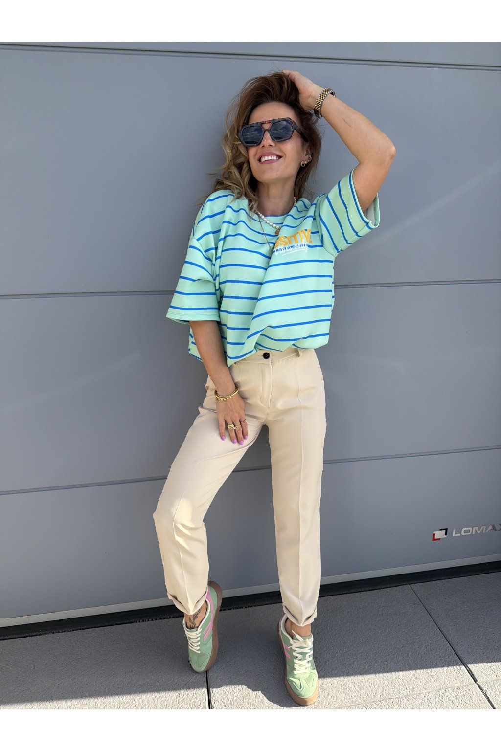 Stylové pruhované tričko POSITIVE VIBES z kvalitního, vyšší gramáže drží tvar a působí luxusněji než klasické basic kousky. Proužky jsou nadčasový trend, který se skvěle kombinuje a nikdy nevyjde z módy. Na zádech zaujme výrazný nápis „Positive vibes only“, který dodá outfitu hravost a dobrou energii. Ideální na každý den, když chceš vypadat stylově a cítit se skvěle. Sedne od velikosti S až do velikosti L. Pro představu měřím 163cm a vážím 59kg.