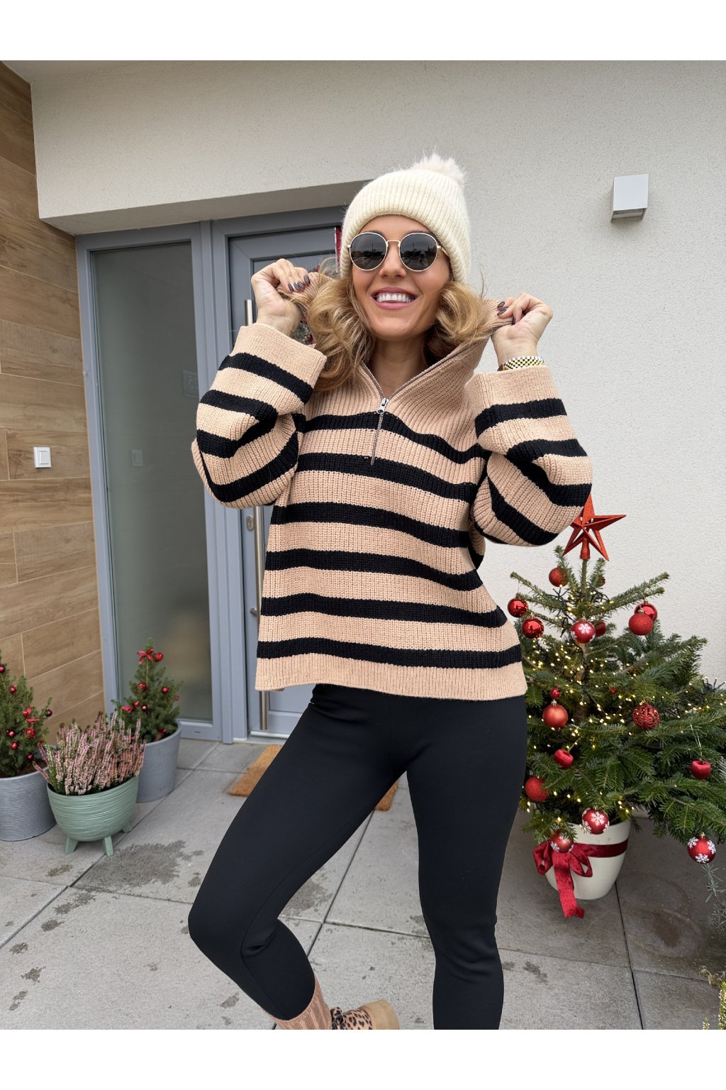 Pruhovaný svetr na zip FASHION CALL luxusní pletenina s vysokou gramáží.