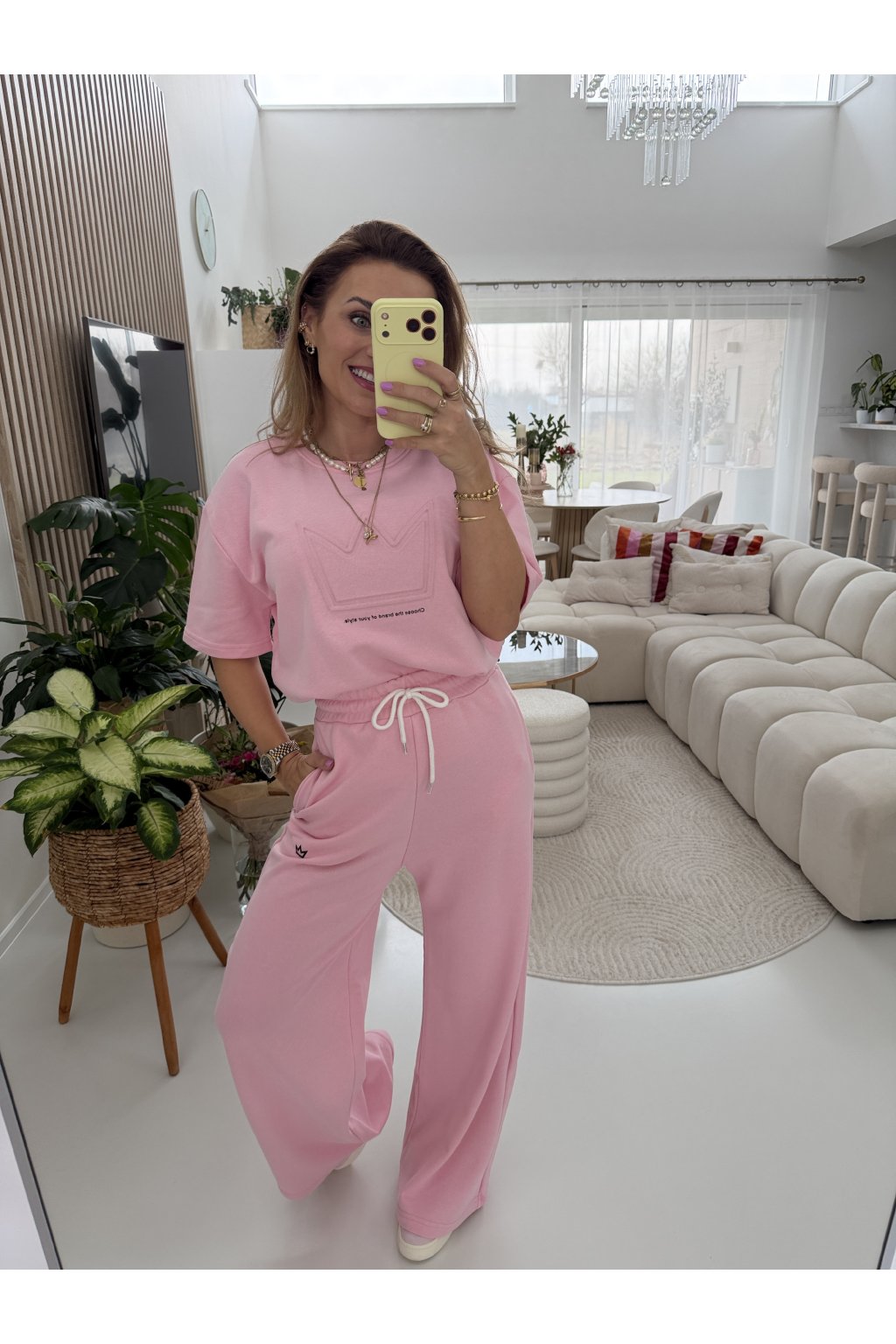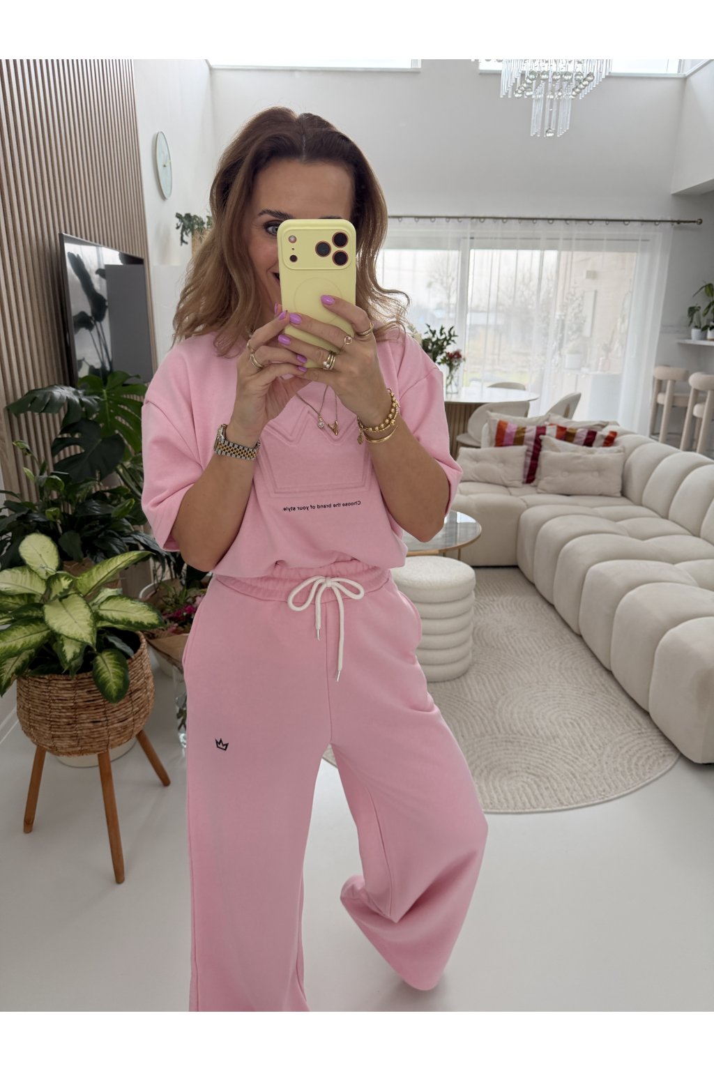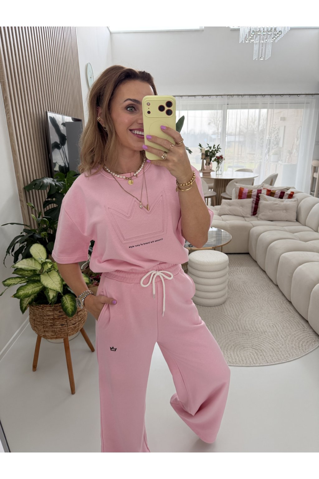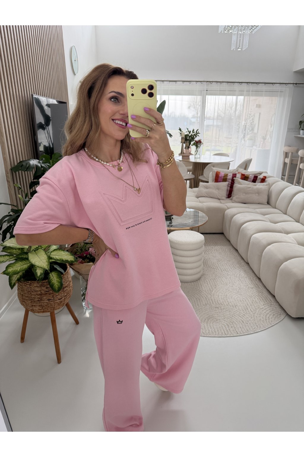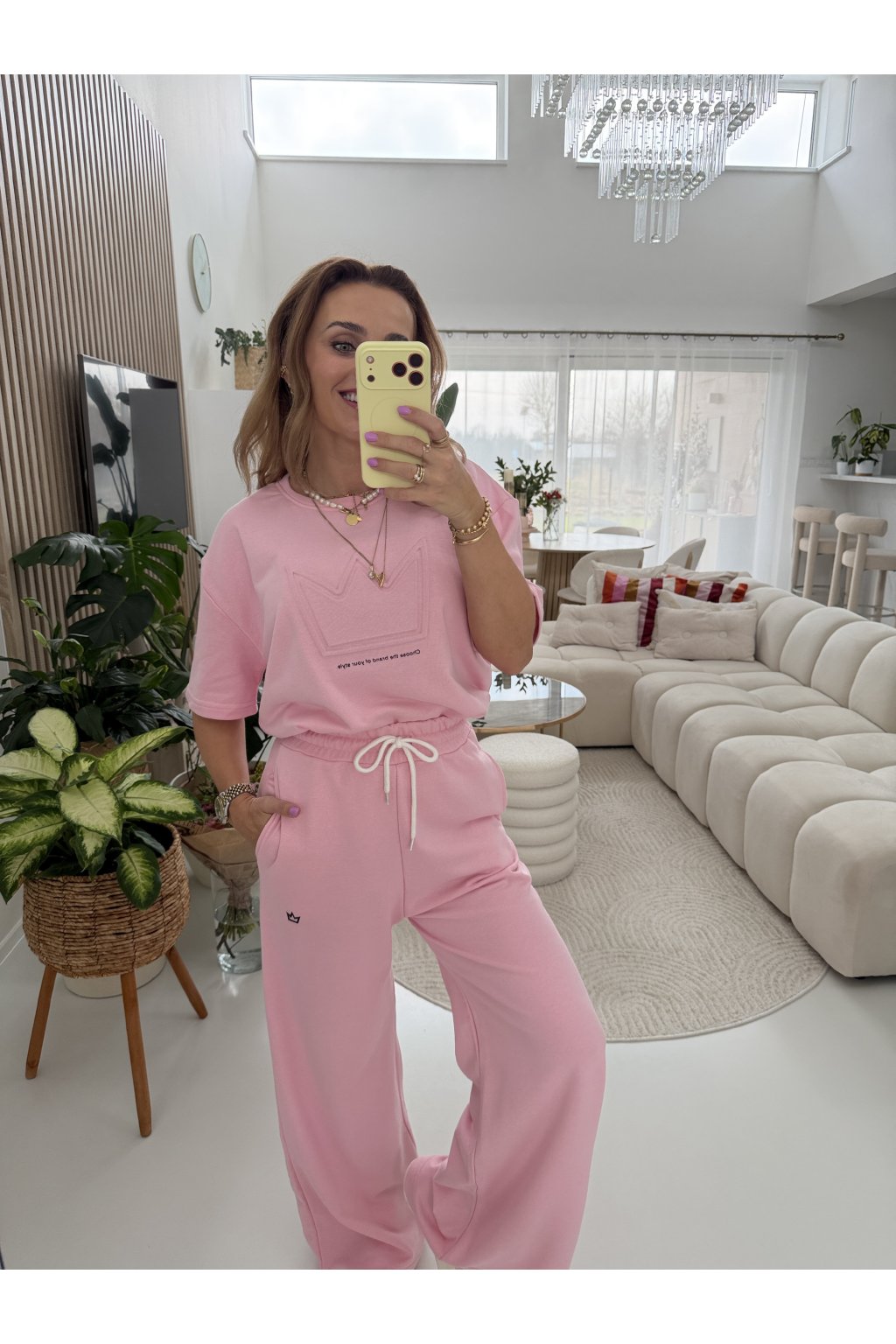 Komplet ROYAL je z vysokogramážní tkaniny. Triko má kratší přední část a delší zadní část. Vypadá to dobře i zakasané do kalhot. Tepláky mají širokou gumu v pase a jsou rovně střižené. Komplet sedne nejlépe na S a M. Pro představu měřím 163cm a vážím 62kg.