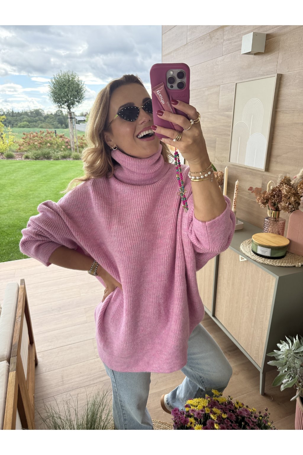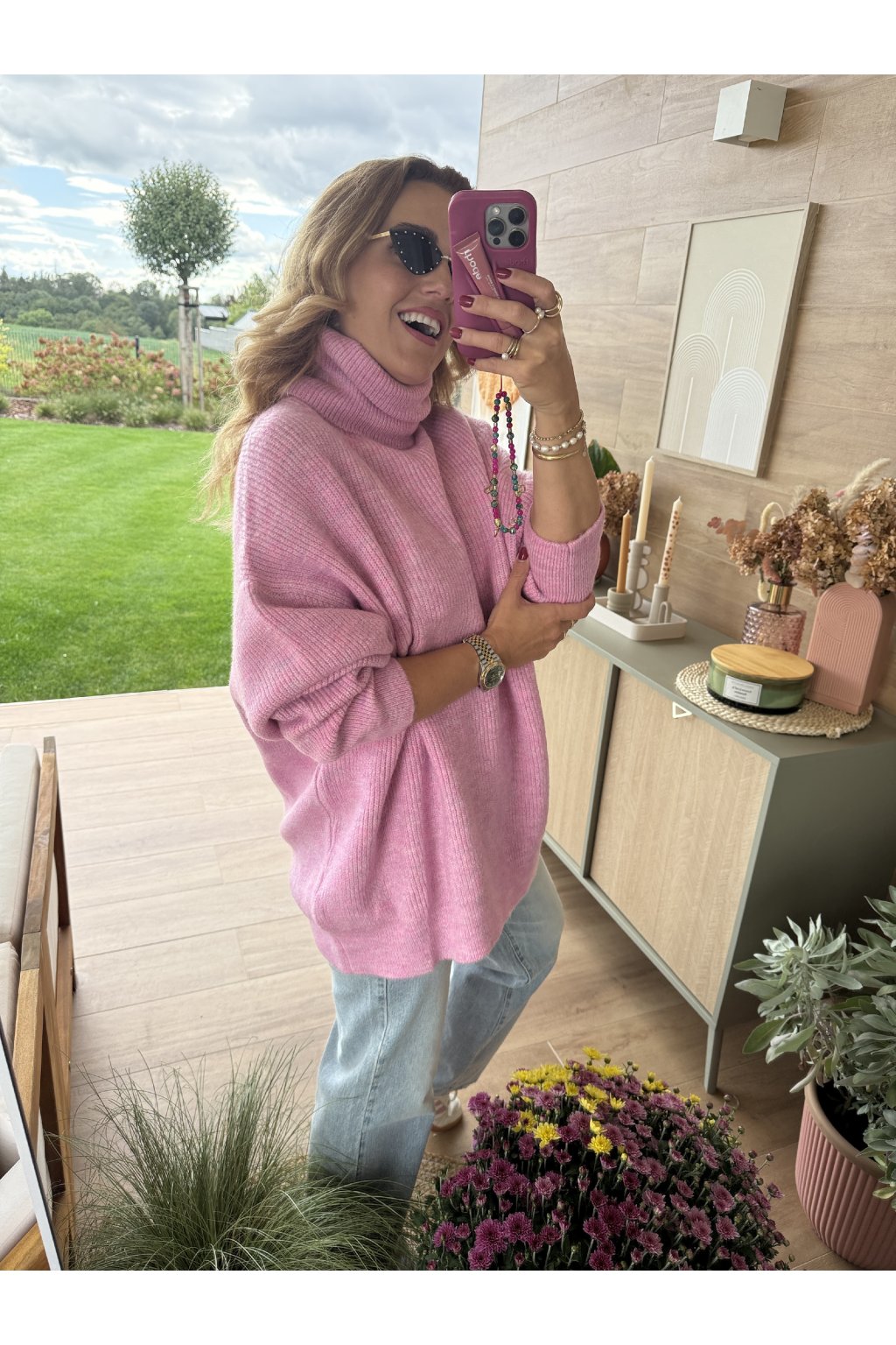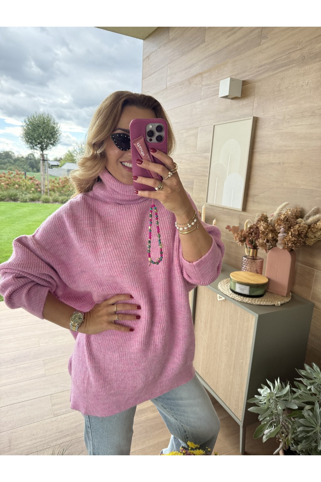Zamilujte se do ležérní elegance! Tento měkoučký oversize svetr s rolákem je ideální volbou pro chladné dny – zahřeje, ale přitom vypadá stylově. Snadno ho zkombinujete s džínami, legínami i elegantními kalhotami. Sedne od S až do menší velikosti XL.