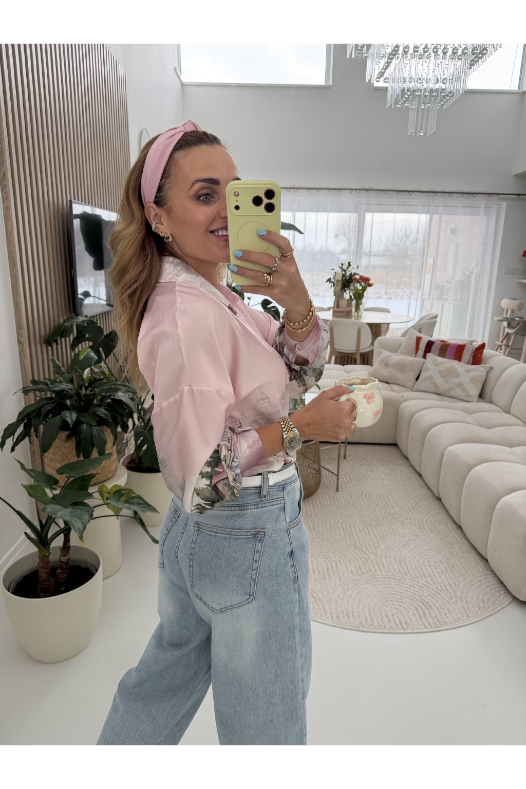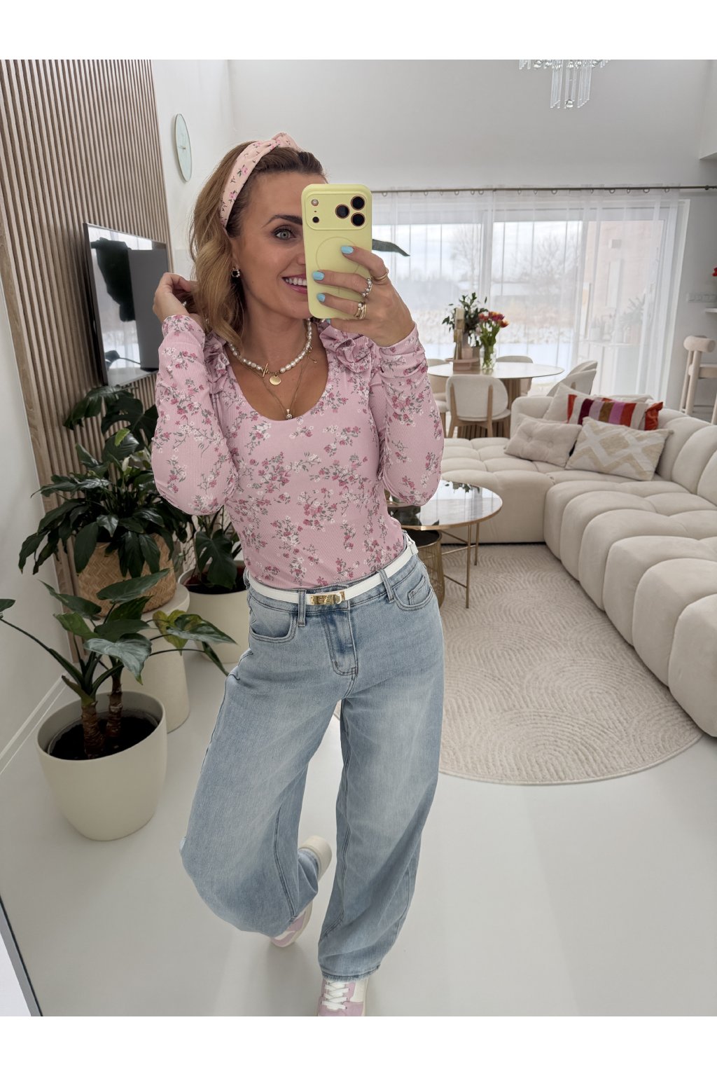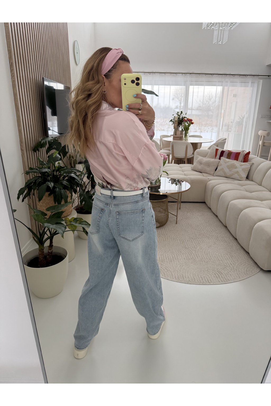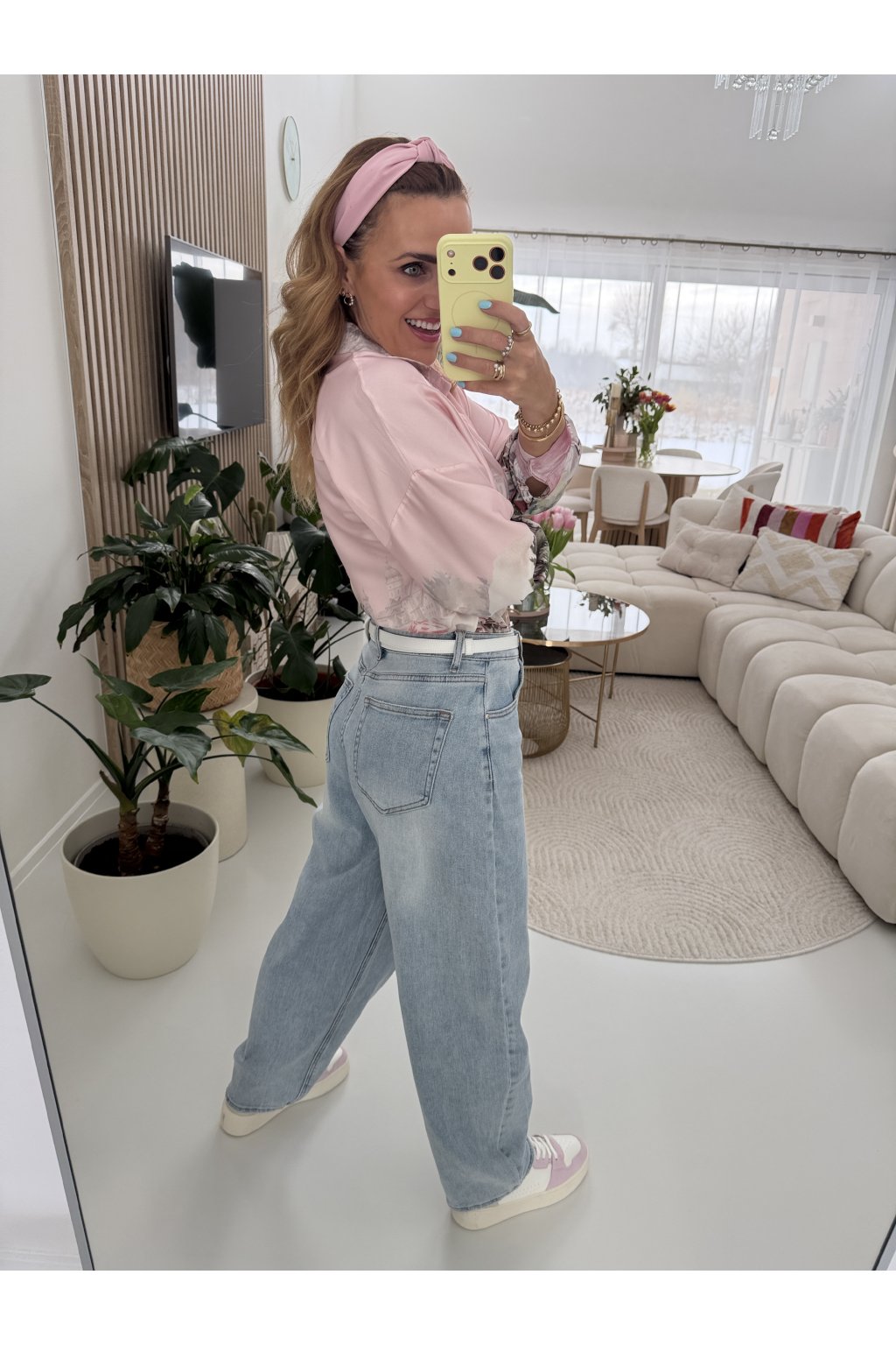 Světle modré džíny MILAS v jemném jarním odstínu denimu, který krásně rozsvítí každý outfit. Ležérní, rovnější střih s vyšším pasem lichotí postavě, opticky prodlouží nohy a zvýrazní pas. Skvěle sedí ženám s užším i výraznějším pasem, sluší štíhlé i ženským křivkám, protože přirozeně vyváží proporce. Na zadní části je doplňuje bílo růžová visačka, která jim dodává něžný a hravý detail. Ideální kousek na jaro k teniskám, balerínám i sandálům. Pro představu měřím 163cm a vážím 59kg. Na sobě mám velikost S.