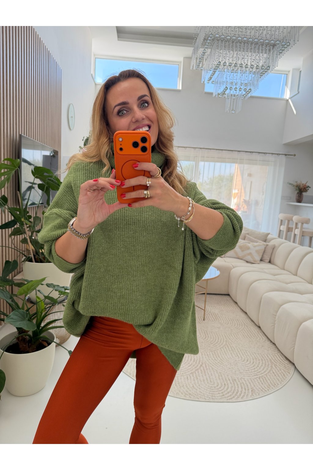 Zamilujte se do ležérní elegance! Tento měkoučký oversize svetr s rolákem je ideální volbou pro chladné dny – zahřeje, ale přitom vypadá stylově. Snadno ho zkombinujete s džínami, legínami i elegantními kalhotami. Sedne od S až do menší velikosti XL.