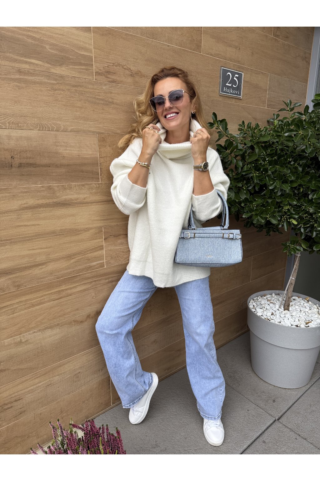 Zamilujte se do ležérní elegance! Tento měkoučký oversize svetr s rolákem je ideální volbou pro chladné dny – zahřeje, ale přitom vypadá stylově. Snadno ho zkombinujete s džínami, legínami i elegantními kalhotami. Sedne od S až do menší velikosti XL.