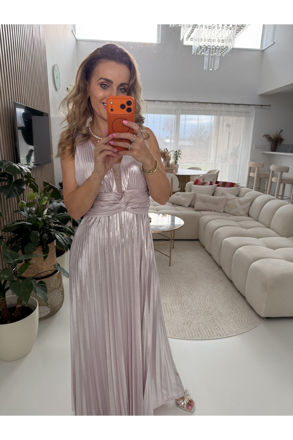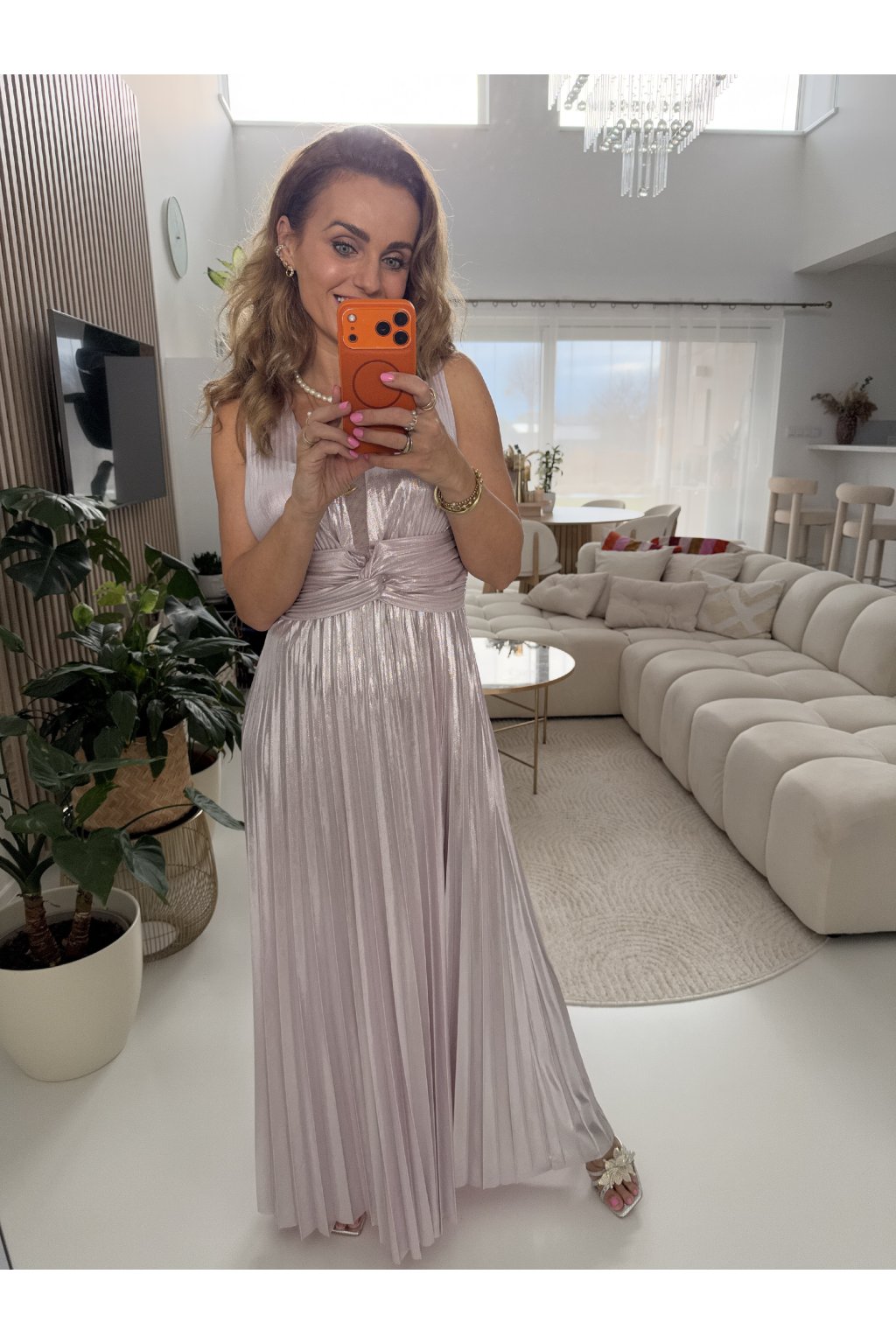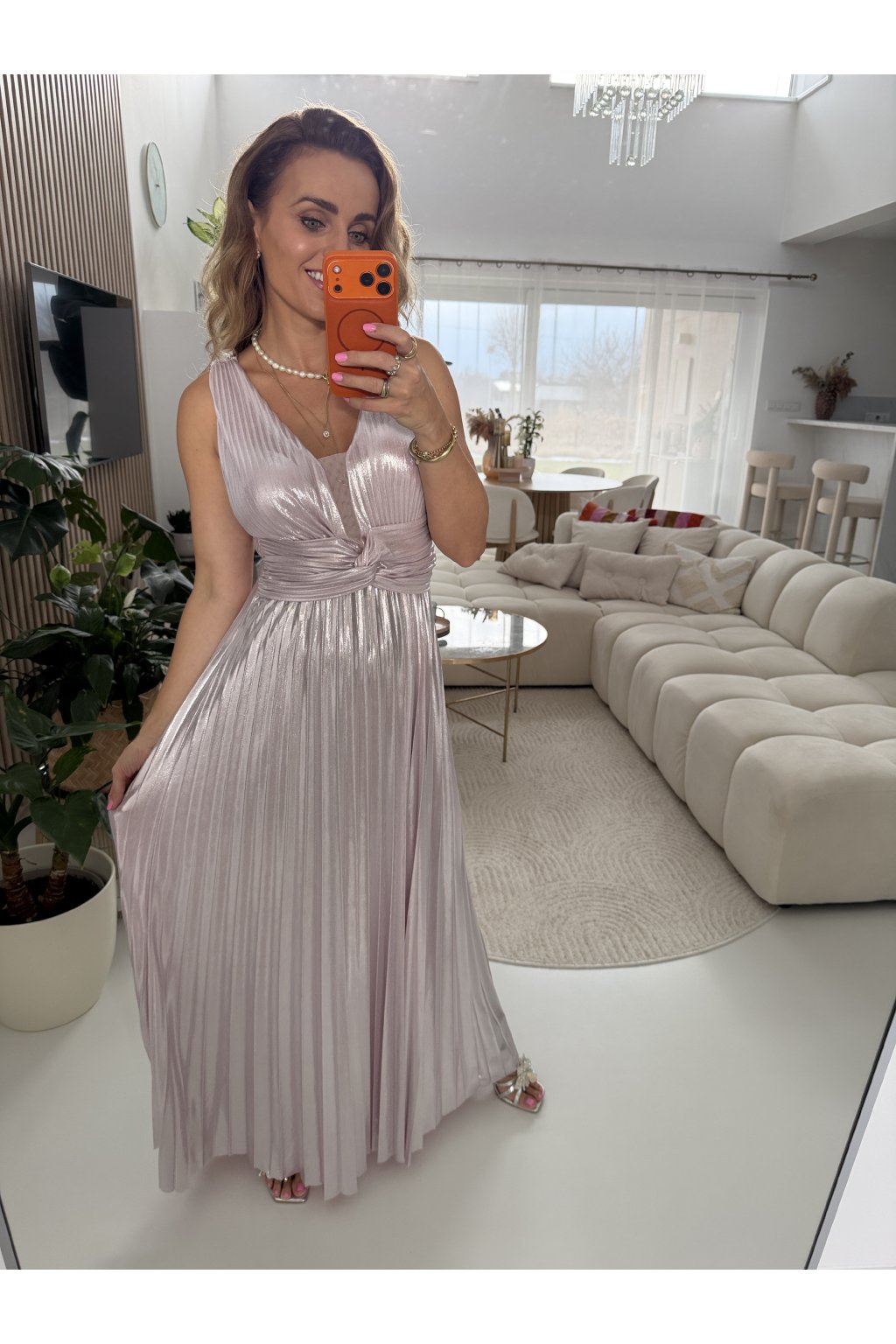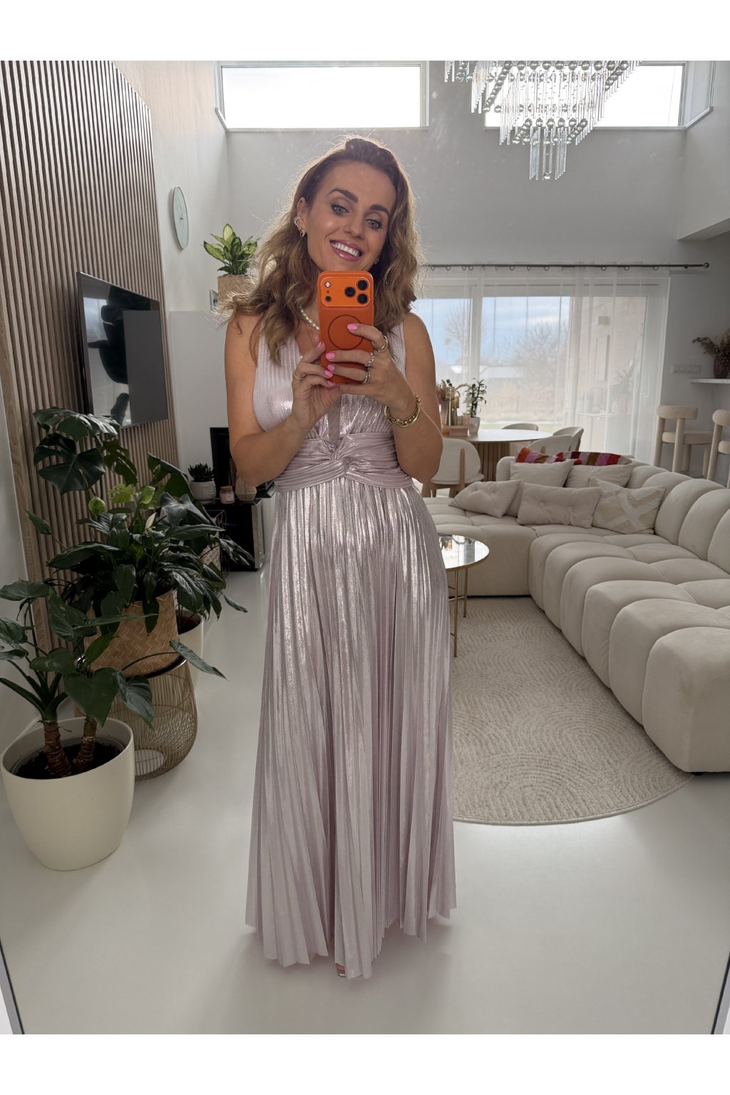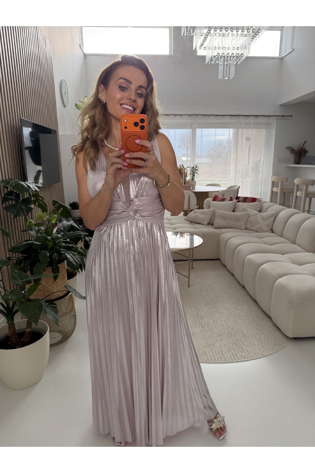STŘÍBRNO RŮŽOVÉ PLISOVANÉ ŠATY ATHÉNA