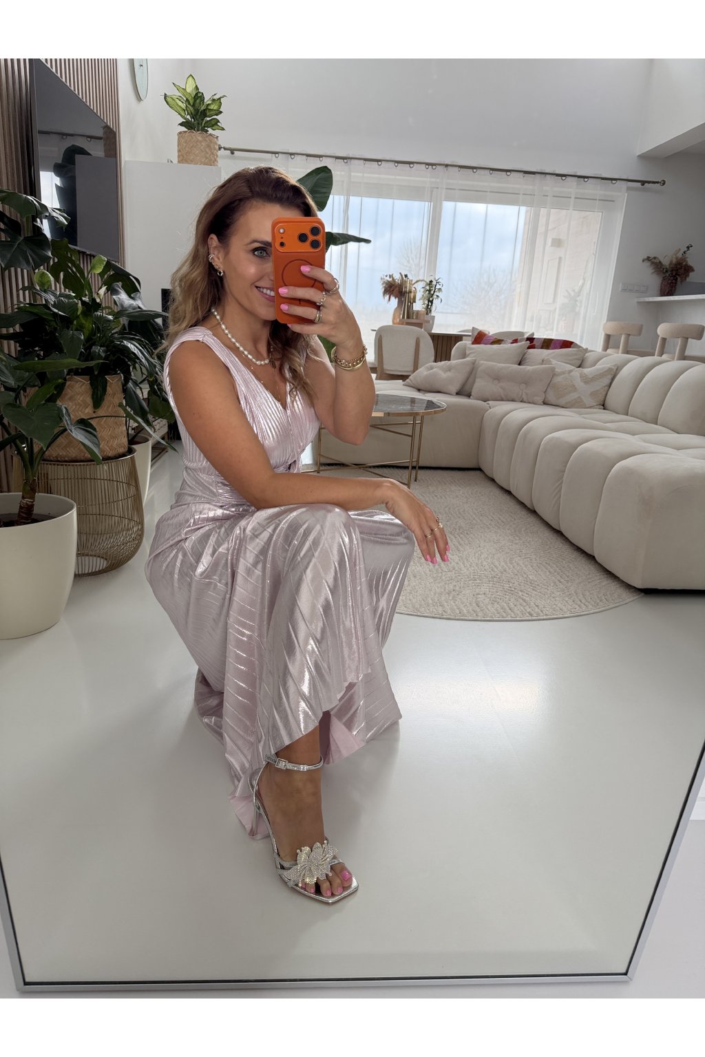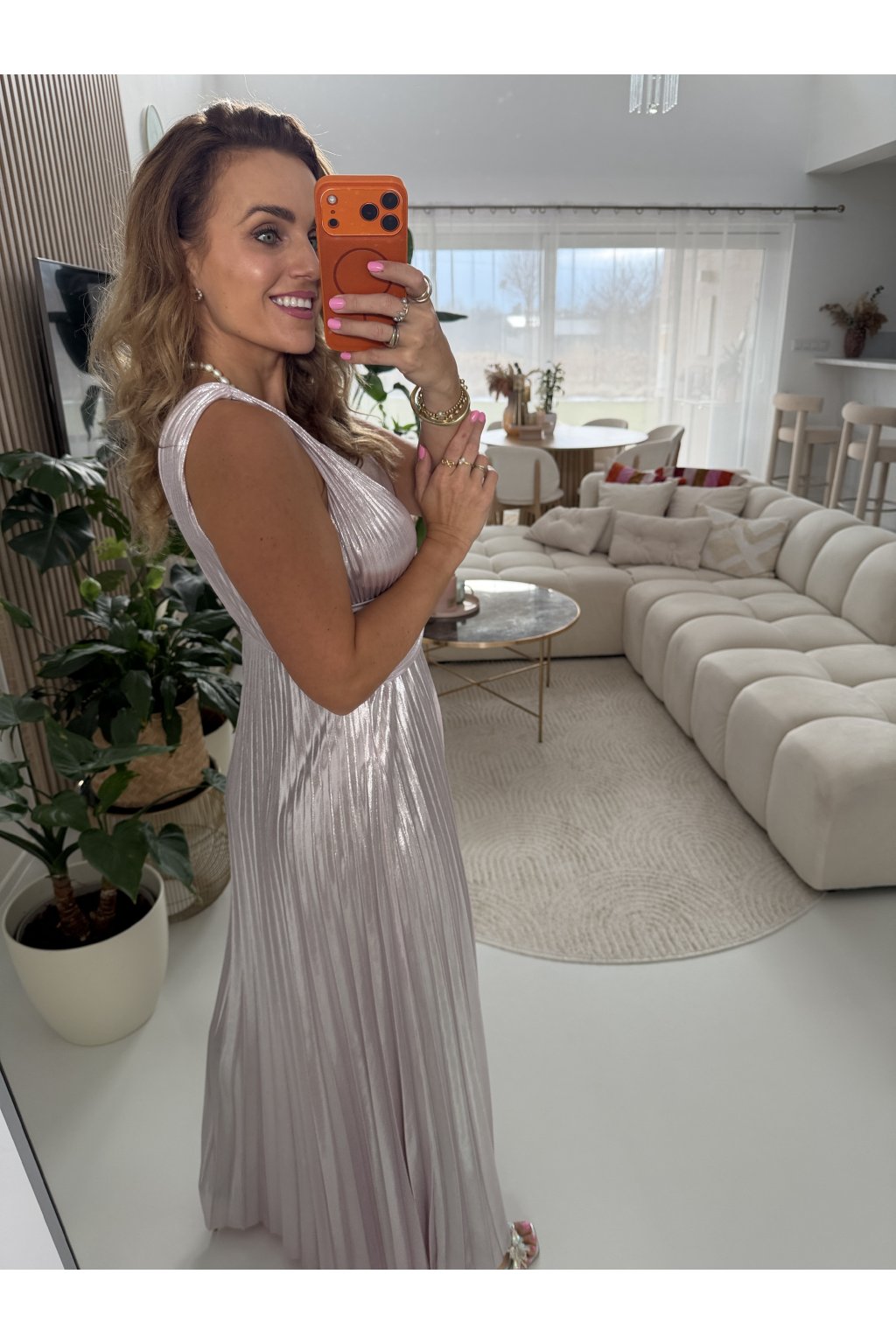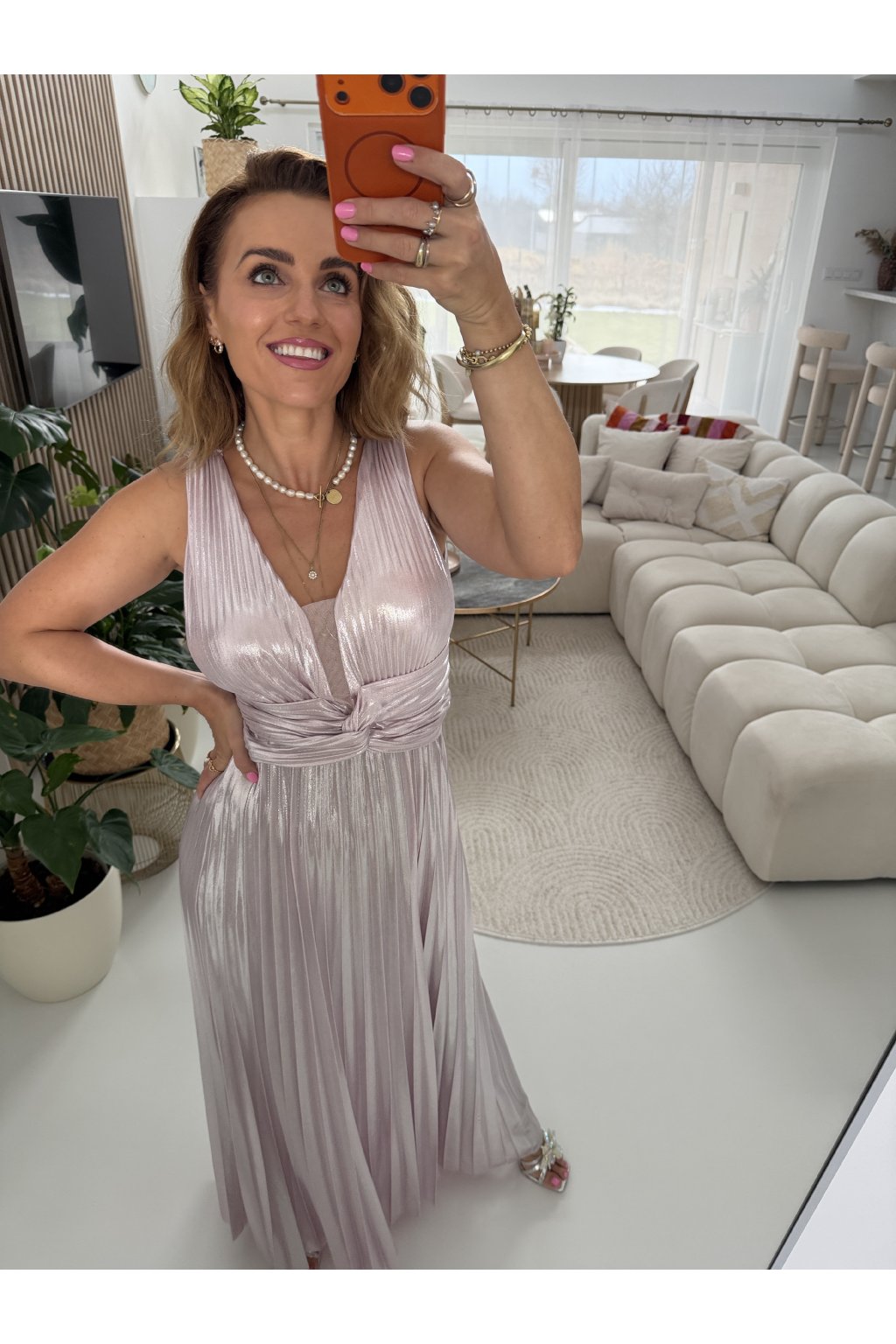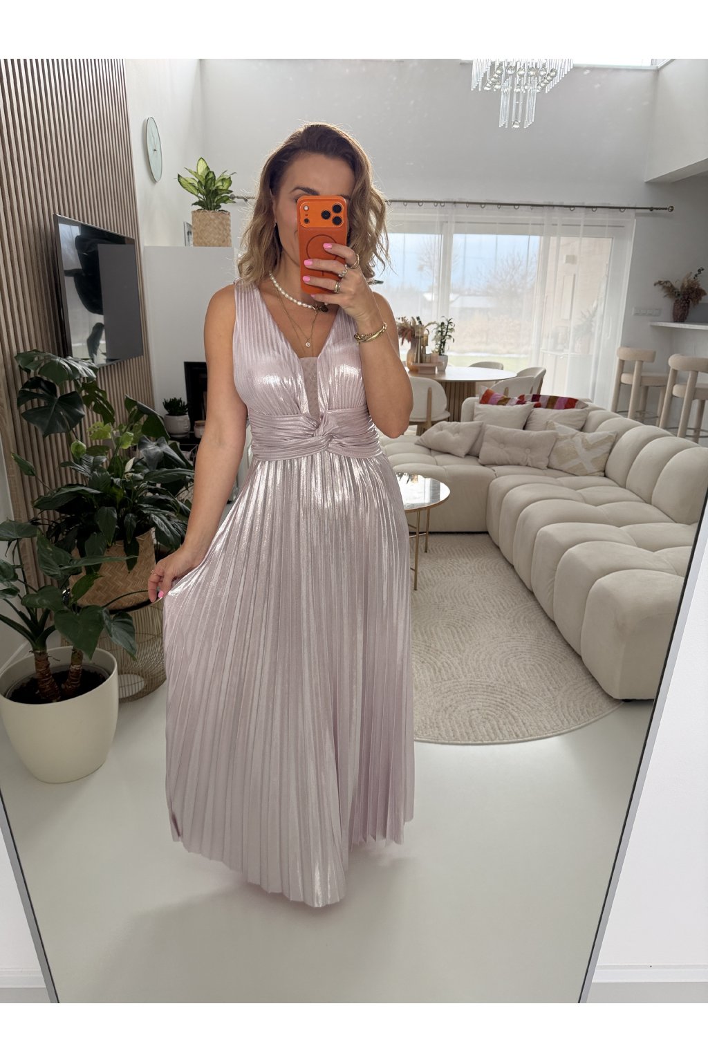 STŘÍBRNO RŮŽOVÉ PLISOVANÉ ŠATY ATHÉNA