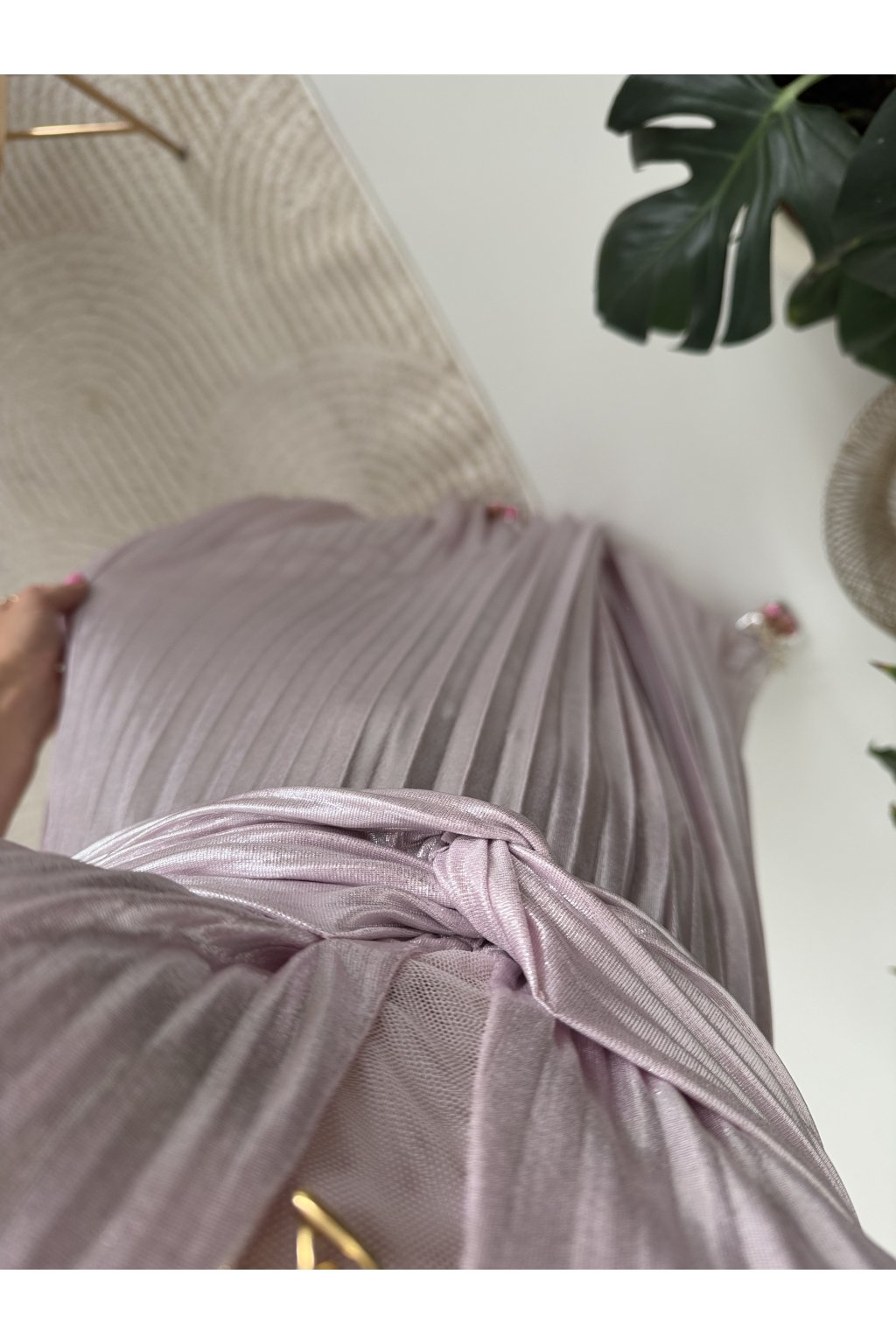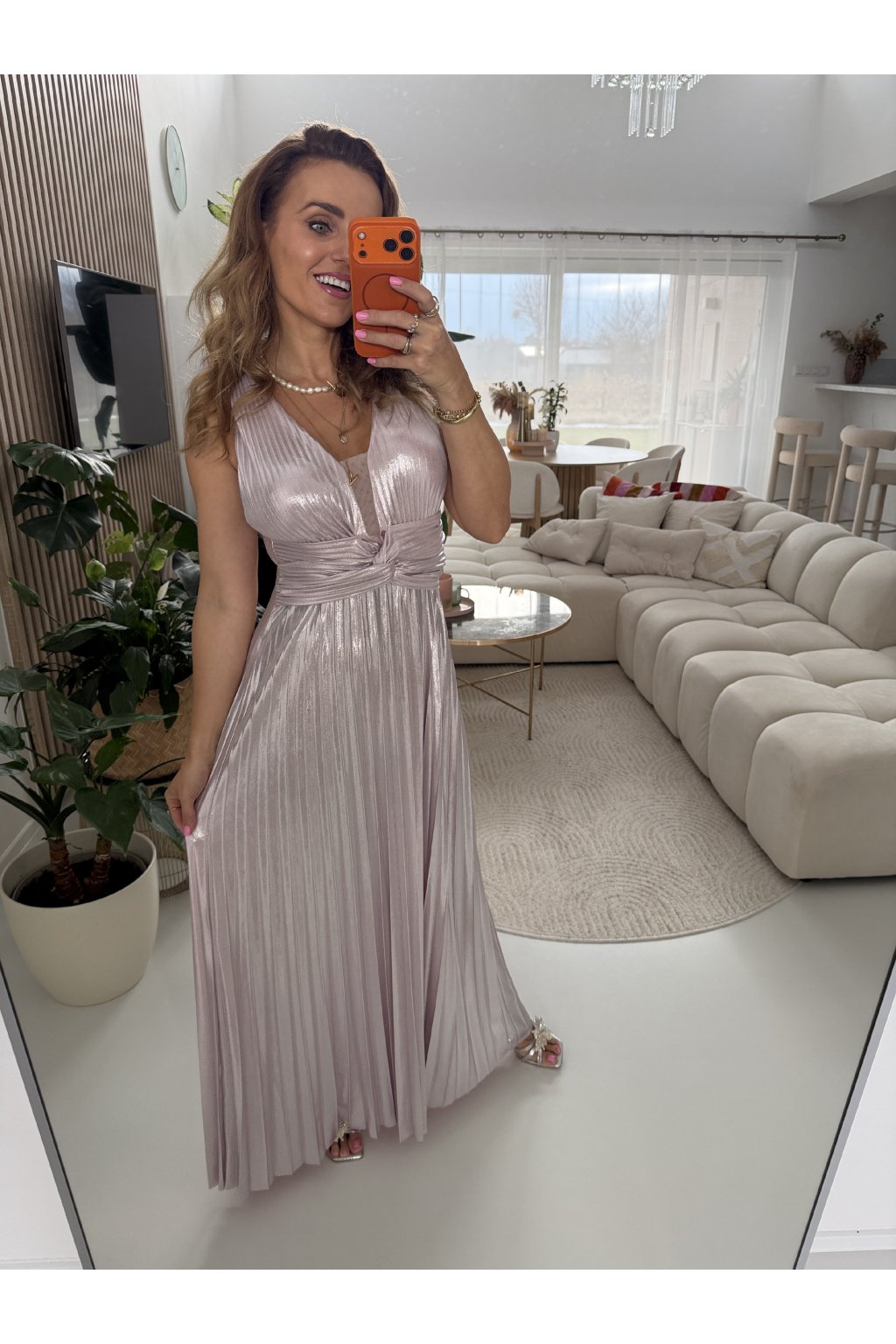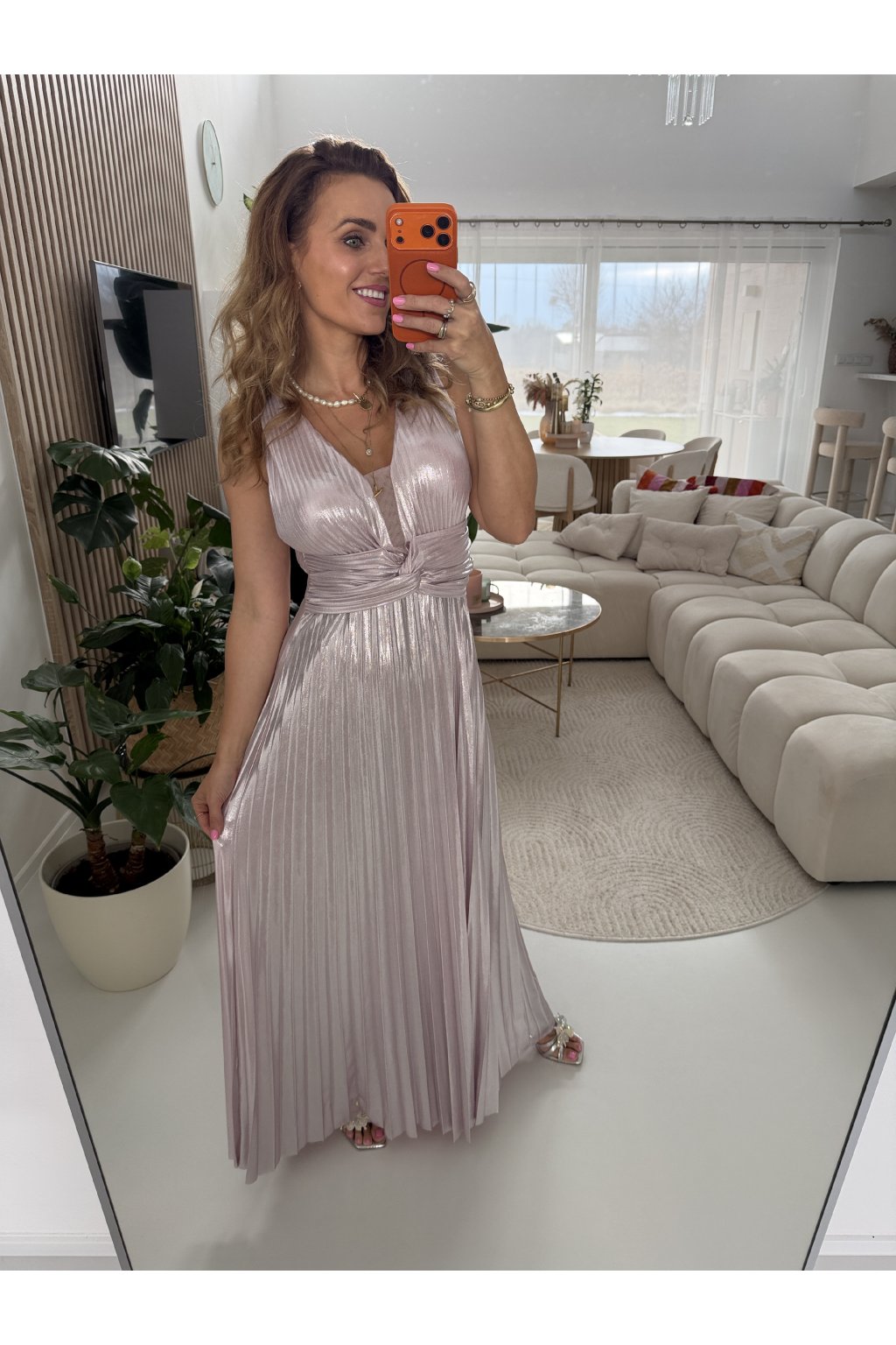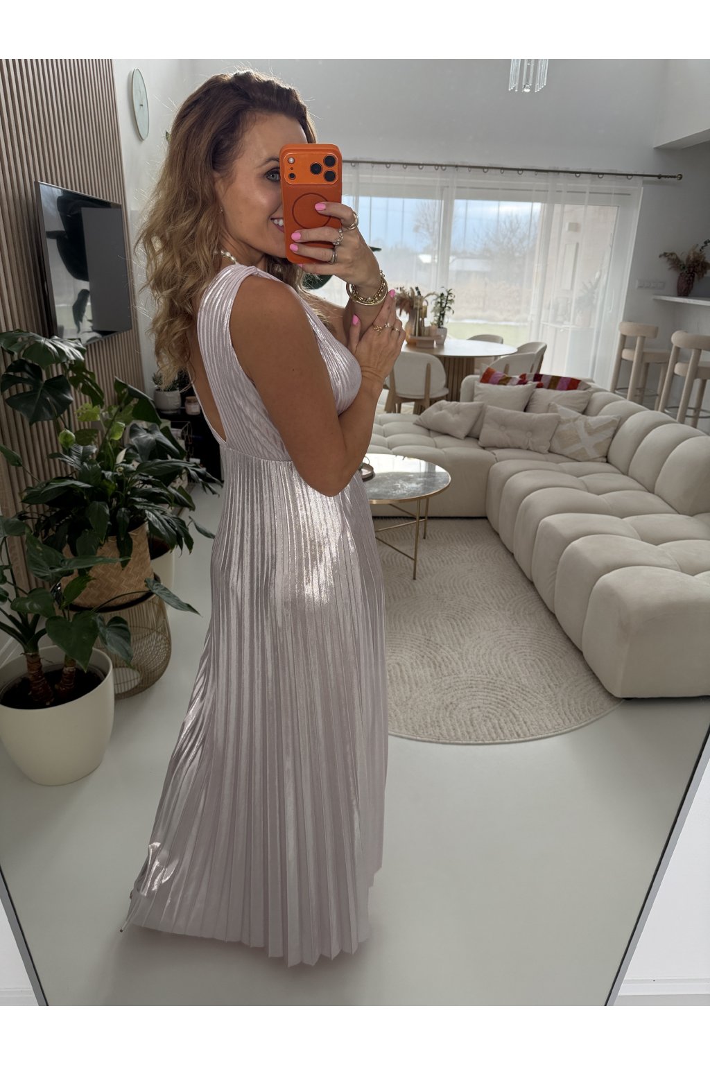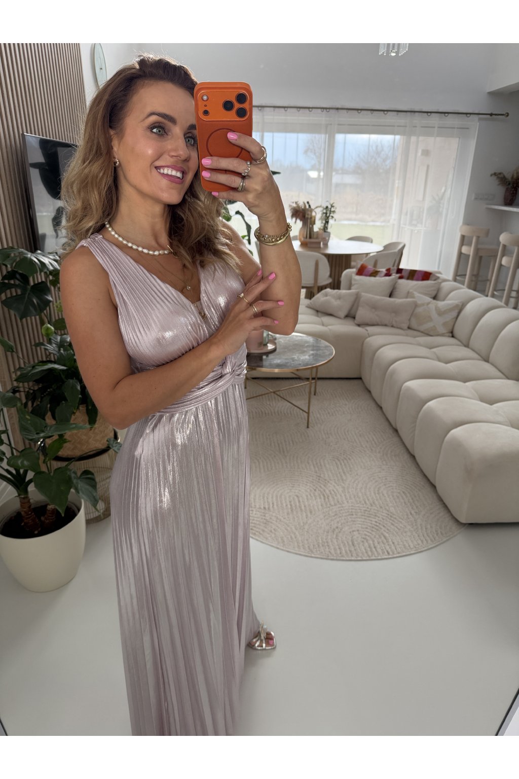 STŘÍBRNO RŮŽOVÉ PLISOVANÉ ŠATY ATHÉNA