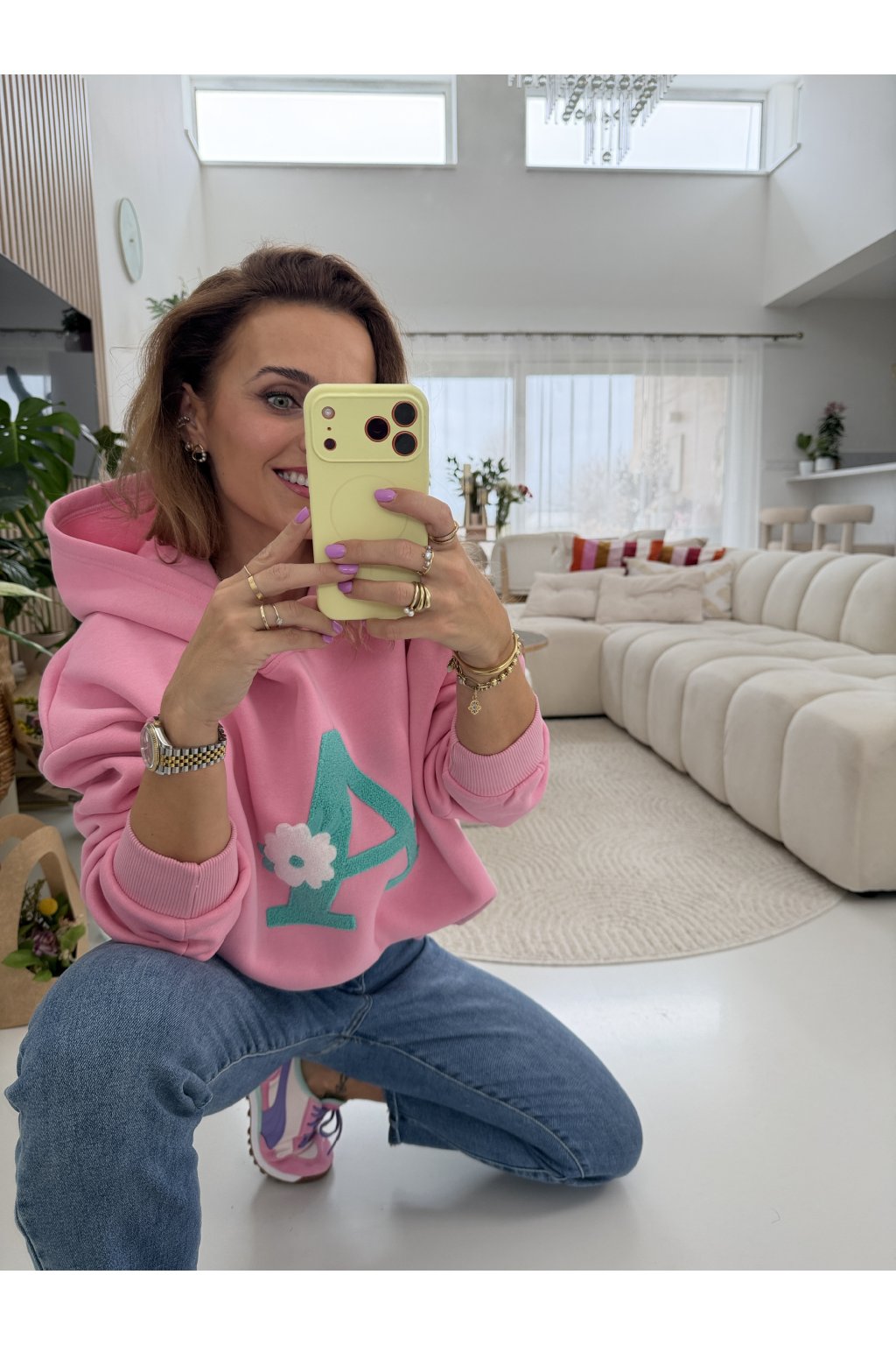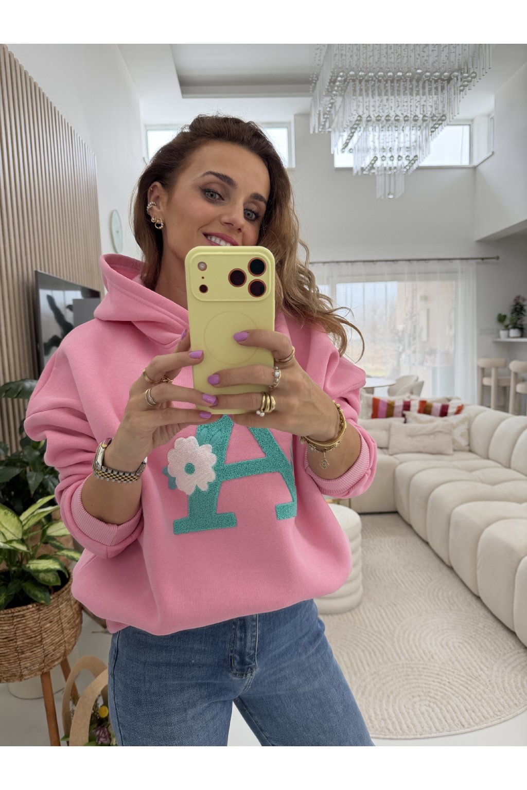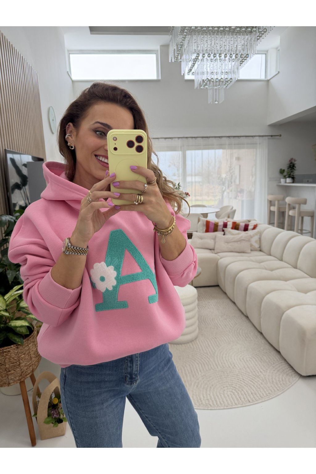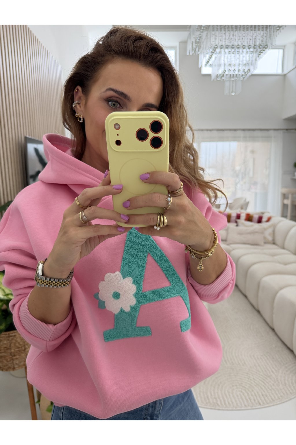 Stylová oversize mikina "A" z vysokogramážní bavlny, která krásně drží tvar a nepůsobí „vytahaně“ ani po častém nošení. Vnitřní zateplení z jemného mikroplyše zajišťuje maximální pohodlí a hřejivý pocit. Dominantní písmeno „A“ je aktuální módní trend , minimalistický, ale výrazný detail inspirovaný preppy stylem a personalizovanou módou, která dodá outfitu šmrnc i jedinečnost. Velikost sedne nejlépe na S a M, vleze se i menší velikost L. Pro představu měřím 163cm a vážím 59kg.